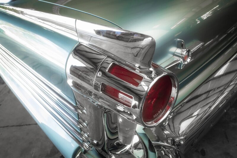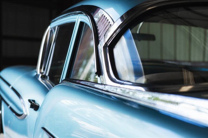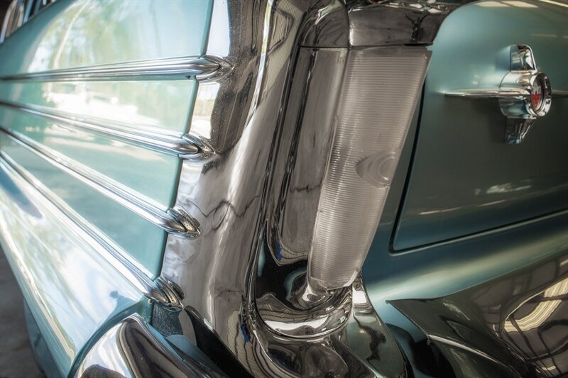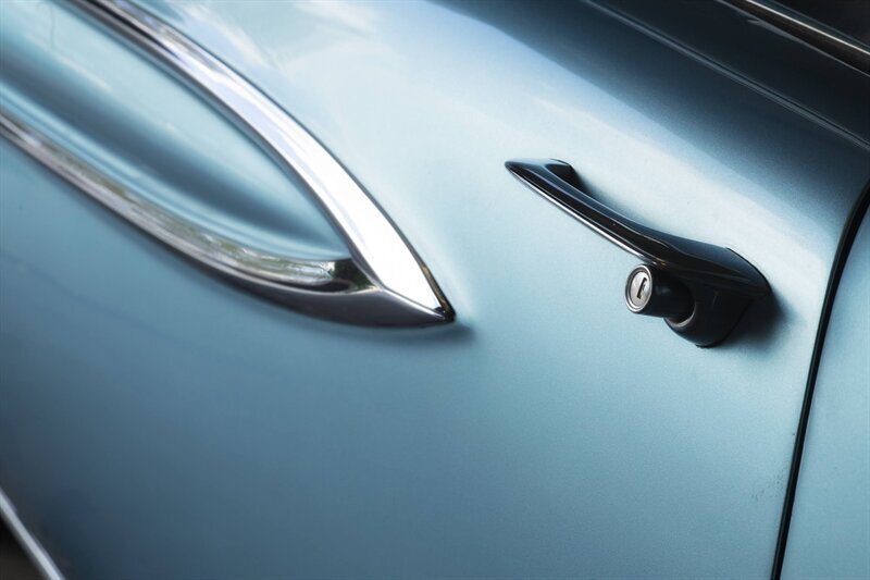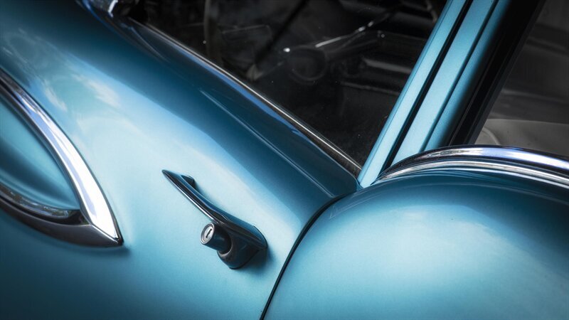 Finished in correct Tropical Mist Metallic (code 95) exterior with one repaint, the car’s paint and trim are in overall very good shape, with little pitting or marring evident. The engine bay is in very good condition, the trunk is in satisfactory shape and comes with a full-sized spare tire and wheel. Its big chrome bumpers fit tightly to the body.