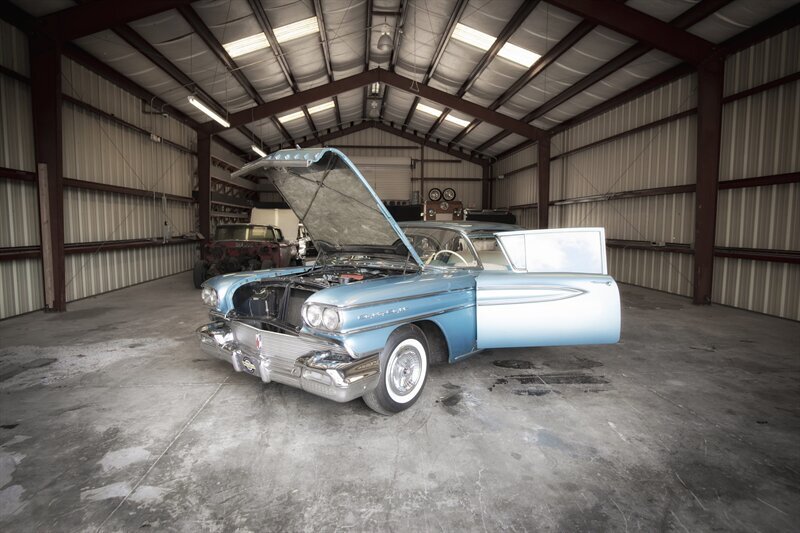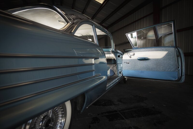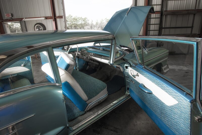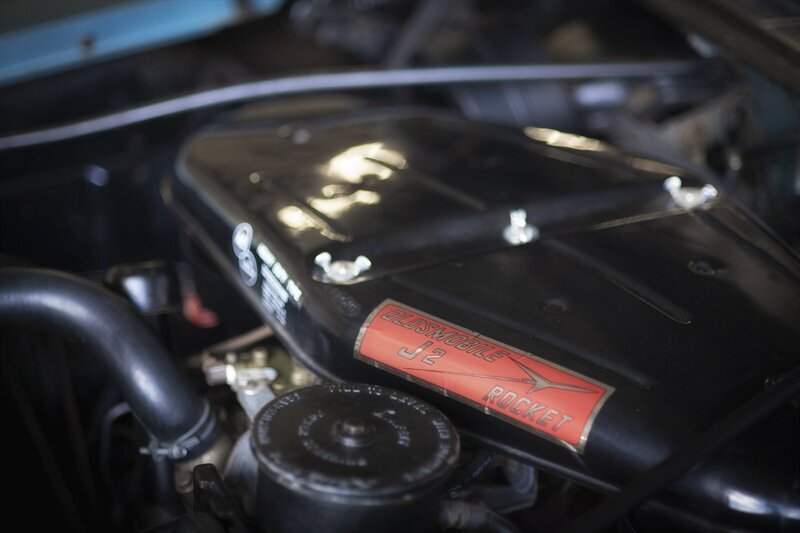 Just in time for GM’s 50th year of production, the 1958 B-bodies seemingly grew overnight compared to the ’55-’57 models and Oldsmobile was no exception. This original example was built in Oldsmobile’s Lansing, Michigan factory (VIN code M). It was ordered as close to a factory race car as you could legally buy from an Olds dealer that year. Oldsmobile’s J-2 racing program came to a premature end when NASCAR, in one of the abrupt rules changes that still occur today, banned multiple carburetion partway through the 1957 season.