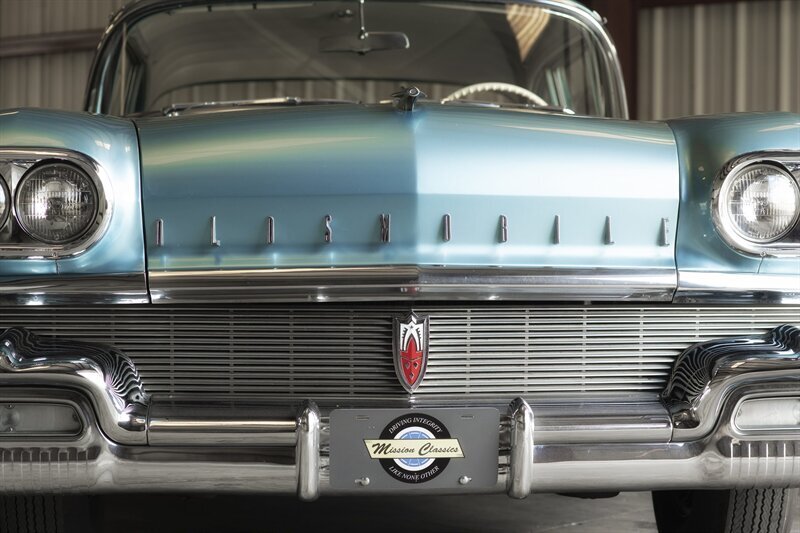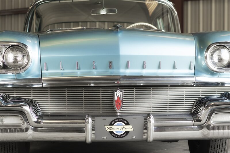Nineteen fifty-eight is best known in Oldsmobile lore as the year of the “Chrome Mobile” thanks to tremendous splattering of chrome trim on the body, particularly on the higher-priced Super 88 and Ninety-Eight models. The styling was advertised by Olds as the “Mobile Look.” The Dynamic 88 d