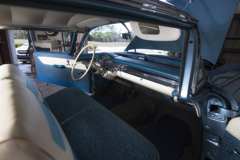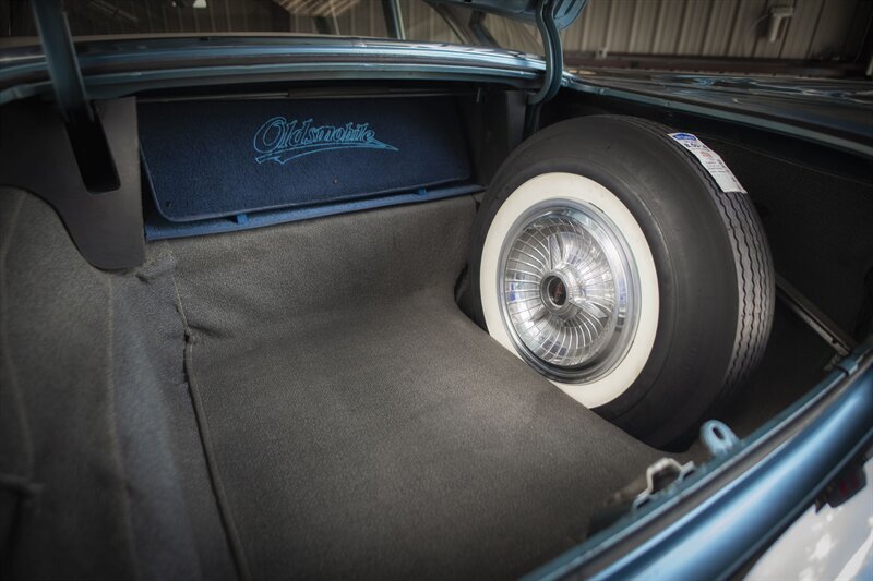 •Original Ivory/Blue cloth interior including original Olds vanity mirror (code 363)