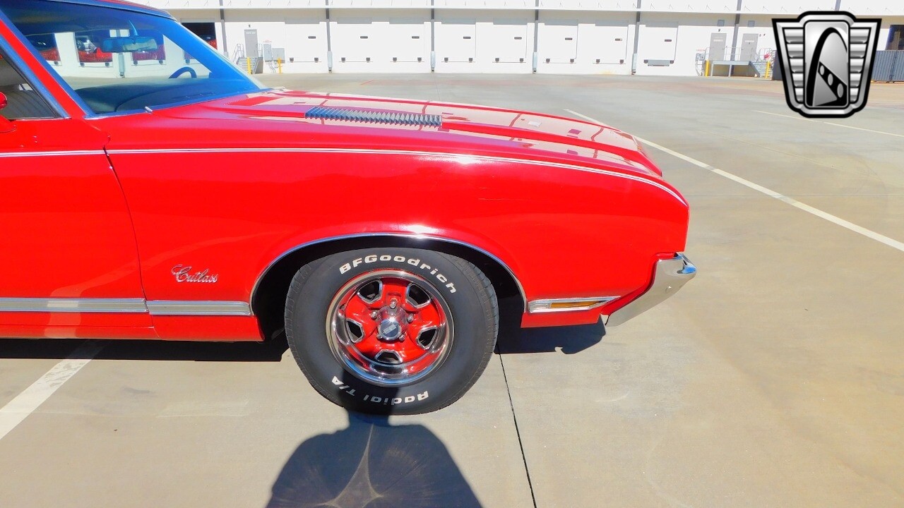 Gateway Classic Cars presents this 1971 Oldsmobile Cutlass. This iconic 2-door hardtop is offered in a striking Red exterior with White vinyl top complementing the vibrant white vinyl interior, offering an inviting cabin for both driver and passengers.