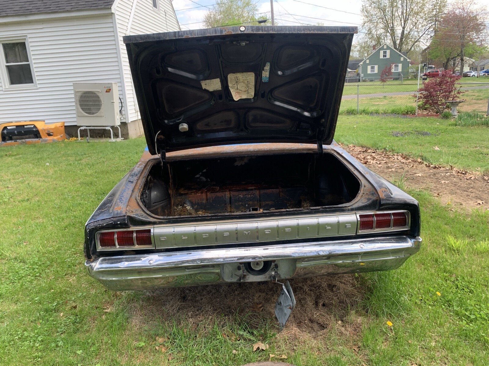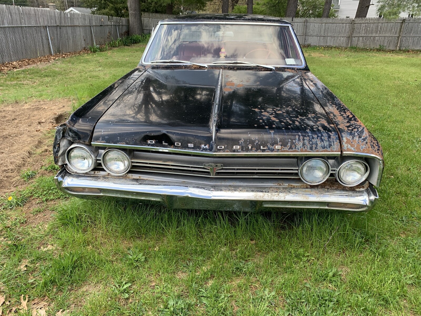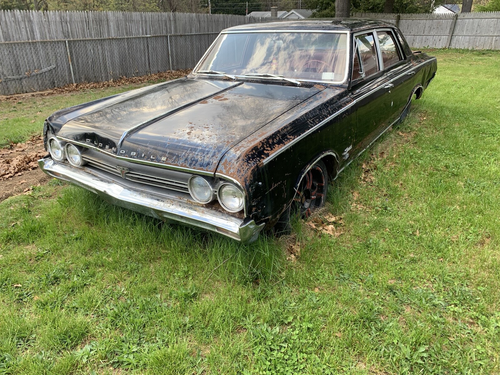 Preowned 1964 Oldsmobile F85 Deluxe 4 door sedan, automatic transmission, 8 cylinder engine, 127,829 miles, not running but does free roll. There is no title or previous registration but it does come with the registration sticker on the windshield and license plate from its last registration in New York. The interior is in pretty good condition with some wear and fading from time, seats has light tears in some places. The dashboard, gauges and steering wheel are in good condition. The roof liner is good condition as well as the frame rails and floors but everything has some wear from use and time. The rear windshield has rust around it and water got in prior to it being covered with tape. For now, it’s covered to stop anymore getting in but will need metal repair in that area. The trunk is now dried out and still solid, it hust has surface rust. This is sold as is with a bill of sale from me and no previous full registration. I don’t know who owned this before me, I bought this during the pandemic and I have too many projects. I would like it to go to someone that wants to finish it and put it in the road. It doesn’t start but cranks and almost started when we worked on it some. It seems like it might need some distributor work or adjustment, I’m not sure. I’ve replaced the battery terminals/cables, voltage regulator, spark plugs, ignition wires, ignition coil, cap and rotor, breather filter and transmission cooler hose. There is no battery and it needs bodywork, dash lights work, no ignition cylinder because I hollowed it out to try to start it. I do have keys for the trunk and I have some other new lock cylinders with keys that I bought for the car. You will need to tow it. Cash payment accepted at pick up, no checks and $200 deposit through PayPal within 24 hours after you hit buy it now to show that you’re serious about buying it.