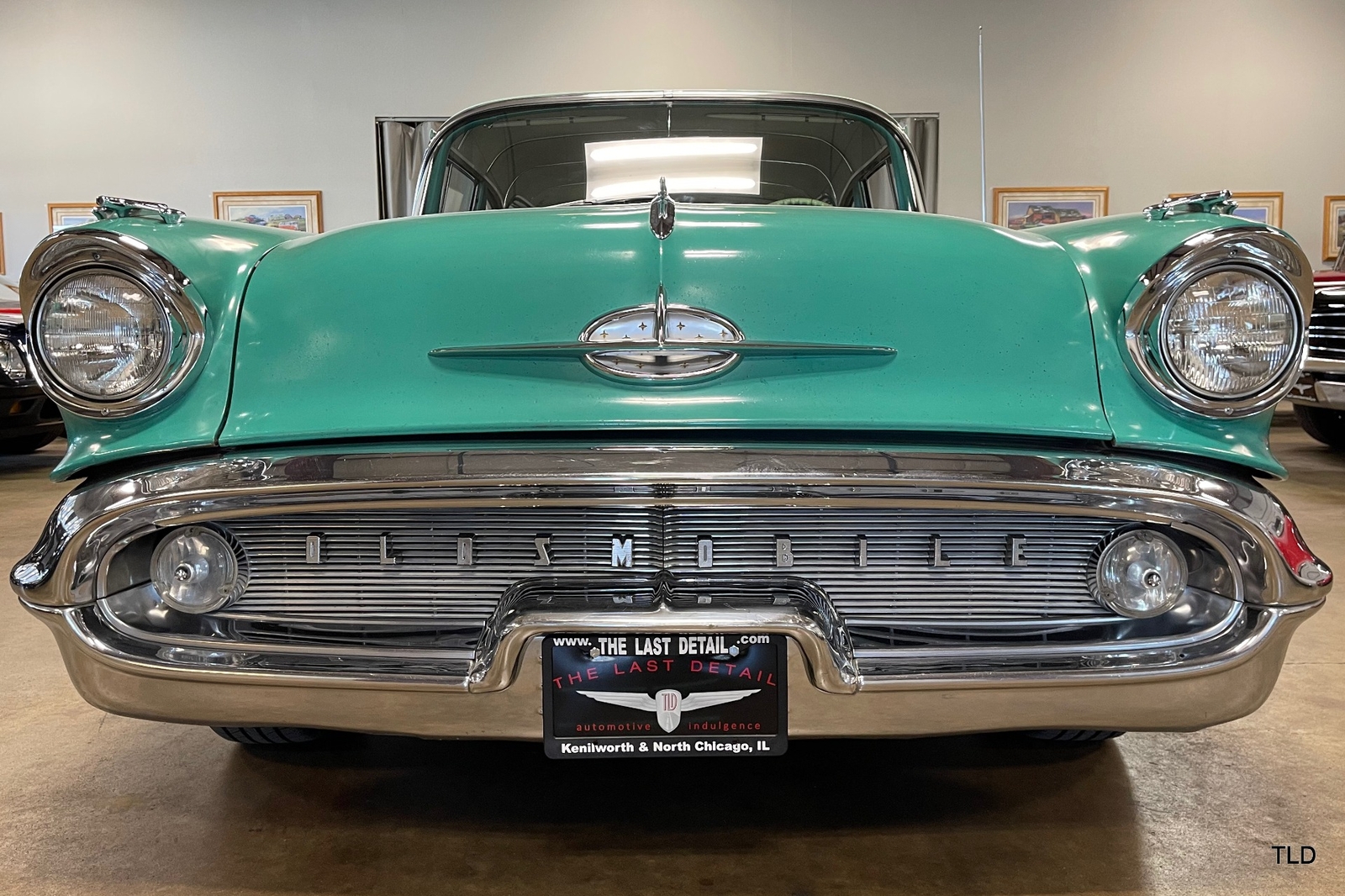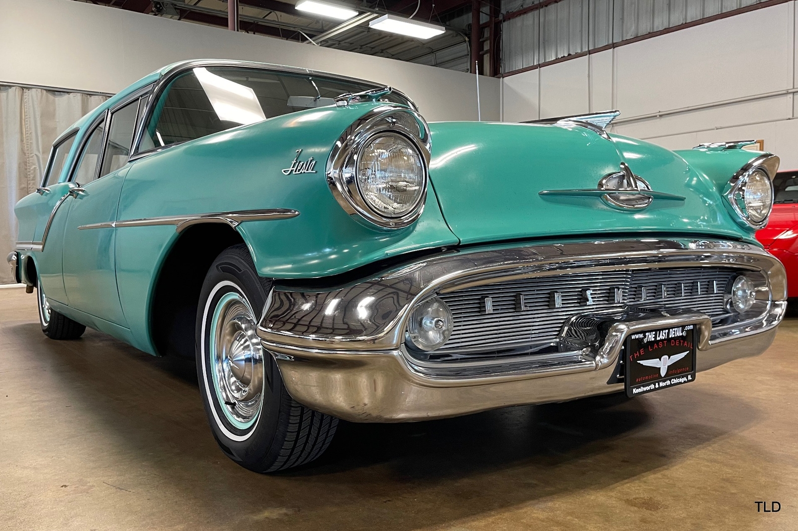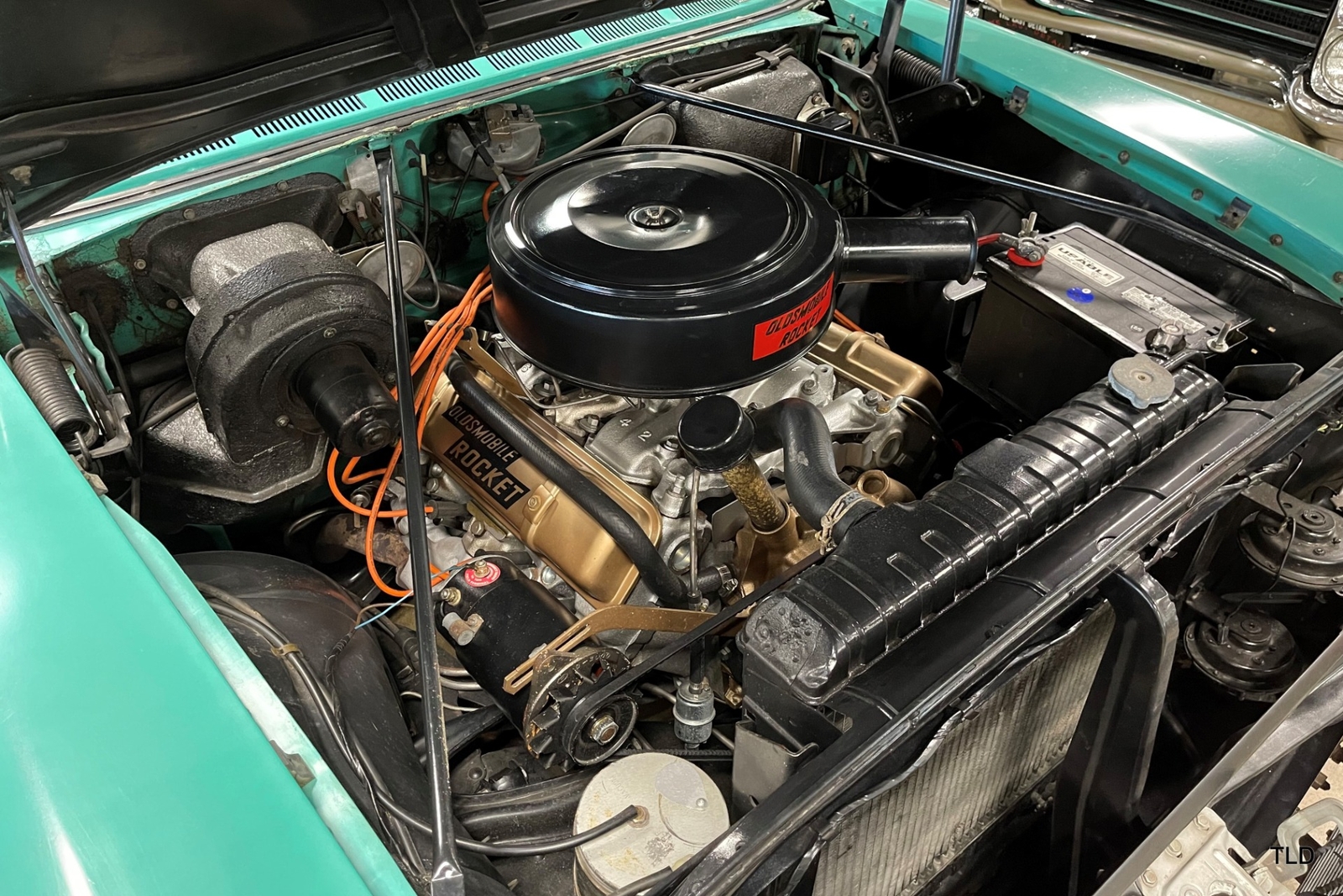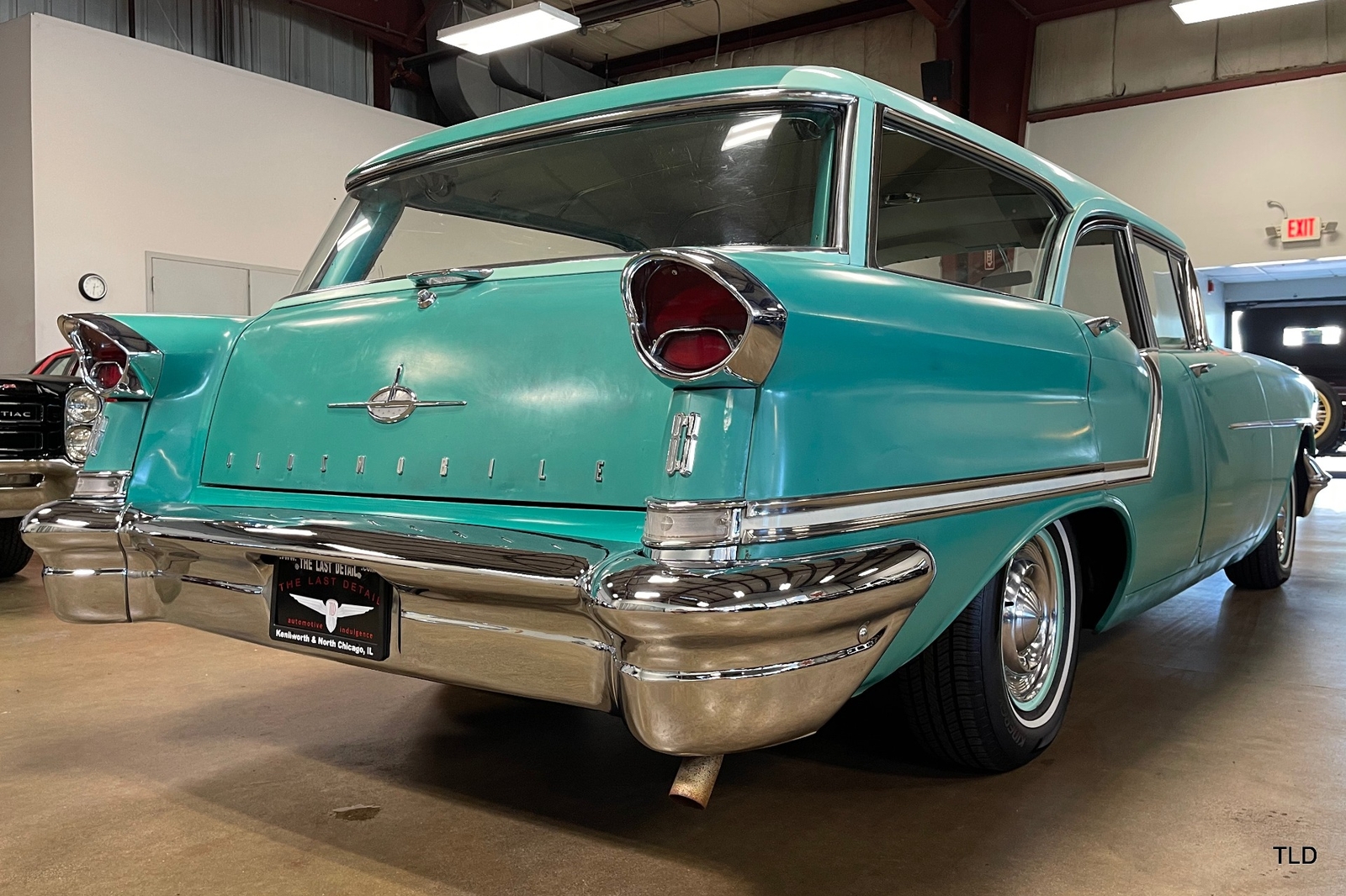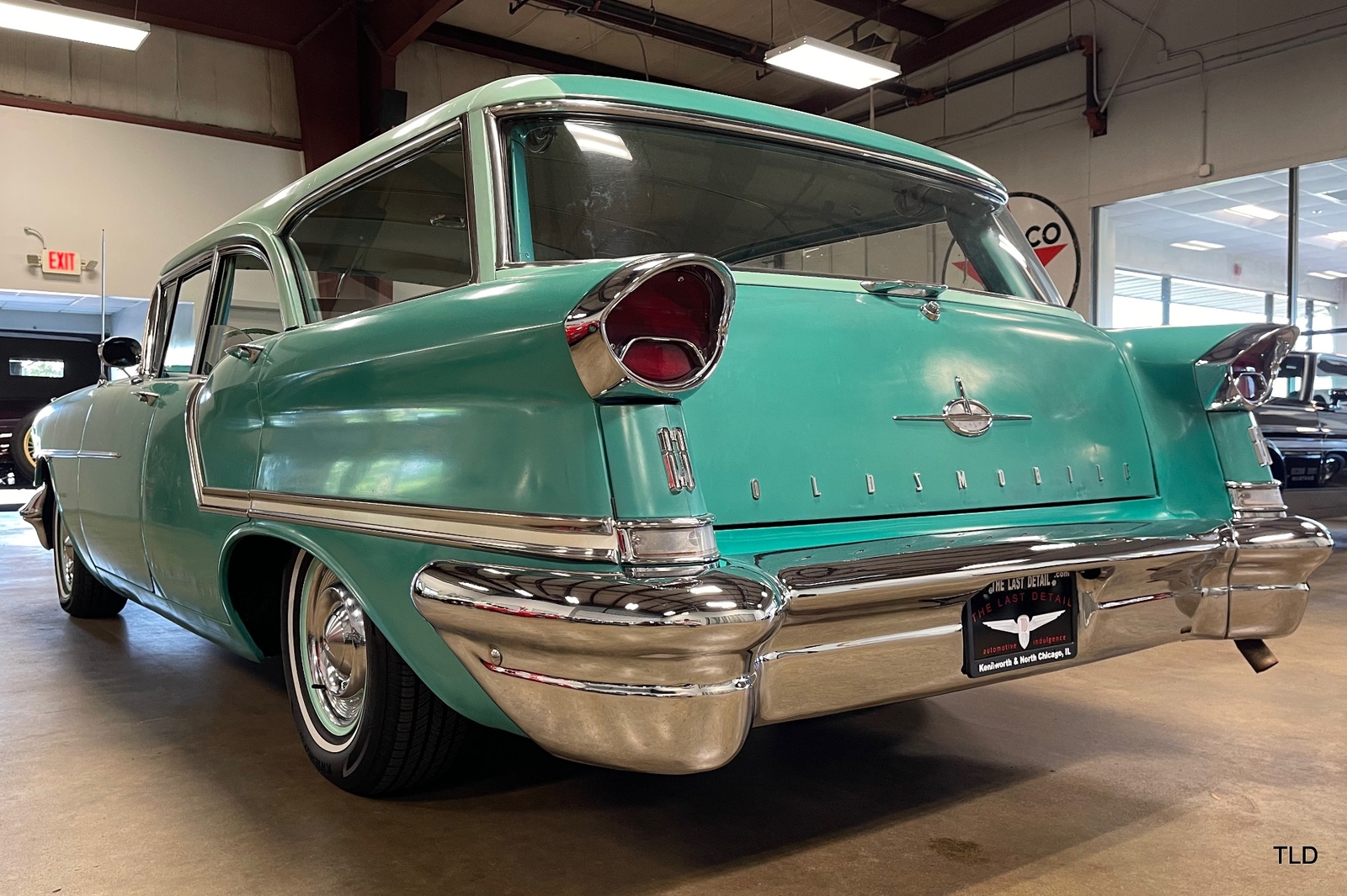Formerly under long-term ownership and storage in Colorado, this Oldsmobile 88 Fiesta station wagon is an excellent survivor of 5,052 pillared-roof Golden Anniversary 88 models produced for 1957. Over the past three years, the Fiesta has received major service work including an engine overhaul with a 0.030 overbore, re-sealing of the gas tank, a transmission-fluid flush, new brakes and shock absorbers, and a carburetor rebuild. Desirable upgrades include installation of an electric fuel pump and Pertronix electronic ignition system. The Ice Green and Allegheny Green two-tone paint finish remains exceptionally original, as does the two-tone green vinyl and cloth upholstery. Factory features and options include the automatic transmission, AM radio, and heater. Original rubber floor mats remain in place. Additional items include a lubrication receipt and door-jamb sticker from 1958 and a paint-code breakdown, plus a spare wheel/tire, roadside jack and lug wrench. Very nicely preserved and remaining mostly in OEM condition, this 1957 Oldsmobile Golden Rocket 88 Fiesta Station Wagon is a wonderful find, sure to please anyone who appreciates the irreplaceable look and feel of a highly original and never fully-restored automobile. Contact us for complete details and make it yours in time for summer drives and shows!