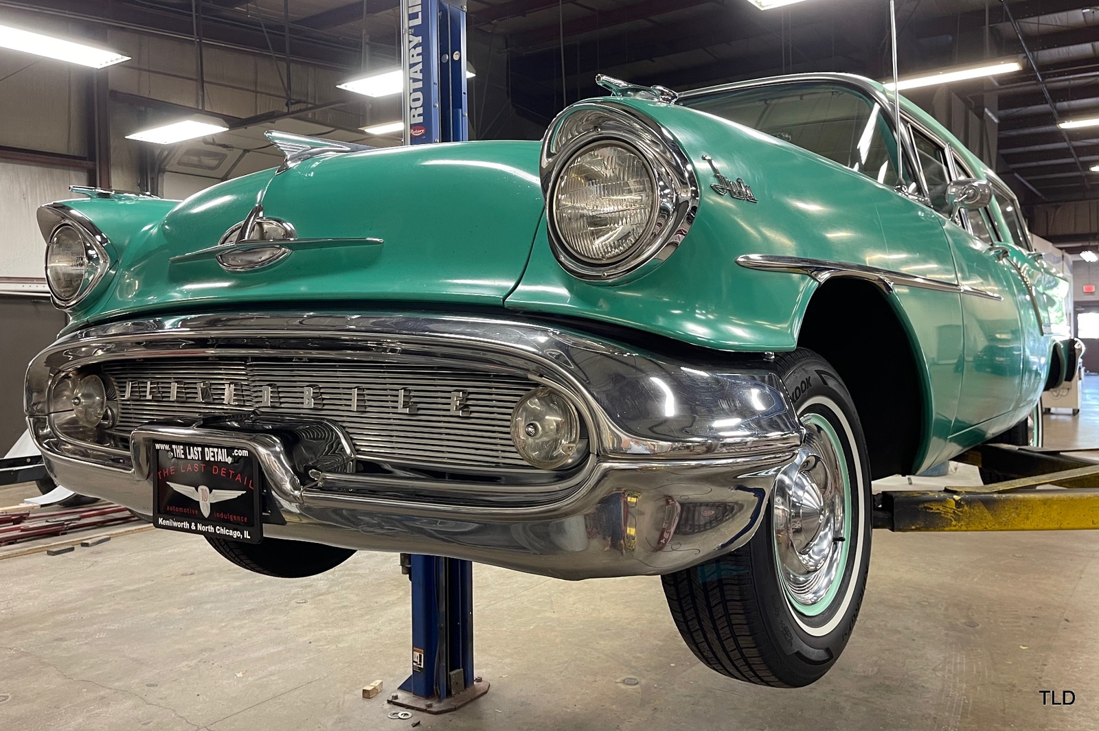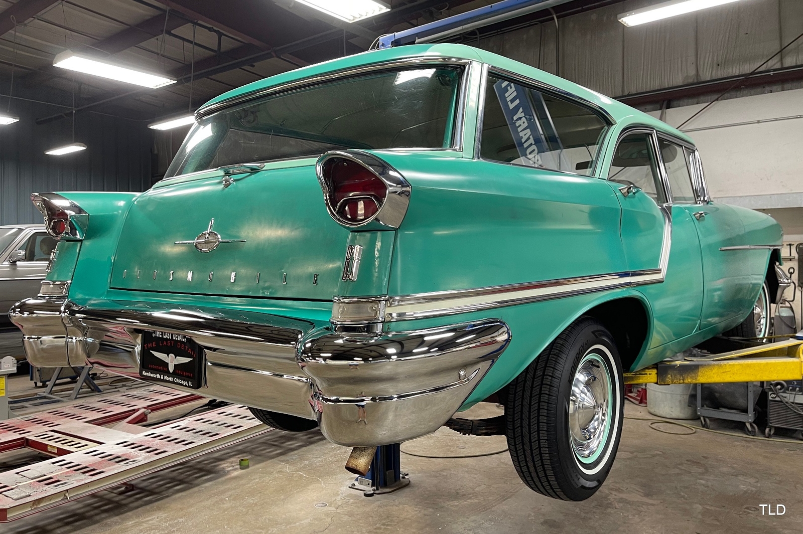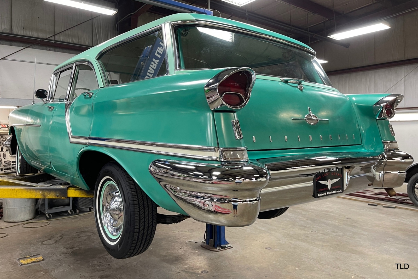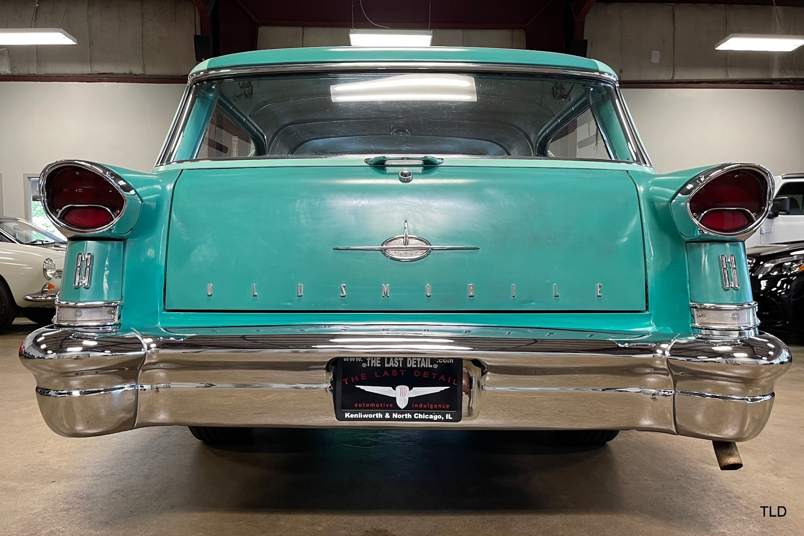 Formerly under long-term ownership and storage in Colorado, this Oldsmobile 88 Fiesta station wagon is an excellent survivor of 5,052 pillared-roof Golden Anniversary 88 models produced for 1957. Over the past three years, the Fiesta has received major service work including an engine overhaul with a 0.030 overbore, re-sealing of the gas tank, a transmission-fluid flush, new brakes and shock absorbers, and a carburetor rebuild. Desirable upgrades include installation of an electric fuel pump and Pertronix electronic ignition system. The Ice Green and Allegheny Green two-tone paint finish remains exceptionally original, as does the two-tone green vinyl and cloth upholstery. Factory features and options include the automatic transmission, AM radio, and heater. Original rubber floor mats remain in place. Additional items include a lubrication receipt and door-jamb sticker from 1958 and a paint-code breakdown, plus a spare wheel/tire, roadside jack and lug wrench. Very nicely preserved and remaining mostly in OEM condition, this 1957 Oldsmobile Golden Rocket 88 Fiesta Station Wagon is a wonderful find, sure to please anyone who appreciates the irreplaceable look and feel of a highly original and never fully-restored automobile. Contact us for complete details and make it yours in time for summer drives and shows!