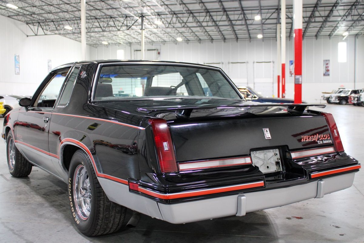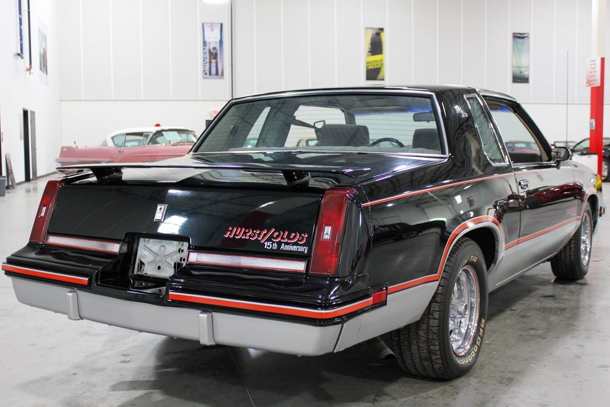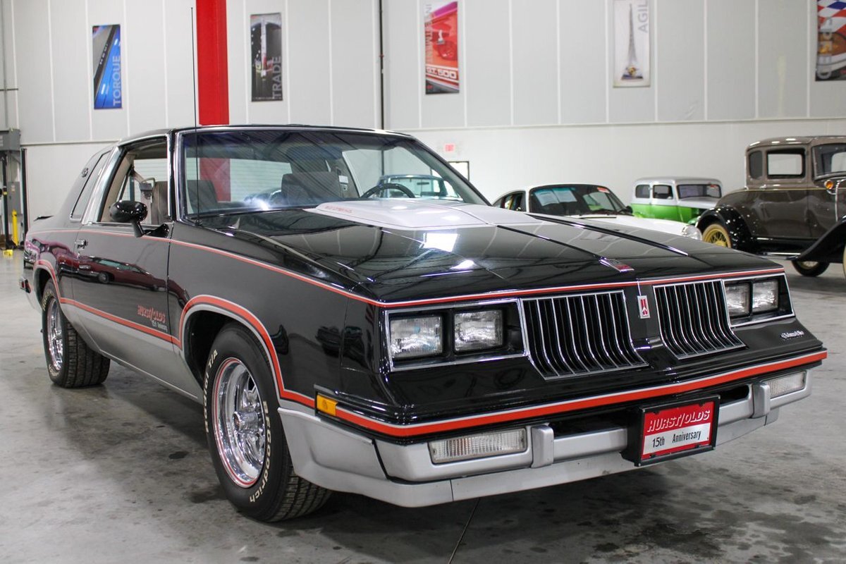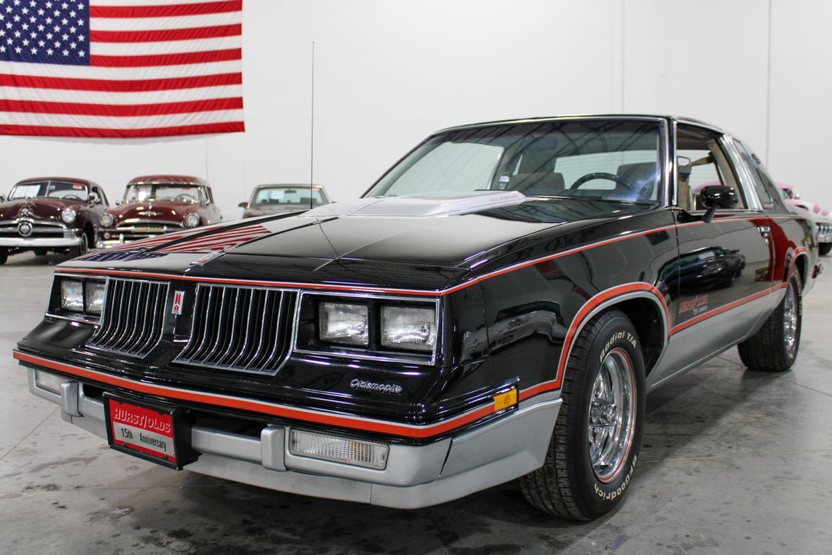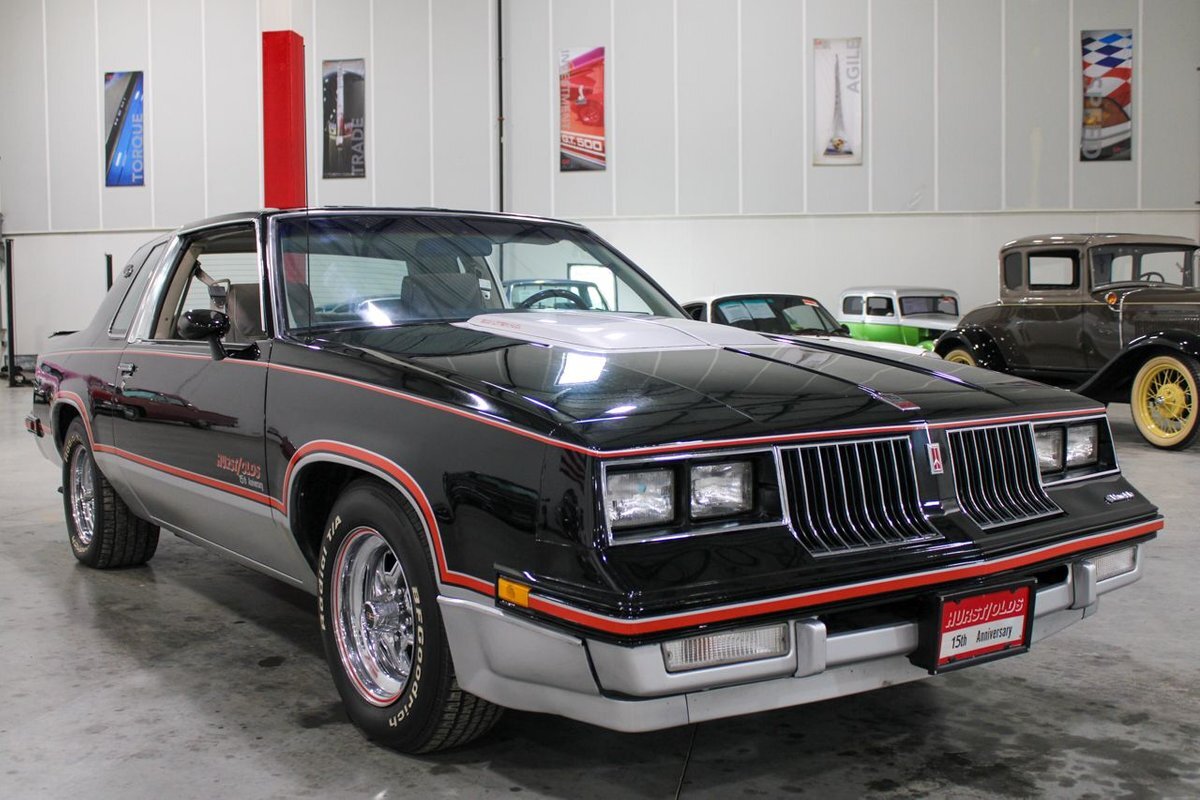 The mid-80s were strange times for performance car enthusiasts. The glory days of the muscle car era were now 15 years in the dust. Car manufacturers were promoting miles per gallon instead of horsepower. Front-wheel drive, fuel injection, strut suspensions, and electronic dashboards have now taken over the wonderful simplicity of power with rear-wheel application. To celebrate a fifteen-year alliance between performance icon Hurst and Oldsmobile, the W40 Hurst Oldsmobile 15th Anniversary edition was created with a back-to-basics approach: Body frame construction, control arm front suspension, and a powerful V8 driving a live rear axle. Production was limited to just 3001 examples, all were built in Lansing, MI, all were shipped to a secondary manufacturer, Cars and Concepts, for Hurst modifications, all were V8 powered and all were painted Black with Silver skirts separated with red striping. The 83 Hurst Olds captured the essence of an era when performance and style were king.