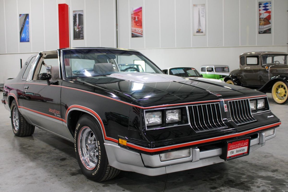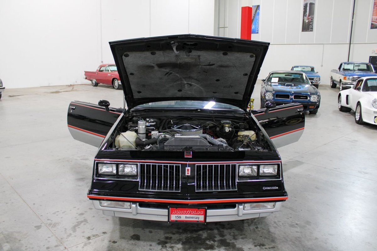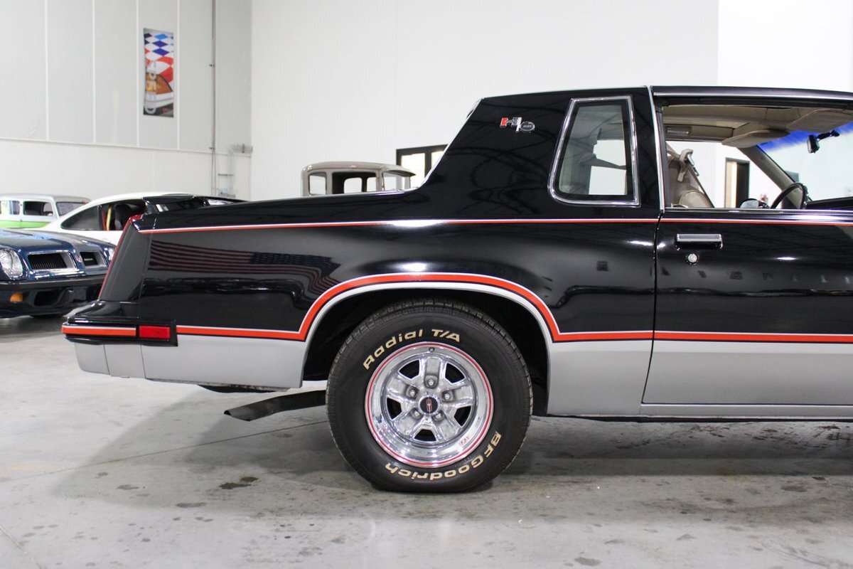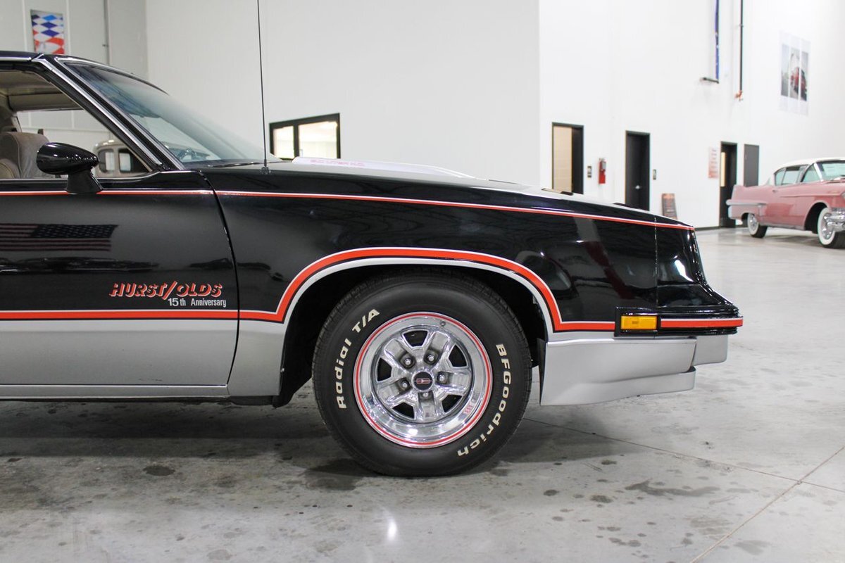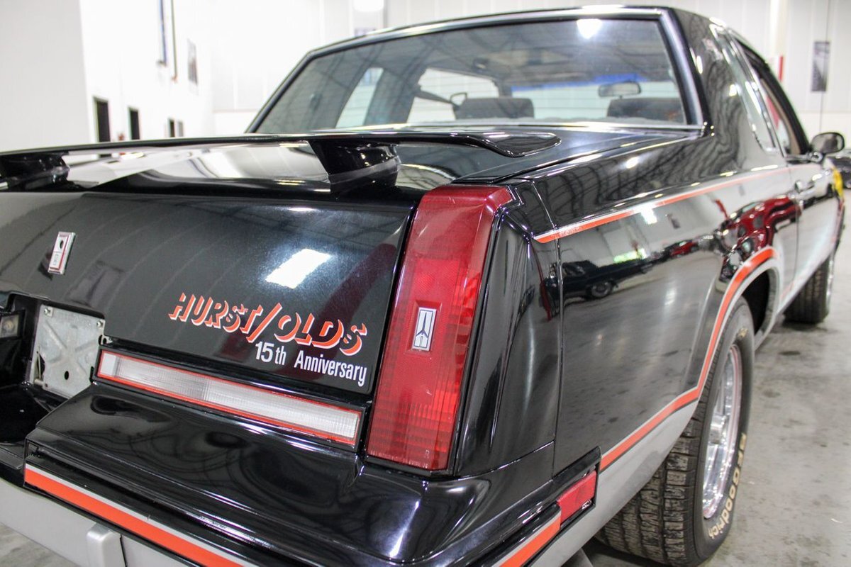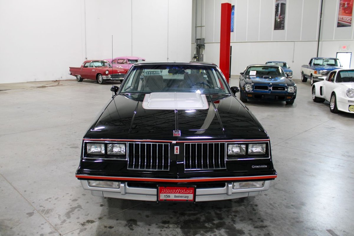 The mid-80s were strange times for performance car enthusiasts. The glory days of the muscle car era were now 15 years in the dust. Car manufacturers were promoting miles per gallon instead of horsepower. Front-wheel drive, fuel injection, strut suspensions, and electronic dashboards have now taken over the wonderful simplicity of power with rear-wheel application. To celebrate a fifteen-year alliance between performance icon Hurst and Oldsmobile, the W40 Hurst Oldsmobile 15th Anniversary edition was created with a back-to-basics approach: Body frame construction, control arm front suspension, and a powerful V8 driving a live rear axle. Production was limited to just 3001 examples, all were built in Lansing, MI, all were shipped to a secondary manufacturer, Cars and Concepts, for Hurst modifications, all were V8 powered and all were painted Black with Silver skirts separated with red striping. The 83 Hurst Olds captured the essence of an era when performance and style were king.