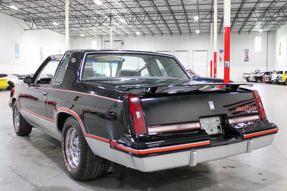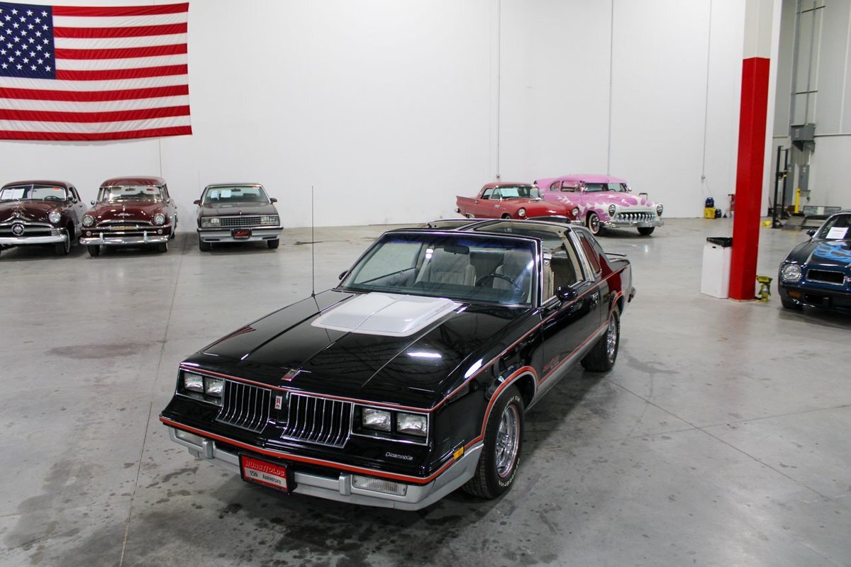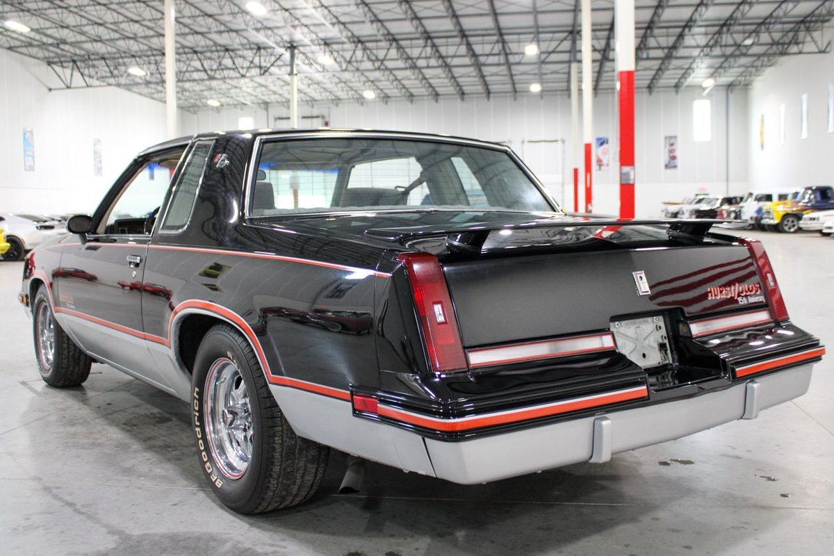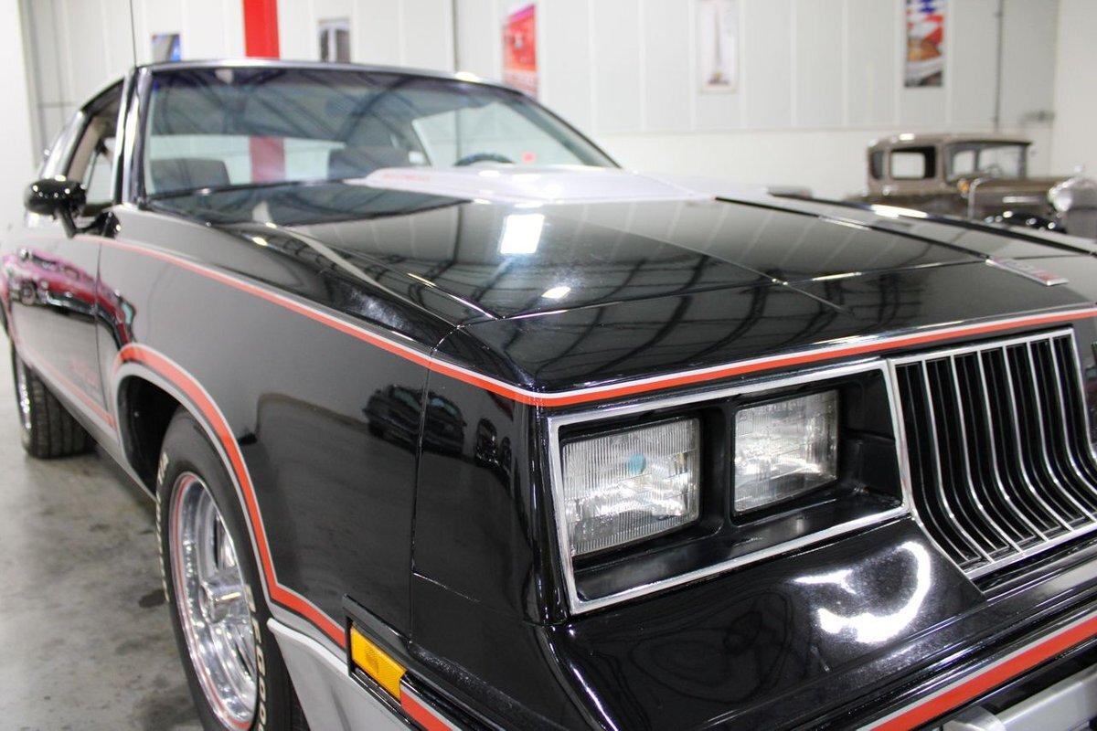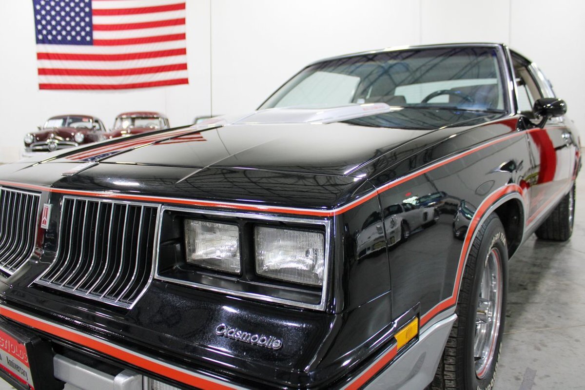 The mid-80s were strange times for performance car enthusiasts. The glory days of the muscle car era were now 15 years in the dust. Car manufacturers were promoting miles per gallon instead of horsepower. Front-wheel drive, fuel injection, strut suspensions, and electronic dashboards have now taken over the wonderful simplicity of power with rear-wheel application. To celebrate a fifteen-year alliance between performance icon Hurst and Oldsmobile, the W40 Hurst Oldsmobile 15th Anniversary edition was created with a back-to-basics approach: Body frame construction, control arm front suspension, and a powerful V8 driving a live rear axle. Production was limited to just 3001 examples, all were built in Lansing, MI, all were shipped to a secondary manufacturer, Cars and Concepts, for Hurst modifications, all were V8 powered and all were painted Black with Silver skirts separated with red striping. The 83 Hurst Olds captured the essence of an era when performance and style were king.