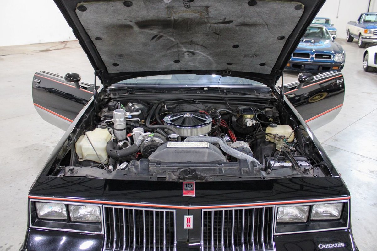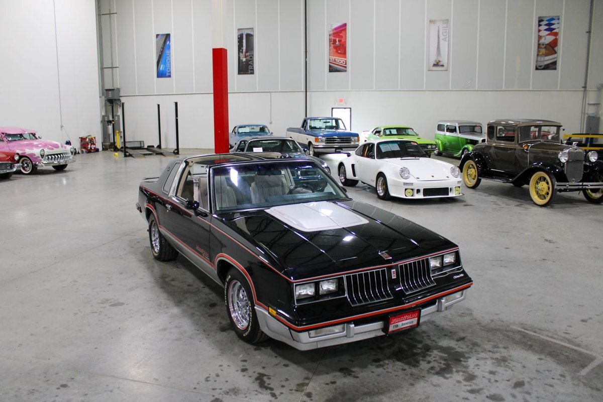 We are pleased to offer this excellent example of the 1983 Hurst Oldsmobile 15th Anniversary Edition. Fresh out of a private collection in Texas. The car has remained in the caring hands and has driven just over 95000 miles until our recent acquisition. Factory options include a 5.0 liter V8, Automatic transmission with the signature Hurst "Lightning Rod' shifter package with Console, Power Steering, Power Brakes, functioning Air Conditioning, Cruise, Tilt, AM/FM Cassette, Power Driver Seat, Power Trunk Release, Clock, Power Antenna, Dual Mirrors with Inside Adjust, Hurst T-Tops, etc. The car has always been cared for, and has never been in any accidents. Today as a result of consistent care, limited use, and proper storage, the car remains in excellent all-around original condition. The cloth interior remains excellent original in all areas, the paint remains excellent, the engine compartment is tidy and detailed, etc. Mechanically the vehicle remains very fit and is a blast to drive. The removal of the T-tops gives a great open-air experience.