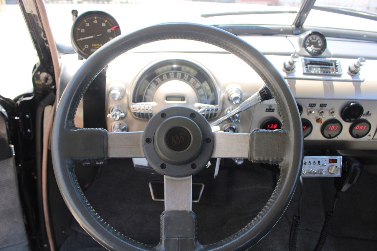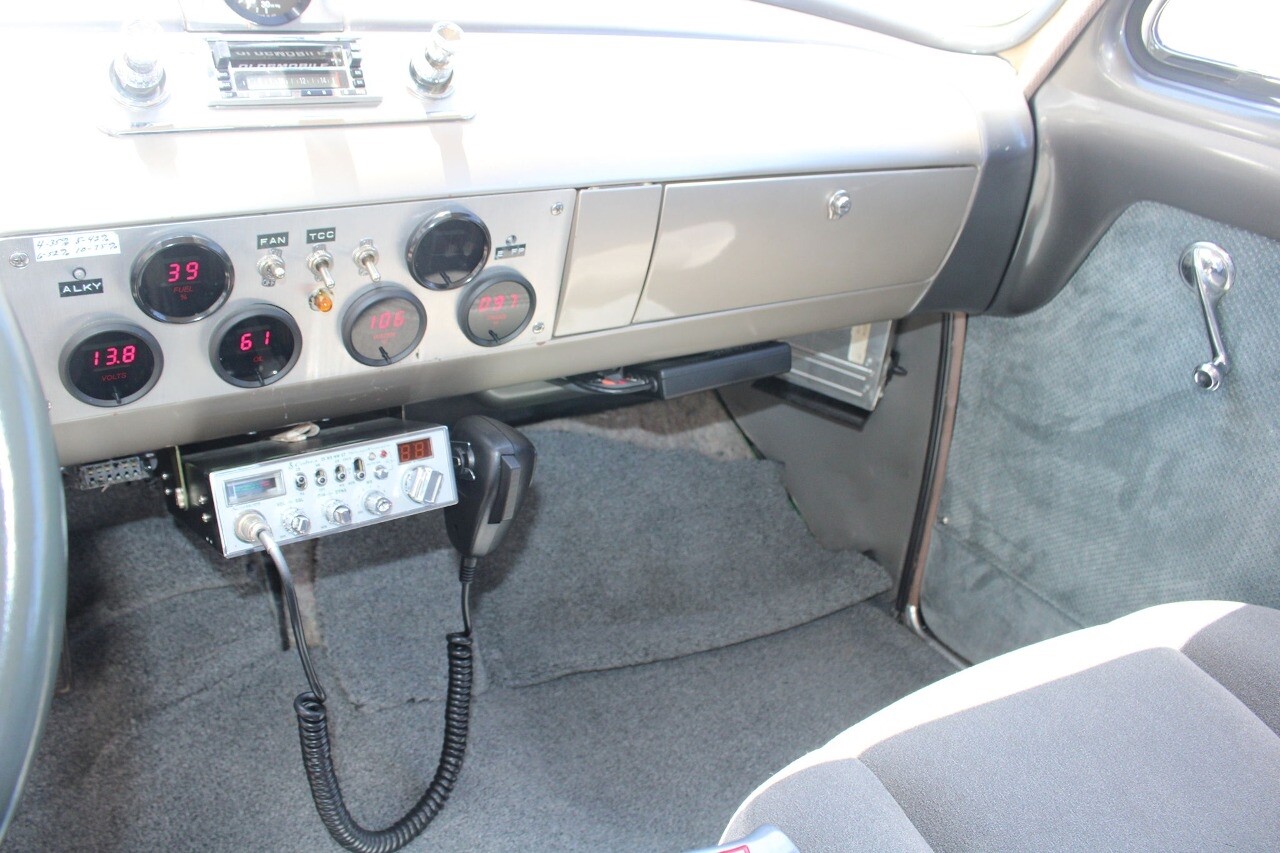Gateway Classic Cars Houston Showroom is excited to offer this truly unique 1949 Oldsmobile 88 Club Coupe for sale. For starters, this car is a legit 11-second performer in the quarter mile! We'll get to spilling the beans on those details shortly, but first, consider the fact that this car gives off all the aura of the timeless elegance of the late 1940's and early 1950's American automobile industry, with its sleek black paint, shiny chrome trim (the trim on this one is from a 1950 model), and their classic body styling. Then, after admiring the gleaming black paint on its exterior, get in and feel the truly exhilarating performance that this 1949 Oldsmobile 88 Club Coupe can deliver. It's one of those classic rides that seamlessly blends vintage charm with modern functionality and blistering performance. Inside, you'll find a well-appointed gray cloth interior that complements its classic design and offers a comfortable and inviting driving experience: its front seats feature integrated 3-point seatbelts, and the driver's seat also provides 6-way power adjustability. The customized dash includes digital gauges for fuel, oil, volts, boost, coolant temp, and transmission temperature, as well as the toggle switches for the TCC torque converter lock-up and auxiliary electric fans. [ omitted ]. Second pump kicks in at 17 lbs of turbo boost. Kick-in boost can be set/adjusted with switch on the engine block.