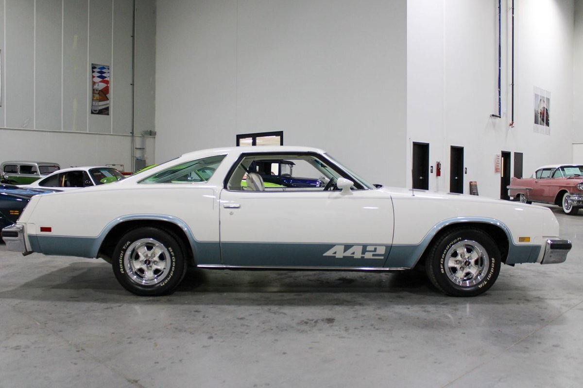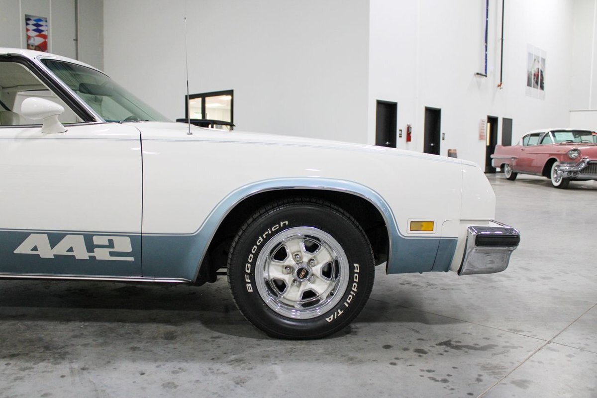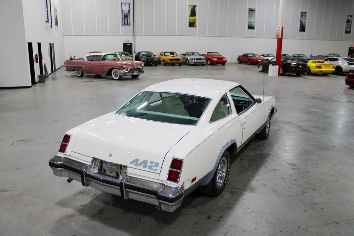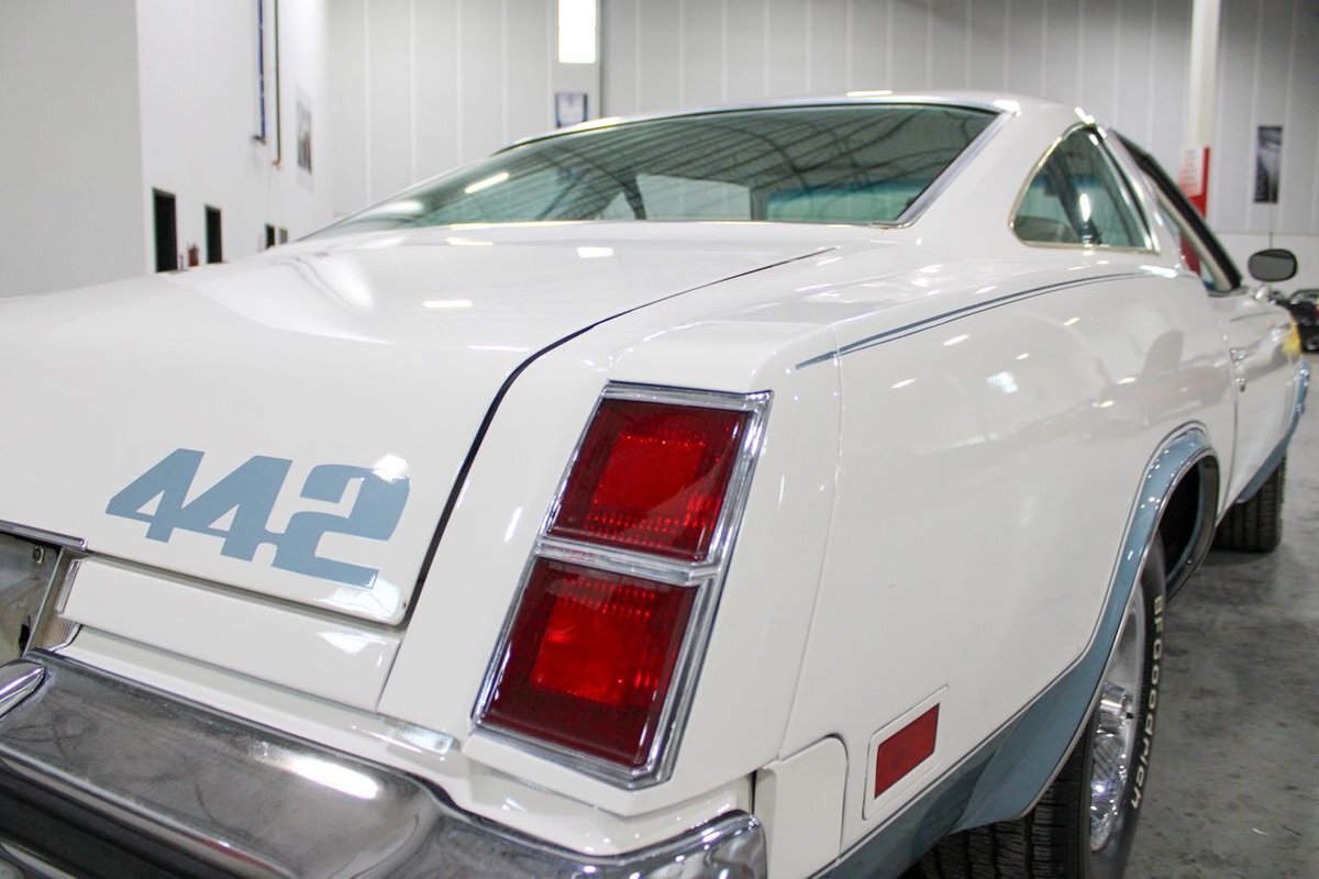 GR Auto Gallery is pleased to present this 1977 Oldsmobile Cutlass 442 Hardtop Coupe for purchase. This 442 came exceptionally well optioned with a factory 403ci V8 paired with a 350 turbo hyrdromatic transmission. The 403 was new for 1977 and was a pretty rare engine combination in the 442. This clean Olds has all the great factory features; bucket seats and console, operating heat and air conditioning, cruise control, tilt wheel, working NOS clock, rear window defroster... the list is very long and distinguished. The current owner has replaced several parts with NOS parts. The 442 even comes with a buildsheet. if you're looking for a very well maintained, and well mannered classic car, this is the car for you. Drive this one out of our showroom or have us assist with shipping it to you anywhere in the United States! Don't hesitate to give us a call with any questions or for more information.