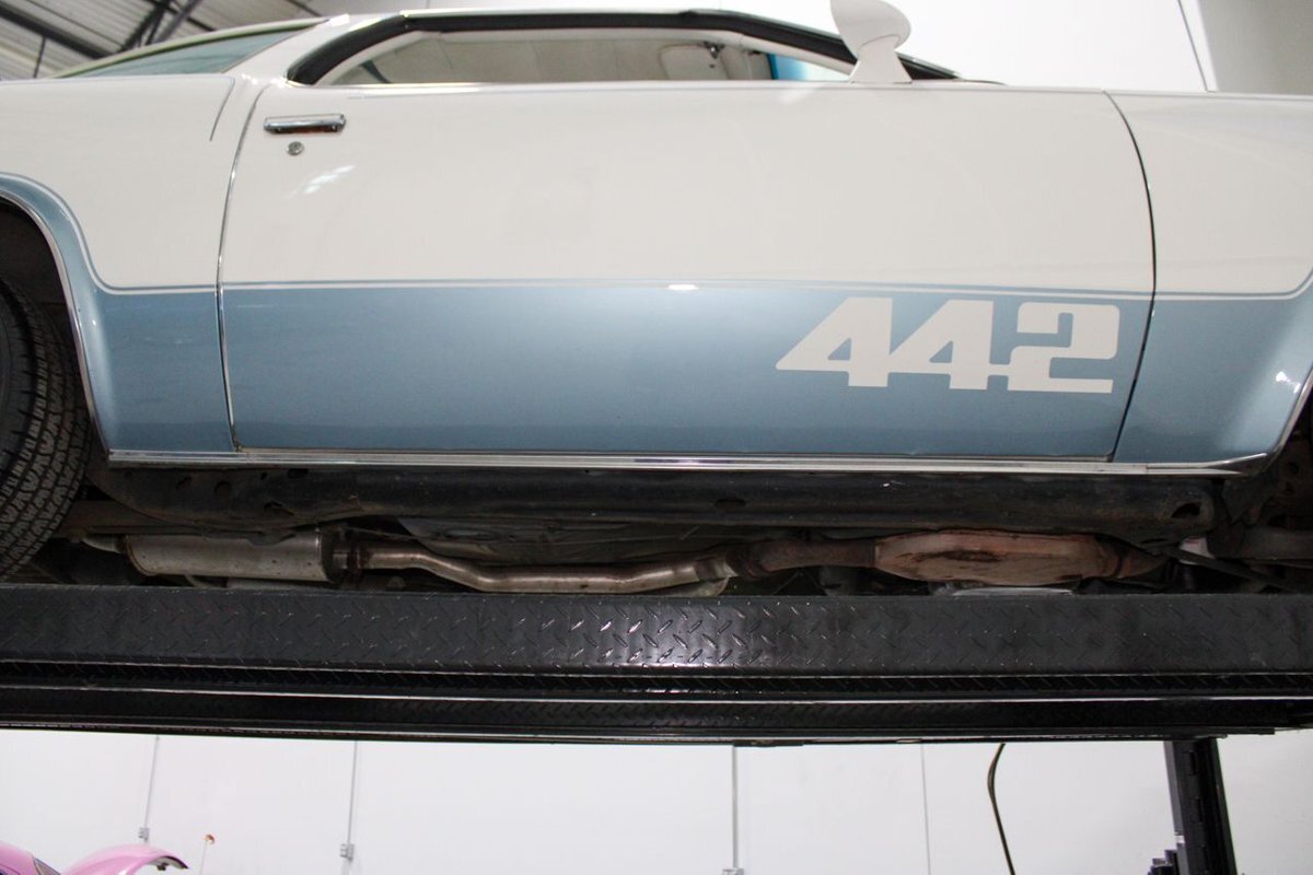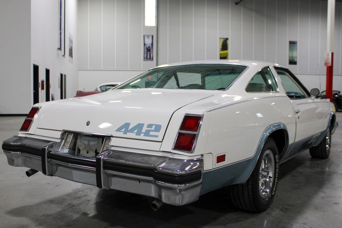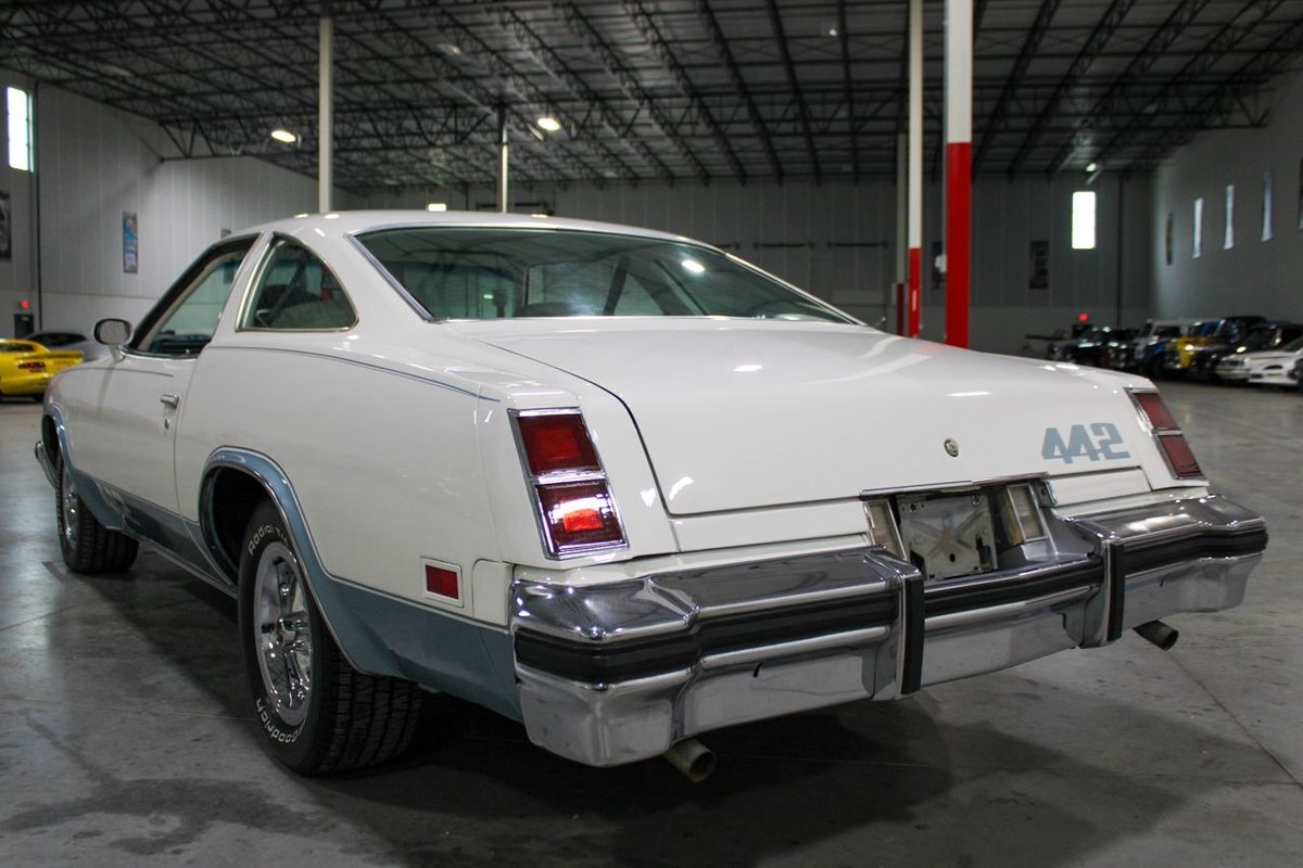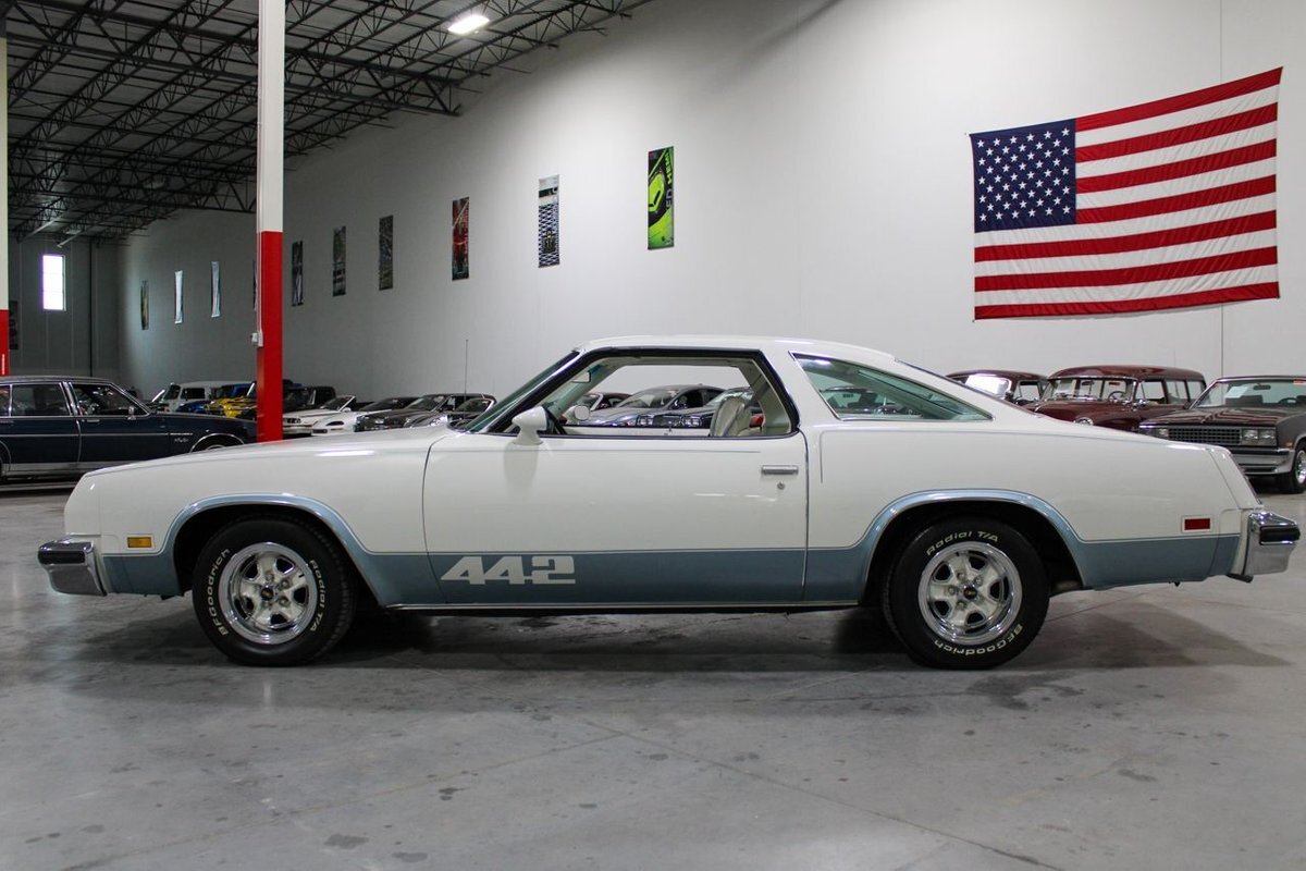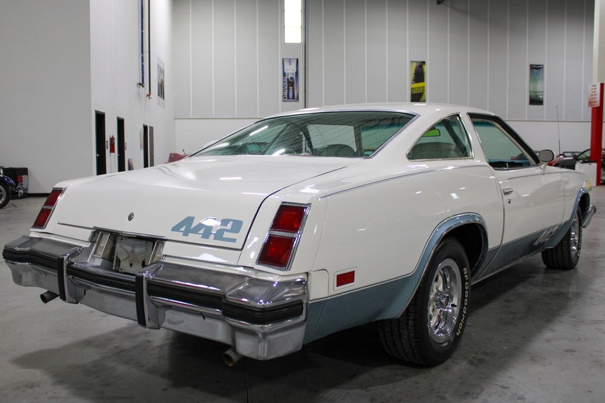 GR Auto Gallery is pleased to present this 1977 Oldsmobile Cutlass 442 Hardtop Coupe for purchase. This 442 came exceptionally well optioned with a factory 403ci V8 paired with a 350 turbo hyrdromatic transmission. The 403 was new for 1977 and was a pretty rare engine combination in the 442. This clean Olds has all the great factory features; bucket seats and console, operating heat and air conditioning, cruise control, tilt wheel, working NOS clock, rear window defroster... the list is very long and distinguished. The current owner has replaced several parts with NOS parts. The 442 even comes with a buildsheet. if you're looking for a very well maintained, and well mannered classic car, this is the car for you. Drive this one out of our showroom or have us assist with shipping it to you anywhere in the United States! Don't hesitate to give us a call with any questions or for more information.