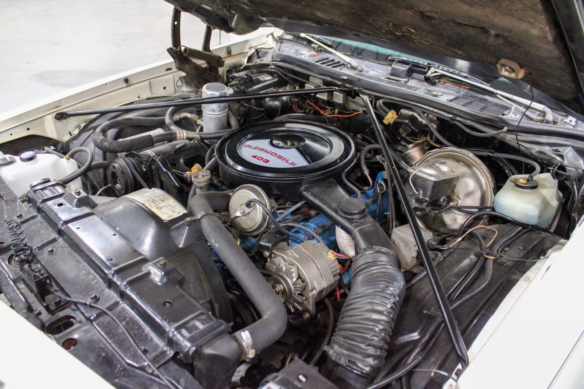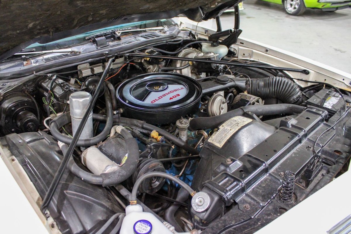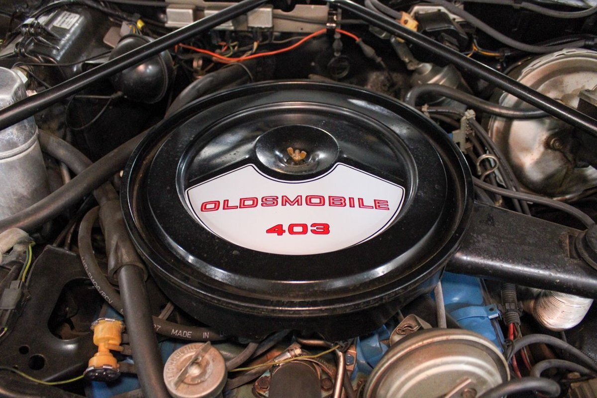 The 1977 model year was the last for the 1973-vintage Colonnade body. The 4-4-2 was the only Oldsmobile intermediate to feature the NASCAR sloped nose from the '76 model, with the Cutlass S switching to an upright nose similar to Cutlass Supreme models. Engine offerings were revised, with Buick's 231 cubic-inch V6 replacing the base model Chevy 250 inline-six, with optional powerplants again including the Oldsmobile built 260 and 350 cubic-inch Rocket V8s. Replacing the 455 as the top engine was a new Oldsmobile 403 cubic-inch Rocket V8 rated at 180 horsepower (130 kW). Transmission offerings included a three-speed manual or Turbo Hydra-matic with the V6, five-speed manual or Turbo Hydra-matic for the 260 V8, and Turbo Hydra-matic was the sole offering for the 350 and 403 V8s. Interiors included a standard bench seat with cloth-and-vinyl or all-vinyl bench seat, or optional Strato bucket seats with all-vinyl upholstery and without the swiveling feature of previous years. The console remained optional with bucket seats.