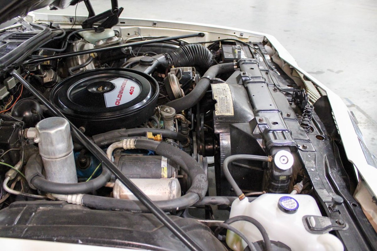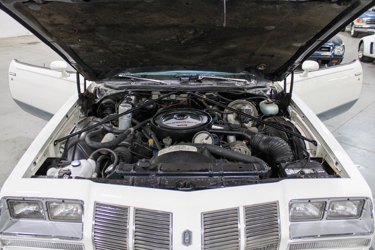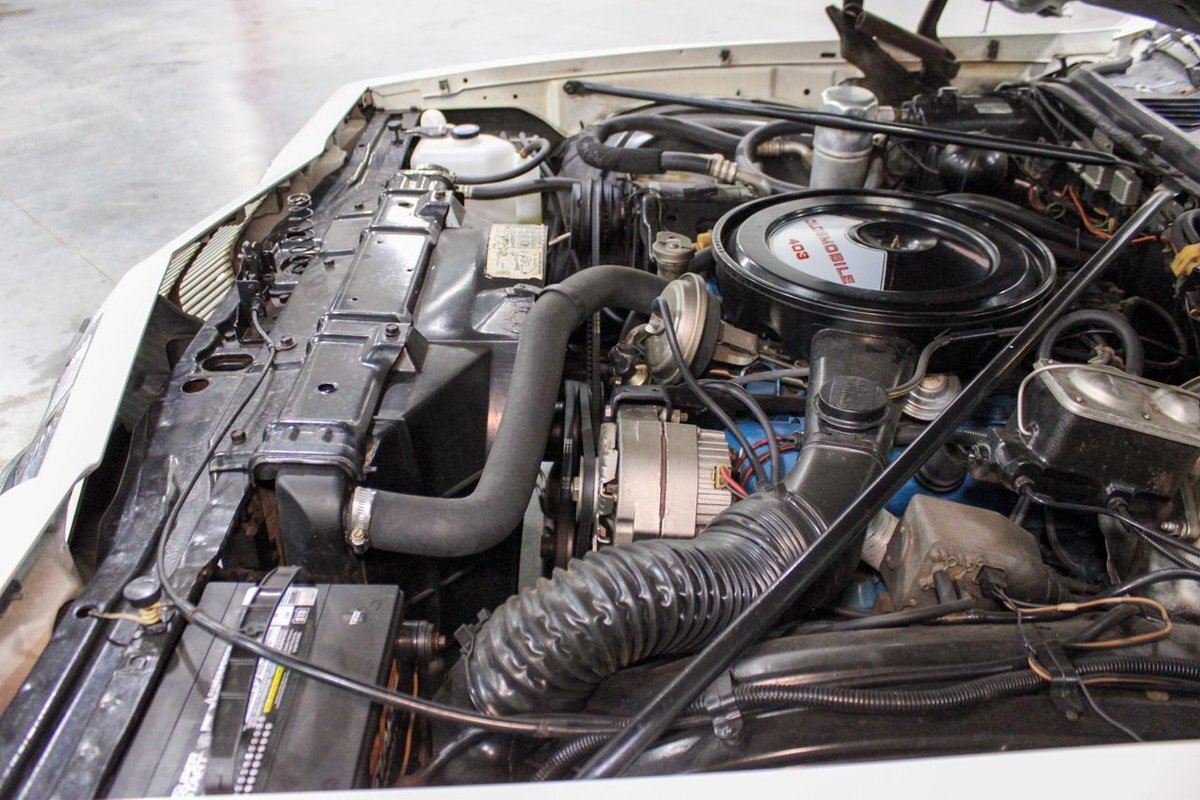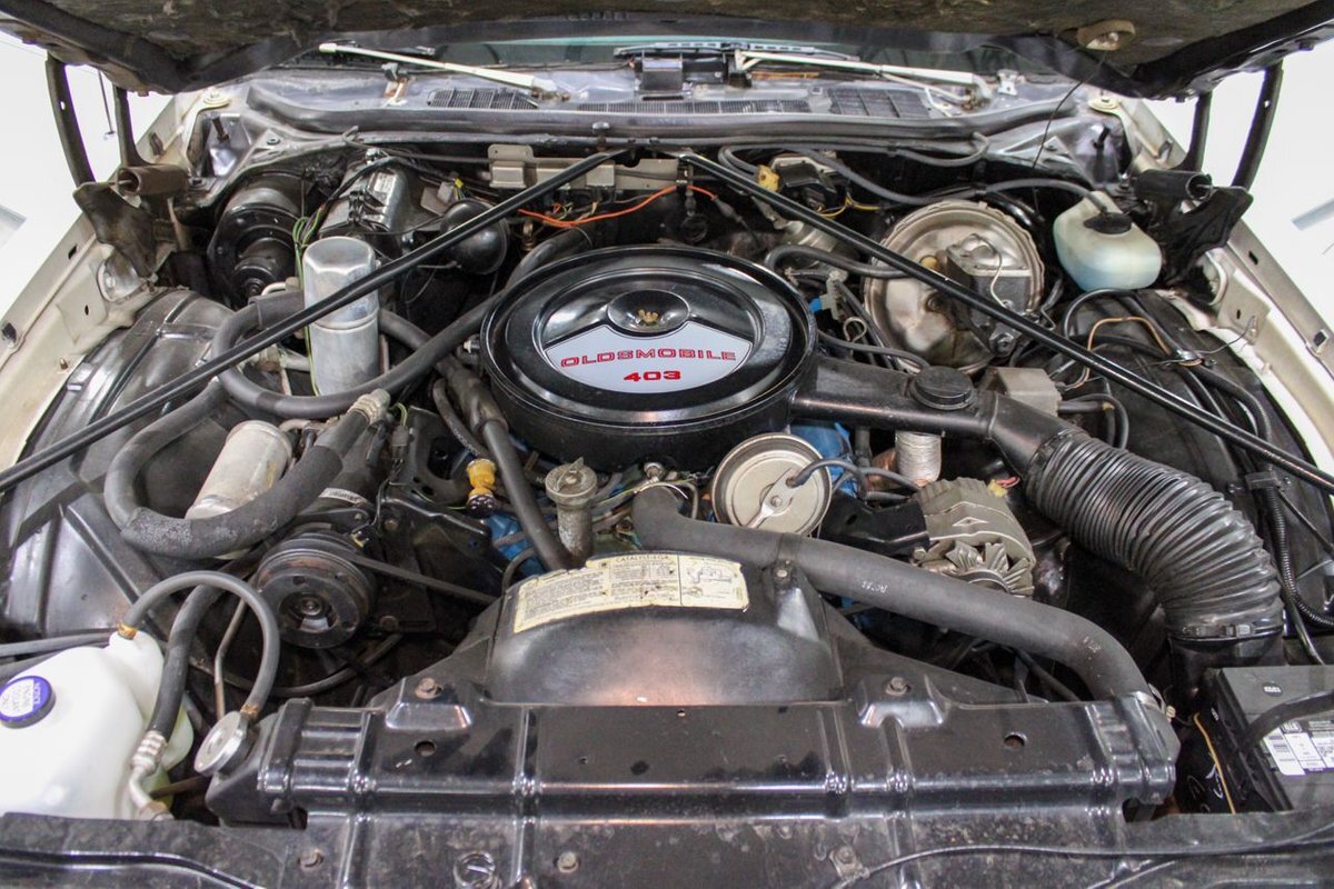 The 1977 model year was the last for the 1973-vintage Colonnade body. The 4-4-2 was the only Oldsmobile intermediate to feature the NASCAR sloped nose from the '76 model, with the Cutlass S switching to an upright nose similar to Cutlass Supreme models. Engine offerings were revised, with Buick's 231 cubic-inch V6 replacing the base model Chevy 250 inline-six, with optional powerplants again including the Oldsmobile built 260 and 350 cubic-inch Rocket V8s. Replacing the 455 as the top engine was a new Oldsmobile 403 cubic-inch Rocket V8 rated at 180 horsepower (130 kW). Transmission offerings included a three-speed manual or Turbo Hydra-matic with the V6, five-speed manual or Turbo Hydra-matic for the 260 V8, and Turbo Hydra-matic was the sole offering for the 350 and 403 V8s. Interiors included a standard bench seat with cloth-and-vinyl or all-vinyl bench seat, or optional Strato bucket seats with all-vinyl upholstery and without the swiveling feature of previous years. The console remained optional with bucket seats.