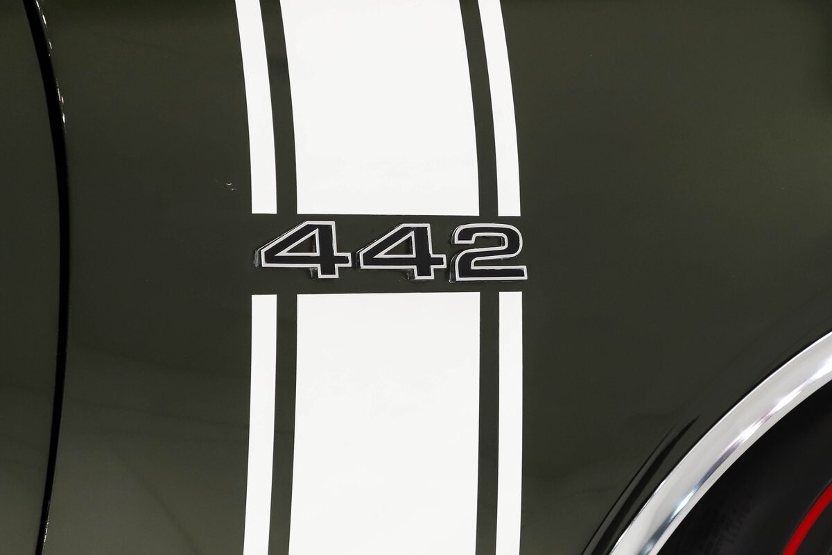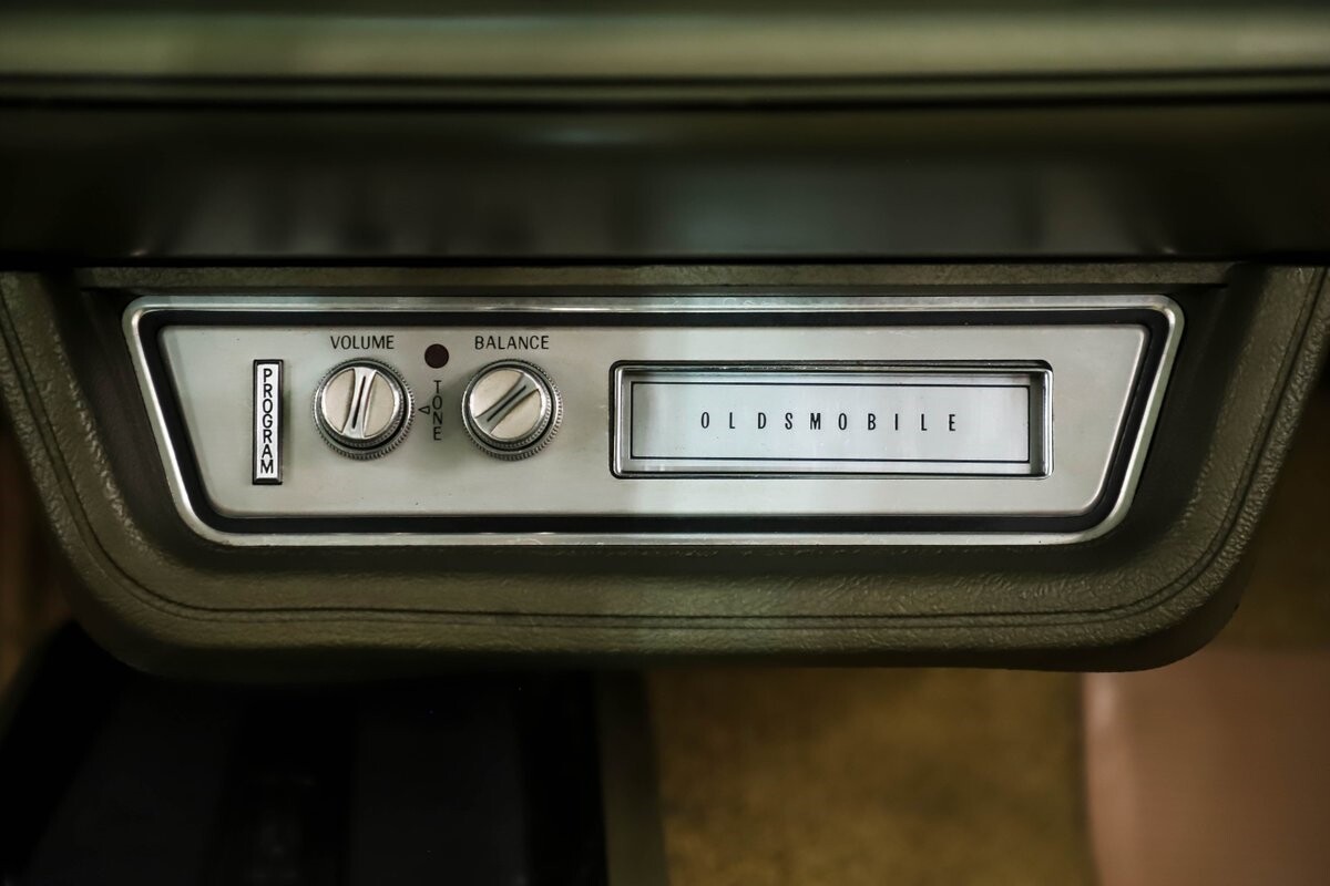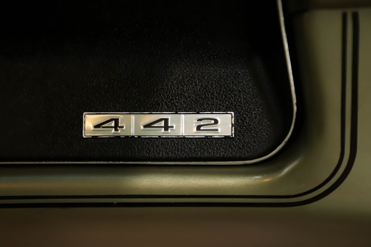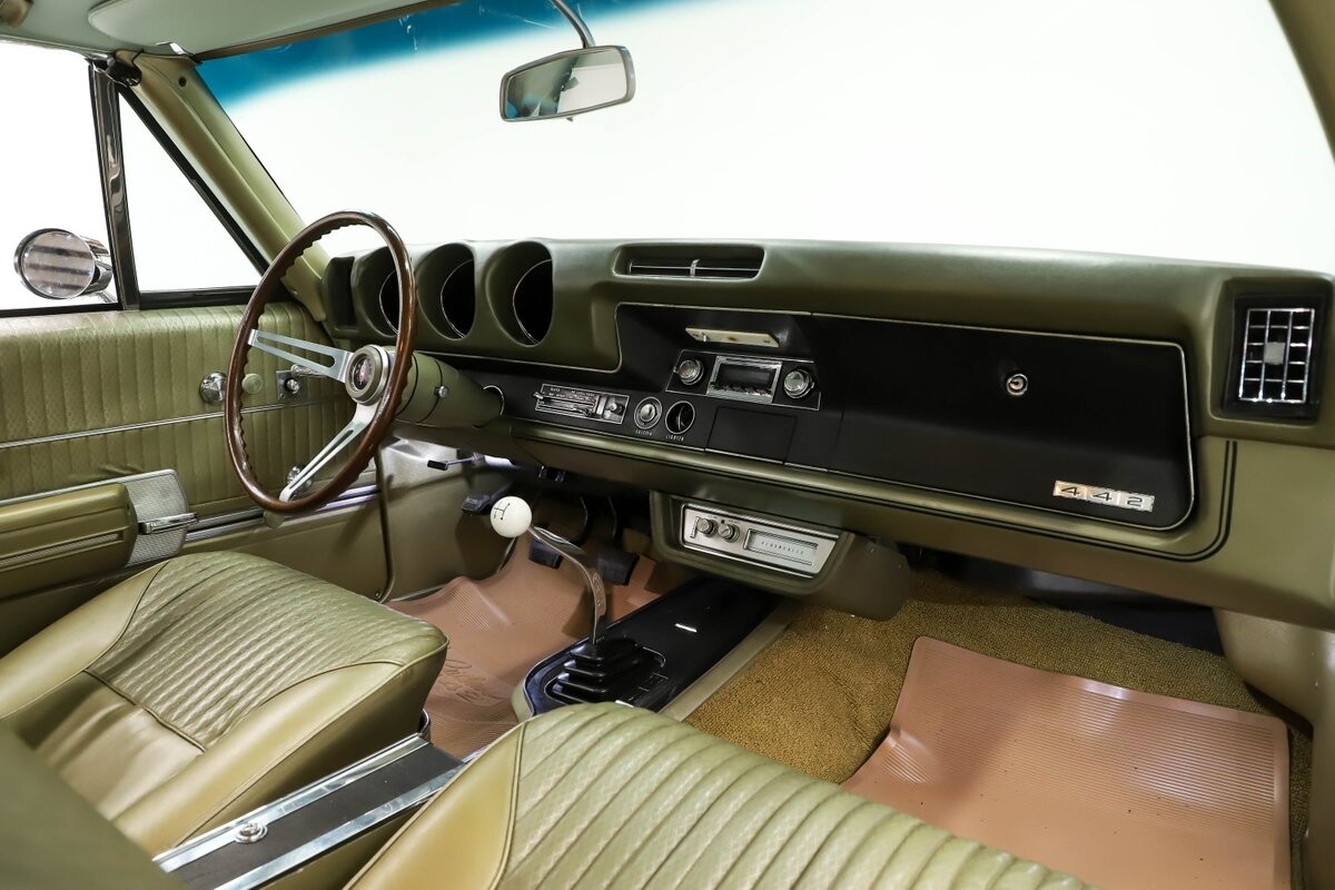 INTERIOR: This interior is 100% original with exception of the headliner, sun visors, and Retro Sound stereo (original included in the trunk)! The authentic front bucket seats are in fantastic condition and show just the slightest bit of patina. The factory center console sits proudly between the front seats and look amazing. The Hurst shifter is original and says 442 right on it! The rear seat is also in remarkable condition. It has the original seat belts all the way around. The factory door panels are in exquisite shape. The dash pad is free of any imperfections as is the rest of the dash. The original gauges are in place and there are currently 88,159 actual miles on the odometer. It is equipped with optional Tic Tok Tach and rally gauges from the factory. It still retains the very rare and original 8-track tape player. The original radio was replaced with a Bluetooth and SiriusXM capable digital radio by Retro Sound. The headliner and visors were professionally reupholstered. The carpeting and floor mats are original and in outstanding condition. The dome light and kick panel lights are in working condition.