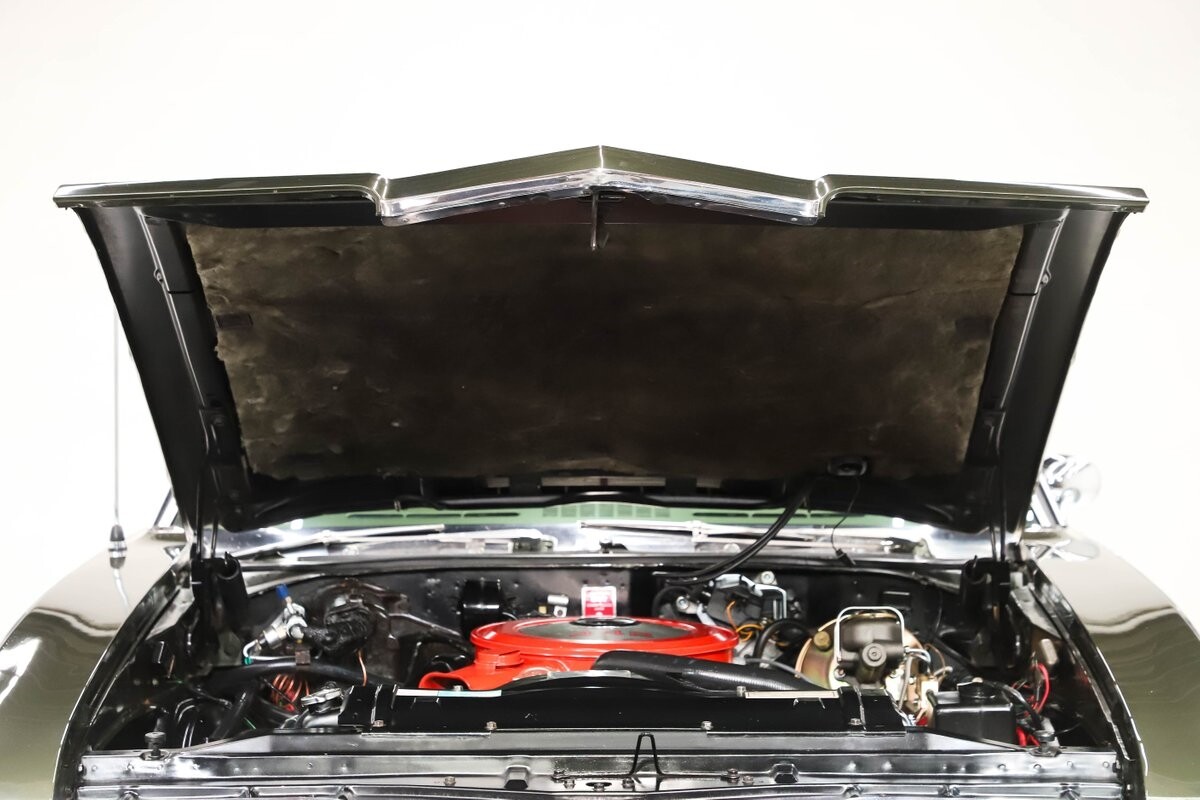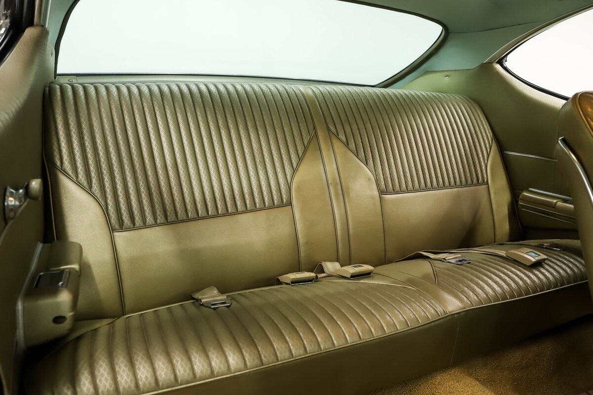ENGINE COMPARTMENT: Wow! Lift the hood and be mesmerized by the factory original, #'s matching 400 engine with 4 barrel carburetor. It has been removed and completely rebuilt by professionals during restoration then dyno tuned to perfection. It has been neatly repainted and still has its original air cleaner. The factory air conditioning has been retrofitted to R-134A. It also features power steering and brakes. The original radiator was re-cored. It has electronic wipers and the squirters are hooked up. The brake master cylinder and booster have been upgraded. The underside of the hood is complete with insulation. The fender wells and firewall are painted their correct satin black, and the original cowl tag is in place.