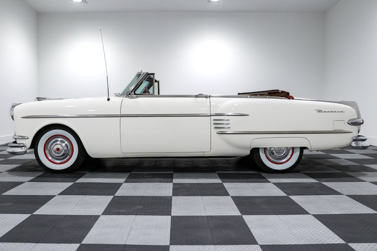Step back into the golden age of American luxury with this stunning 1954 Packard Clipper Convertible. Bathed in a pristine White exterior and featuring a vibrant Red vinyl interior, this classic convertible embodies the elegance and craftsmanship that made Packard a legendary name in the automotive world. Under the hood, the reliable Straight 8 engine is paired with the smooth Ultramatic Drive automatic transmission, offering a driving experience that's both powerful and refined.