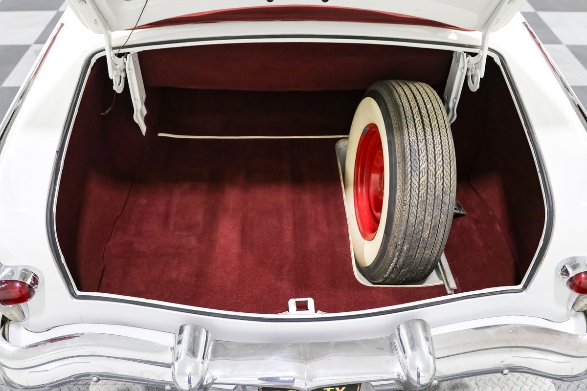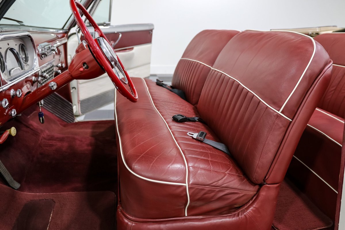 Inside, the spacious bench seat in Red vinyl offers comfort and style, inviting you to relax and enjoy the ride. The attention to detail is evident throughout, from the elegant dashboard to the finely crafted trim. This Packard is not just a car; it's a time machine, transporting you back to an era of unparalleled luxury and sophistication.