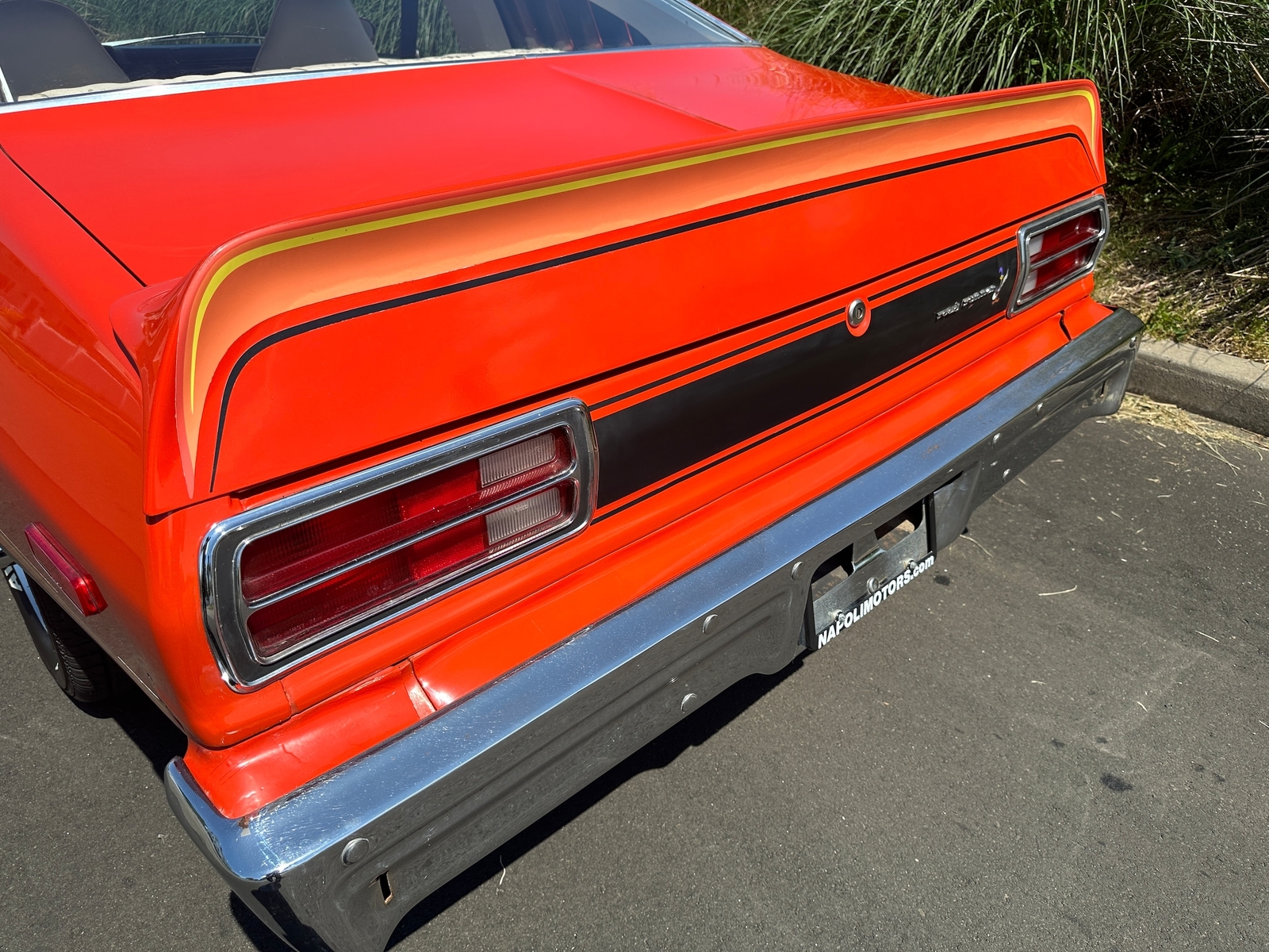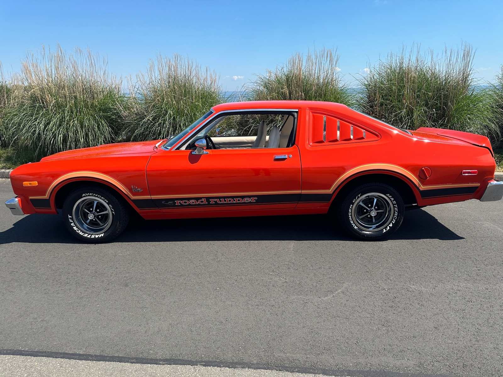 1976 PLYMOUTH ROADRUNNER 318 V8 4/SPEED RARE ONLY 254 PRODUCED YEAR: 1976 MAKE: PLYMOUTH MODEL: ROADRUNNER BODY: COUPE COLOR: HEMI ORANGE TRIM: WHITE ENGINE: 318 V8 TRANS: 4/SPEED REAR: STD 8 '' OPEN MILES: 93,246 (ACTUAL) SERIAL#: HL29G6B351978 OPTIONS *ROADRUNNER PACKAGE *318 V8 *4/SPEED TRANS *POWER STEERING *POWER BRAKES *BUCKET SEATS * RADIO (not working) *RALLY WHEELS *W/L RADAIL TIRES SERIAL#BREAKDOWN H-PLYMOUTH VOLARE L-LOW 29-SPECIAL 2DR COUPE G-318 V8 6-1979 B-HAMTRAMCK 351978 SEQ# RESTORATION *PAINT was done approximately 6 years ago. New seat covers. New rugs. Just done in may 2024. Brand new tires, new headliner, tune up, all electrical safety items repaired. HISTORY THIS original and rare roadrunner came out of PA. All original equipment with only 254 produced with 4/speeds. The car is a nice driver with minor cosmetics areas. The undercarriage is very solid. A great running and sounding 1976 ROADRUNNER.