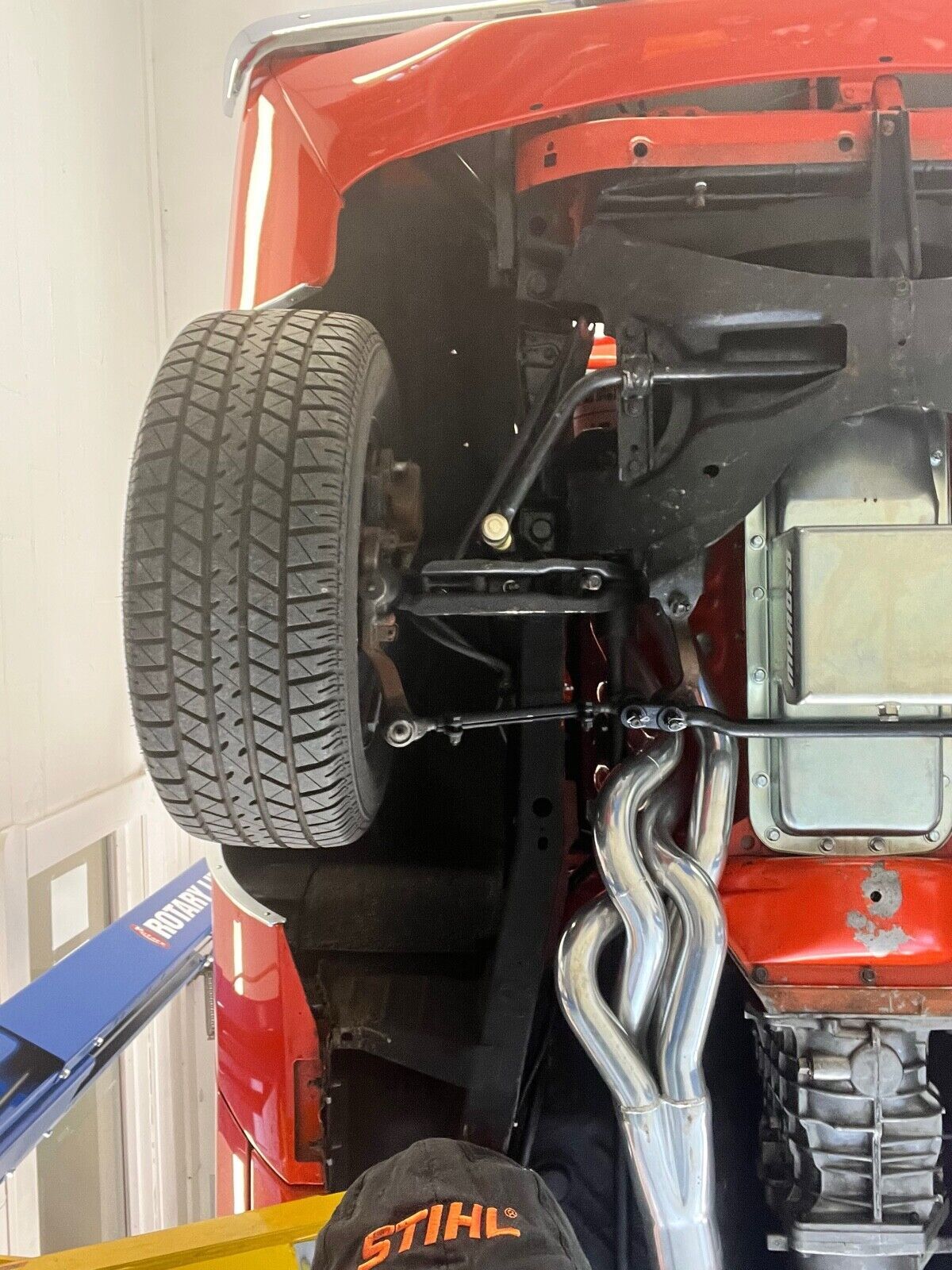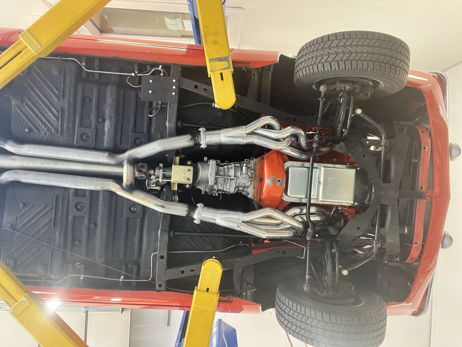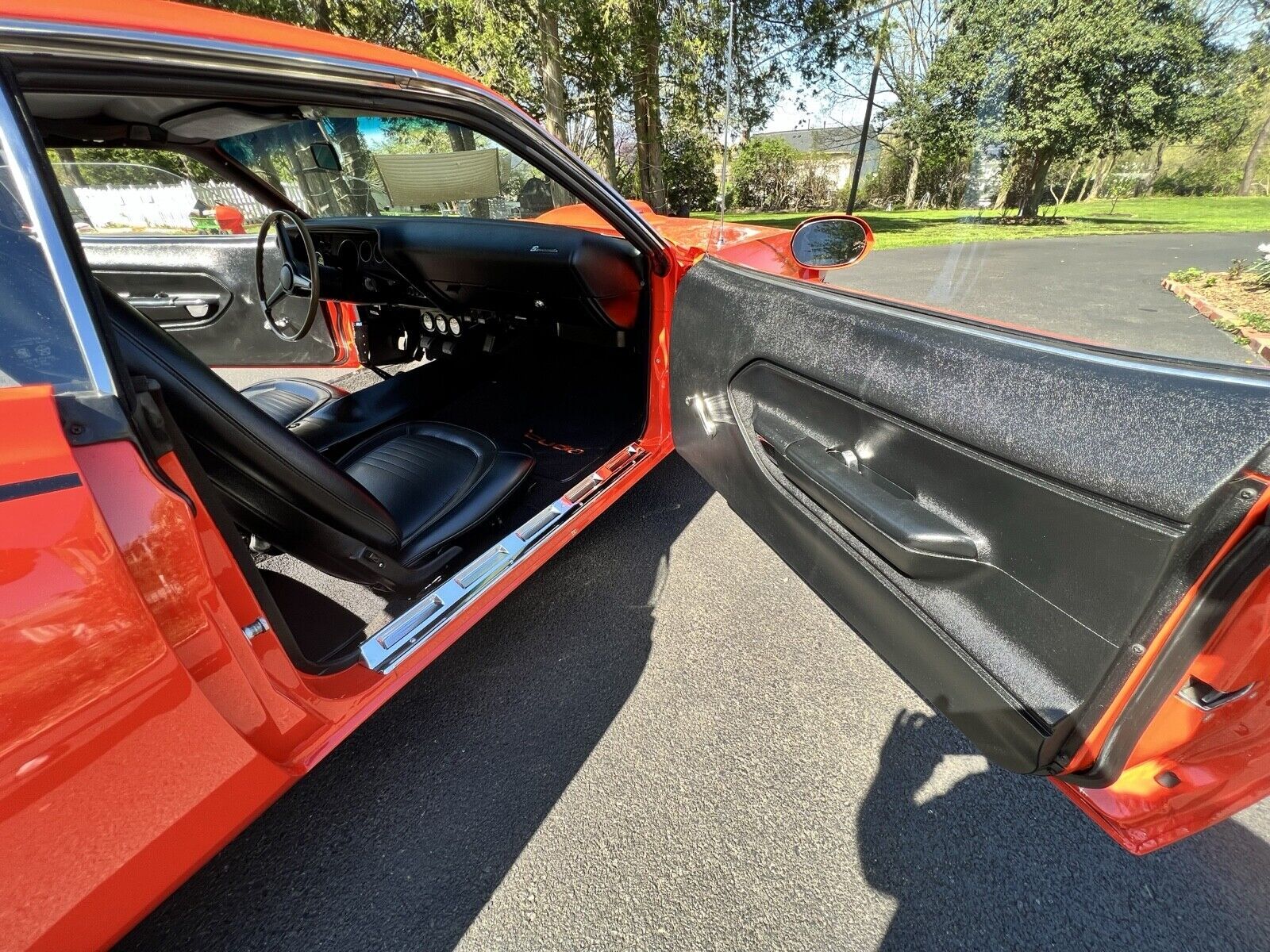 The original fender tag identifies that this beast was born in Tor-Red, top to bottom (no vinyl roof), with power brakes, woodgrain center console, drip rail moldings, bucket seats, and an AM radio, all of which it retains. The original motor was a 318 paired with a 3-speed floor manual – these have been given a healthy dose of steroids by Ray Barton and Tremec. This beast is a truly magnificent head-turner.