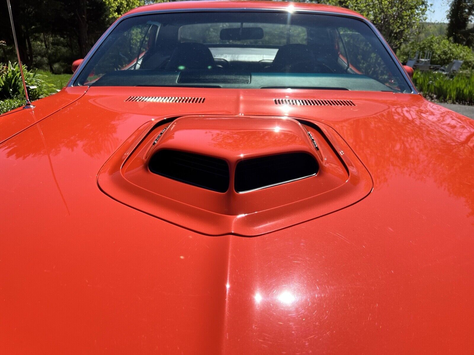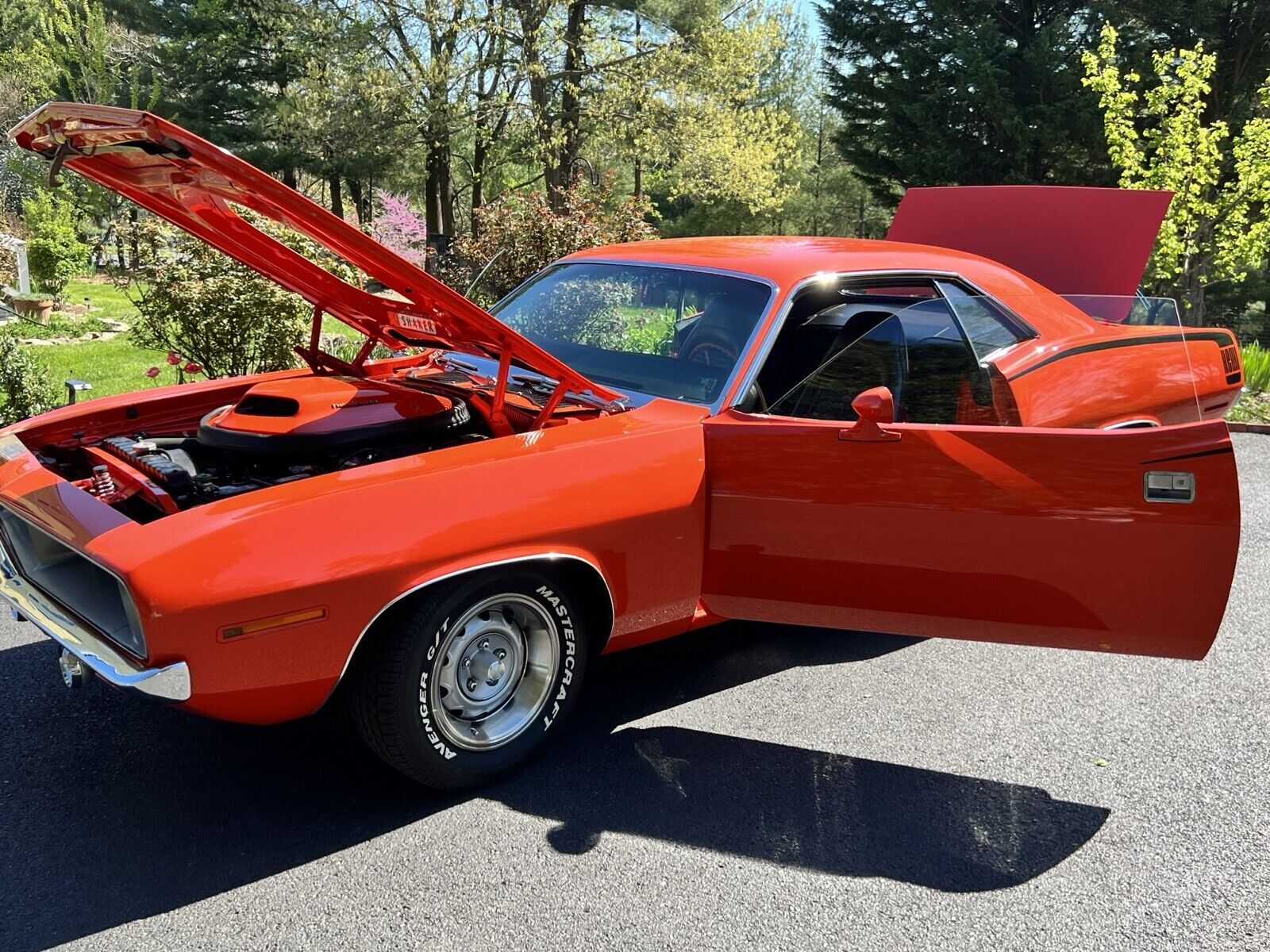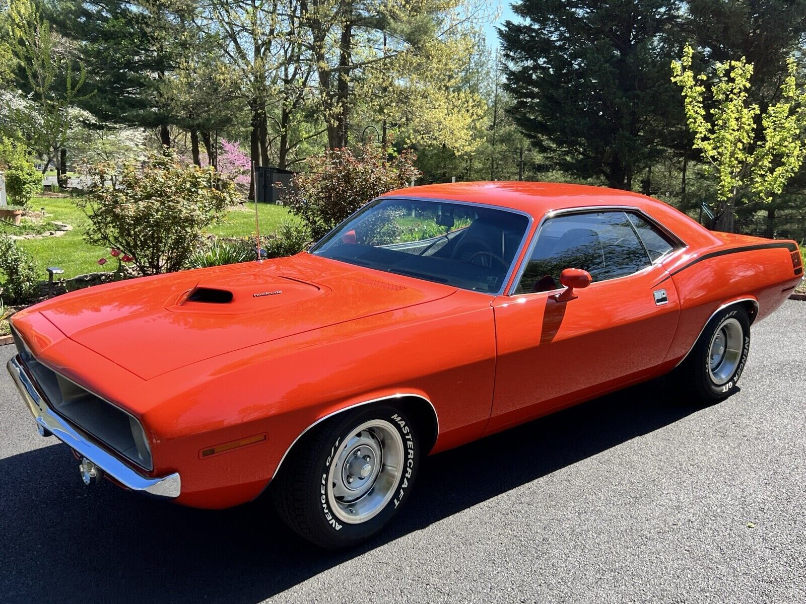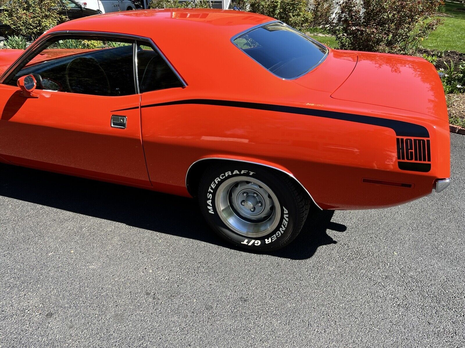 Magnificent 70 Hemi Cuda tribute! Powered by a FRESH (2022) Ray Barton 540 Level 3 Hemi dyno’ed at over 800 hp! Attached to a new Tremec 5-speed dual silicone disc clutch, rated at up to 1,000 hp. Custom headers and 3-inch exhaust through Flowmasters make the sound of this beast. Factory Steel Rally Wheels. Factory interior. 8.75 rear end w/ 2:76 gears. Electric Fuel Pump. Original Glass. Original Fender Tag. Black Hockey Stick Stripes. Flow Master Dual Exhaust. Power Brakes. Shaker Hood. Front Sway Bar. Space Saver Spare Tire. Column Mount tachometer. Driver and Passenger Side Mirrors. Hemicuda Shaker Emblems. Perfect Tor Red exterior paint. Hurst Pistol Grip Shifter. Woodgrain Center Console. Dyno Tech Drive Shaft.