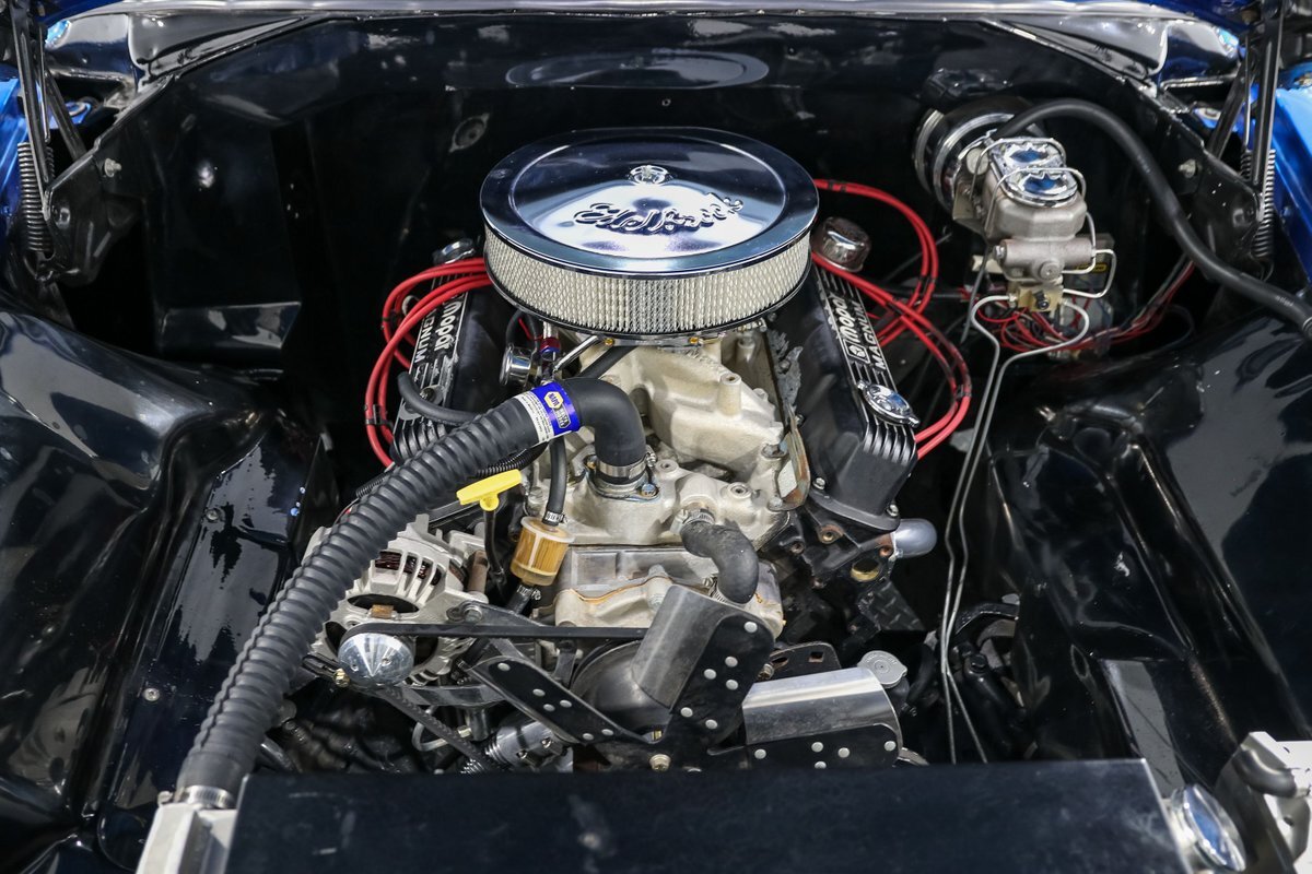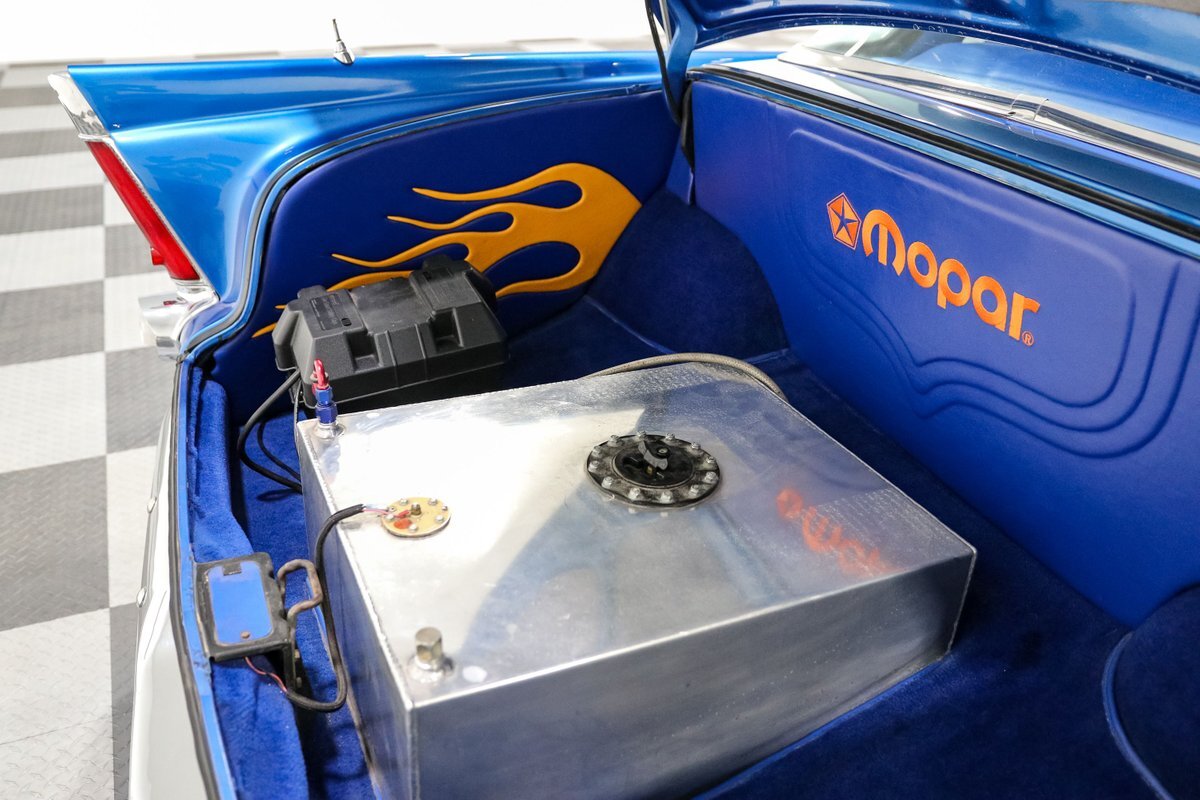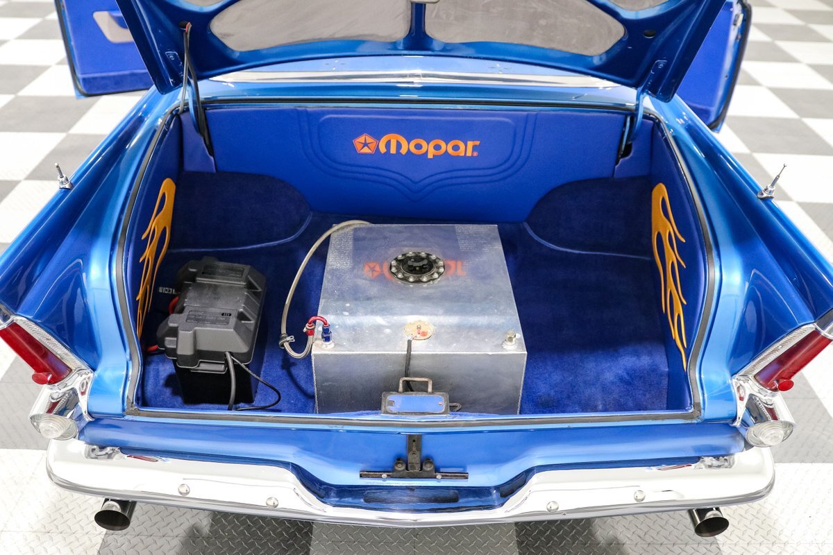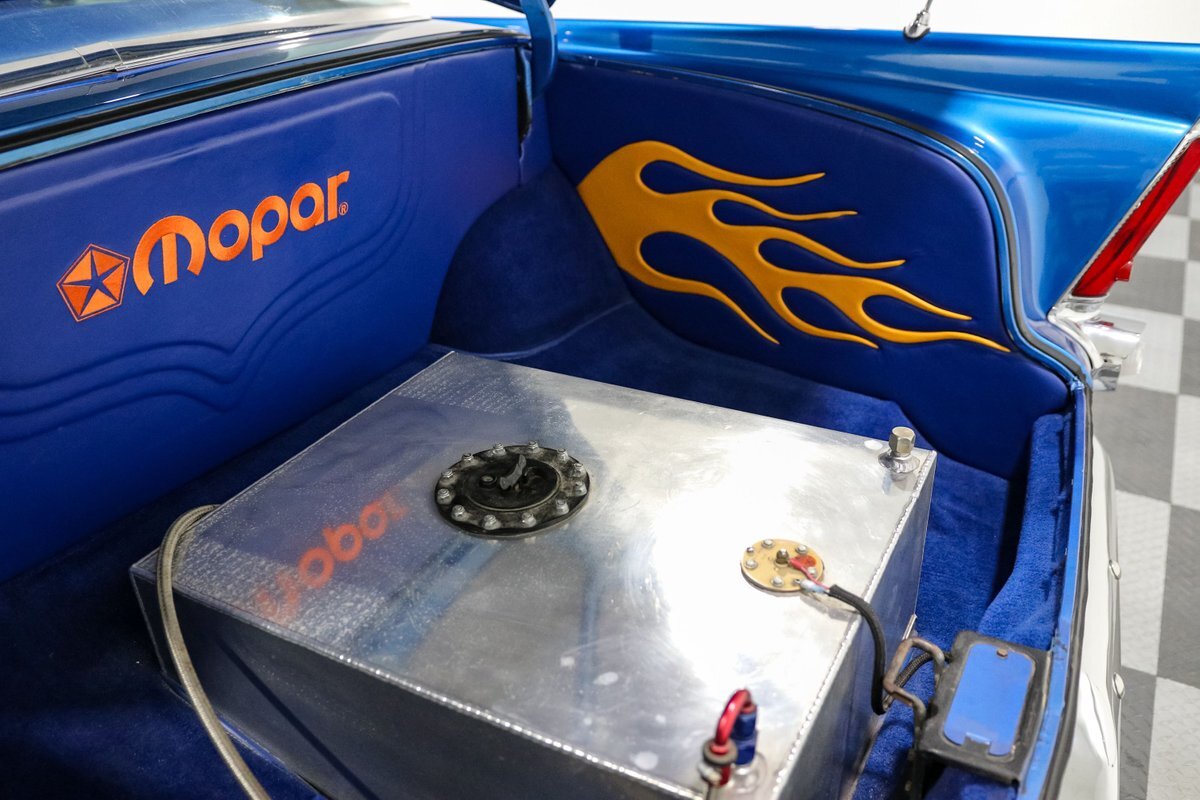 The 1956 Plymouth Fury was a standout model in its time, known for its speed and distinctive styling. This particular example takes that legacy to new heights with a host of performance upgrades. The Mopar performance aluminum finned valve covers, Edelbrock Performer RPM aluminum intake, and Holley carburetor work together to maximize engine efficiency and power. The MSD ignition system and ceramic-coated block hugger headers ensure reliable performance and an exhilarating exhaust note.