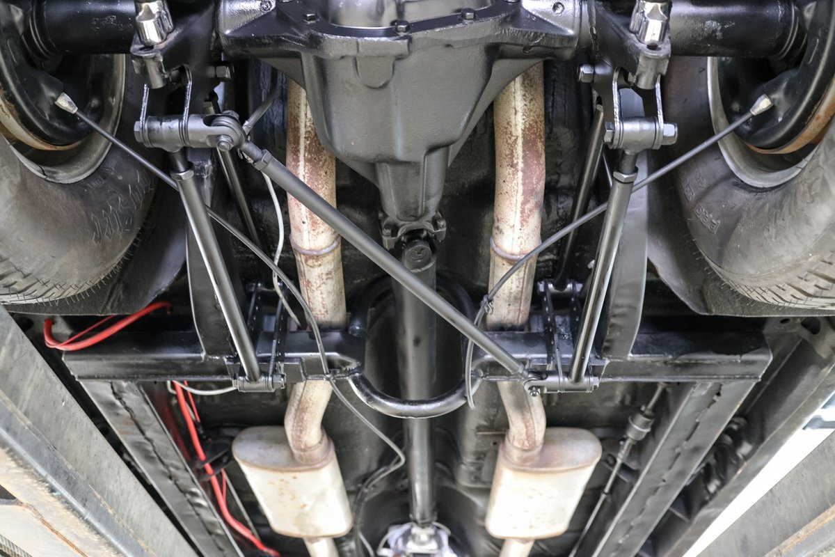 This Fury's exterior is a true showstopper. The custom paint job shines brilliantly, while the dual sport mirrors and 15-inch aluminum Centerline wheels wrapped in massive 29/18.5R15 Hoosier rear tires give it an aggressive stance. The narrowed Dana 60 rear end and 4-link rear suspension with coil overs provide exceptional handling and stability, making this classic as agile as it is powerful. Power rack and pinion steering and front disc brakes with power brakes ensure that it handles and stops as well as it accelerates.