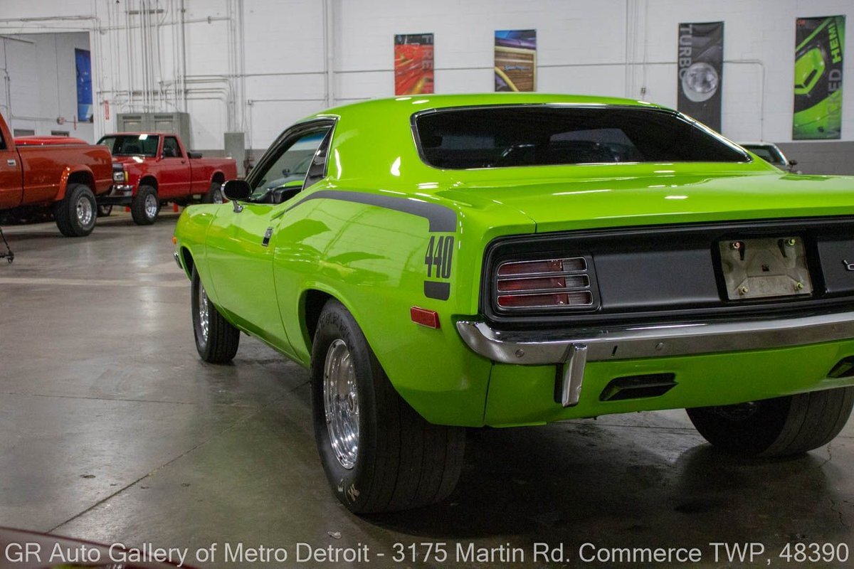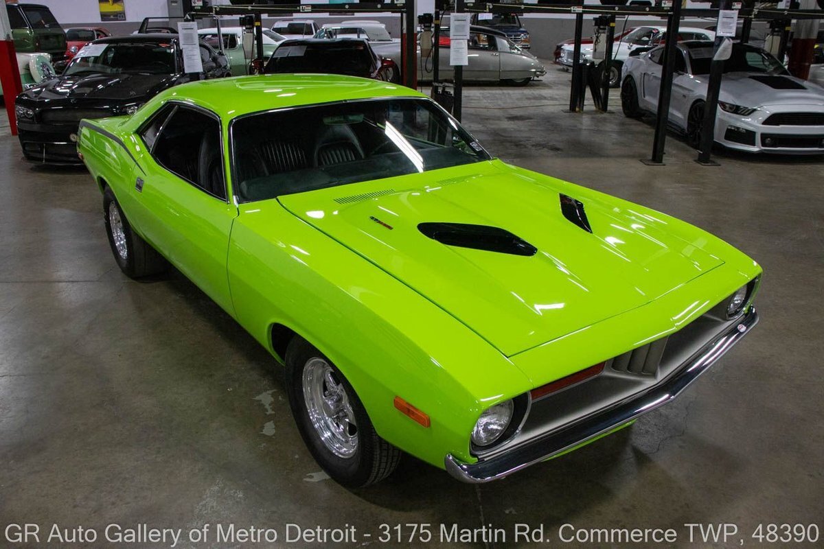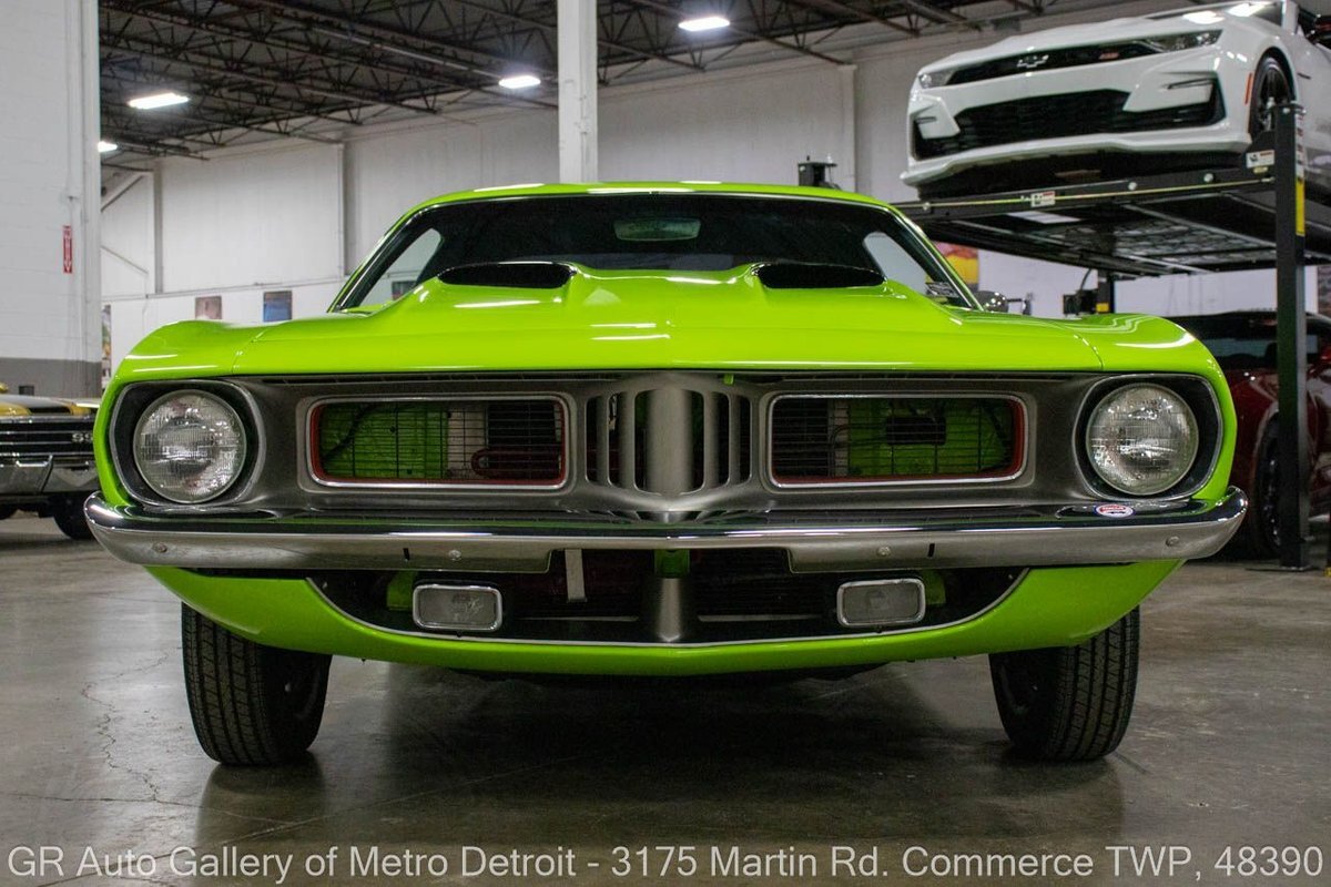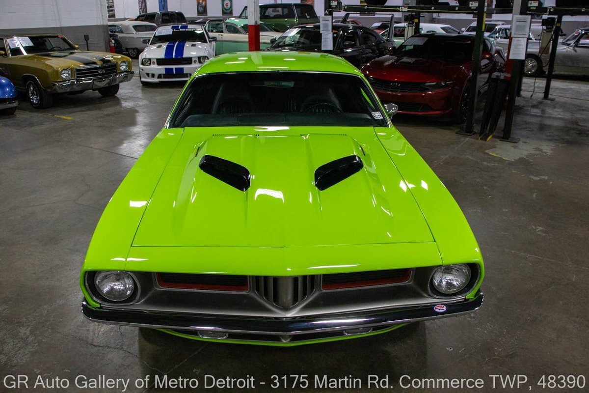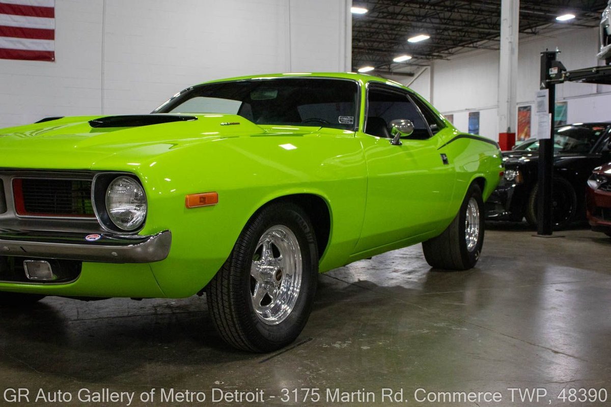 GR Auto Gallery is pleased to present this fully restored 1972 Plymouth Cuda for your consideration. With a powerful 440 cubic inch V8 engine producing 600 horsepower, paired with a 727 automatic transmission and a geared 8 3/4 posi rear end 10 over, this Cuda is a true beast on the road. The bright green exterior is complemented by a sleek black interior, showcasing the attention to detail in the rebuild completed 7 years ago. With only 5,000 miles since restoration, this Cuda is packed with features such as new front tires, Kenwood aftermarket stereo, rebuilt transmission, new front grill, new front and rear bumper, 906 headers, Holly carburetor, power front disc brakes, drum rear brakes, custom exhaust with power cut out, spin tech mufflers, air shocks in the rear, new tail panel, fresh paint in 2023, stock hood raised 4 inches and more. Drive this one out of our showroom or have us assist with shipping it to you anywhere in the United States! Don't hesitate to call us with any questions or for more information.