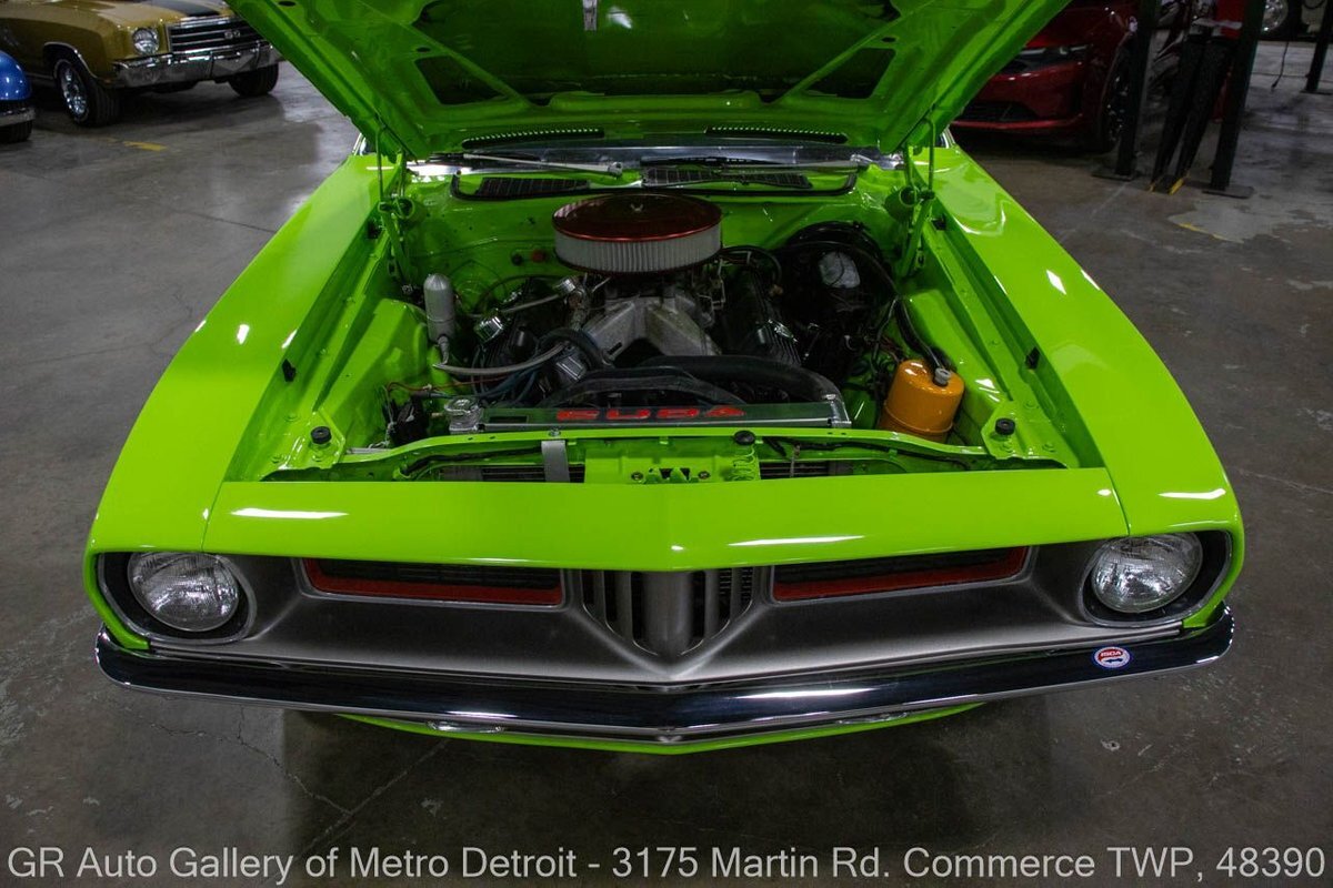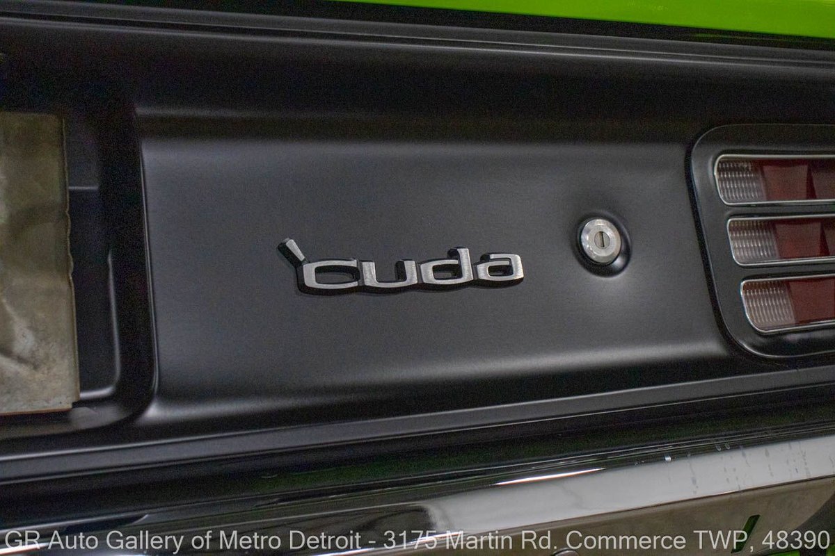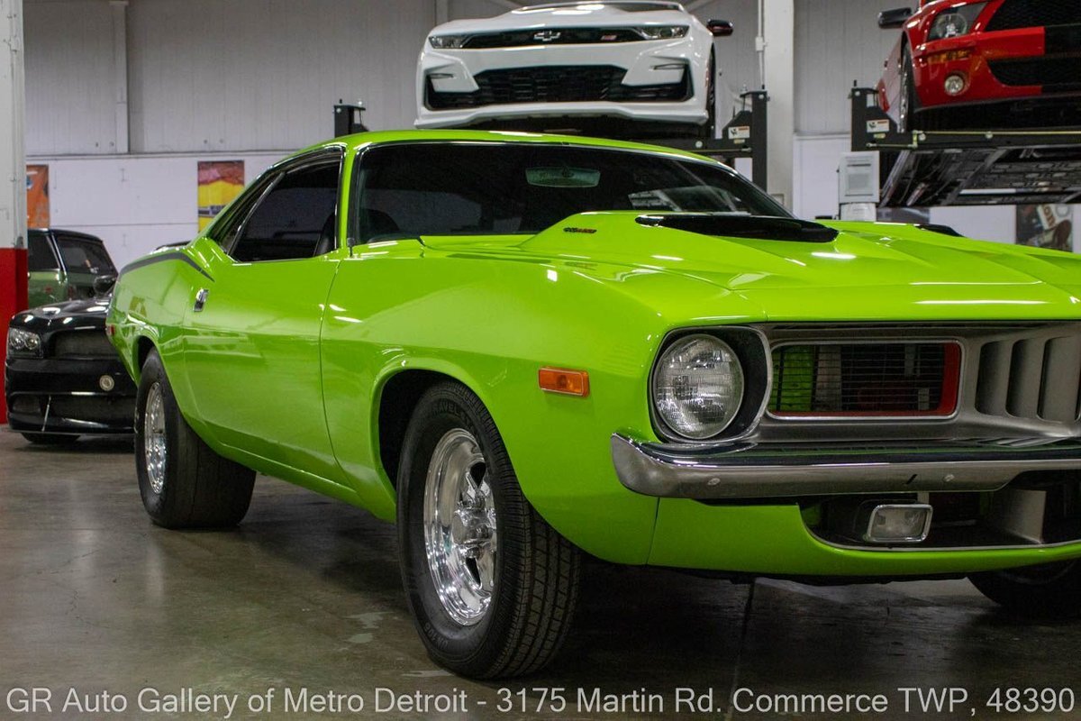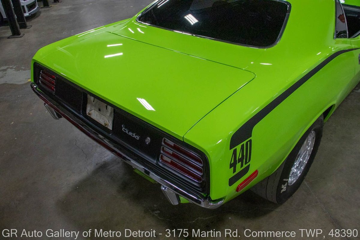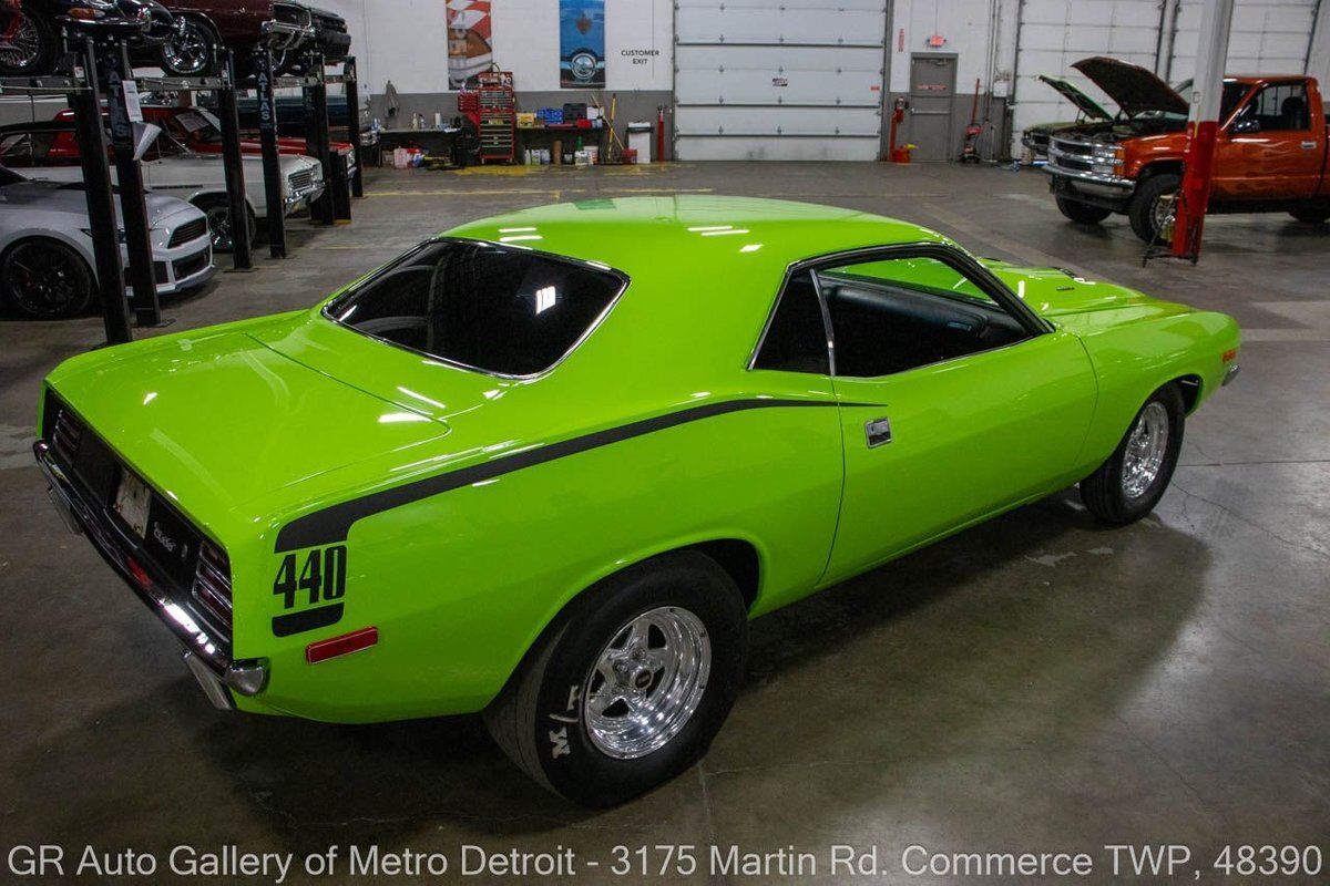 GR Auto Gallery is pleased to present this fully restored 1972 Plymouth Cuda for your consideration. With a powerful 440 cubic inch V8 engine producing 600 horsepower, paired with a 727 automatic transmission and a geared 8 3/4 posi rear end 10 over, this Cuda is a true beast on the road. The bright green exterior is complemented by a sleek black interior, showcasing the attention to detail in the rebuild completed 7 years ago. With only 5,000 miles since restoration, this Cuda is packed with features such as new front tires, Kenwood aftermarket stereo, rebuilt transmission, new front grill, new front and rear bumper, 906 headers, Holly carburetor, power front disc brakes, drum rear brakes, custom exhaust with power cut out, spin tech mufflers, air shocks in the rear, new tail panel, fresh paint in 2023, stock hood raised 4 inches and more. Drive this one out of our showroom or have us assist with shipping it to you anywhere in the United States! Don't hesitate to call us with any questions or for more information.
