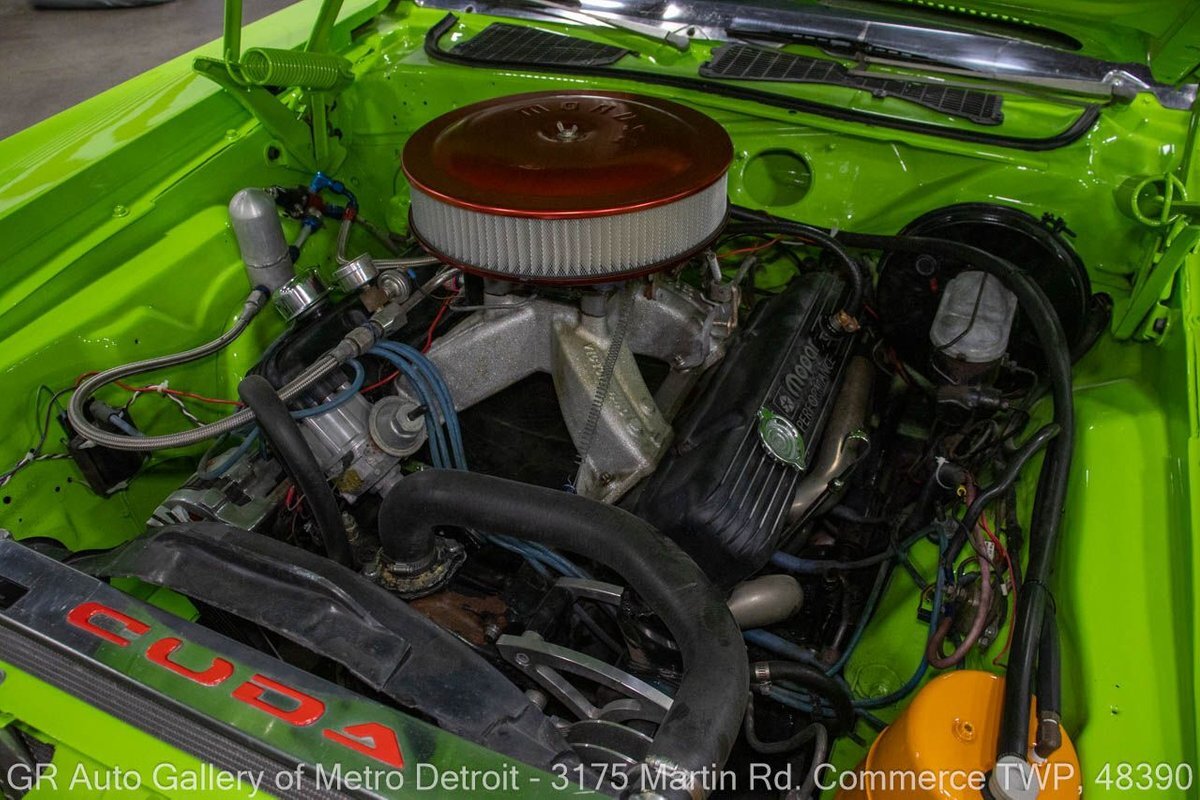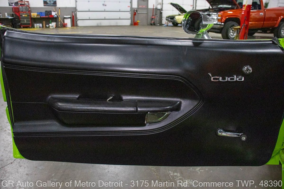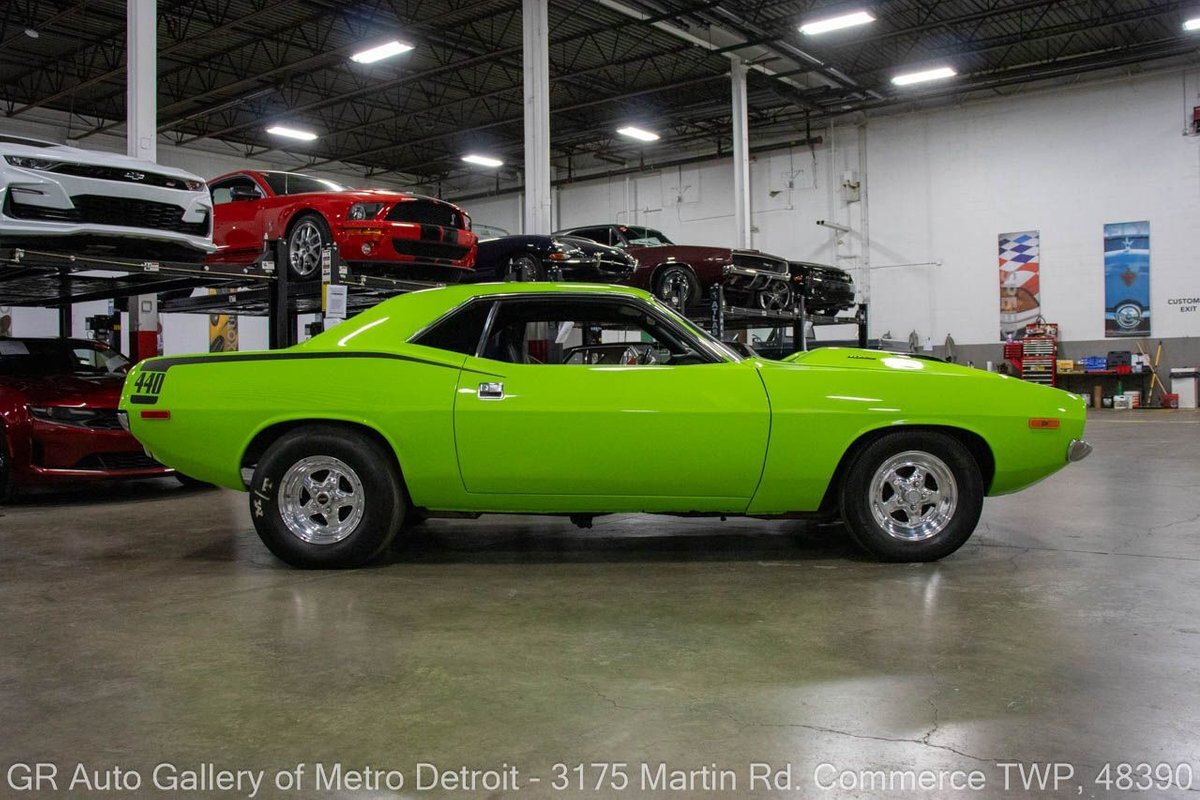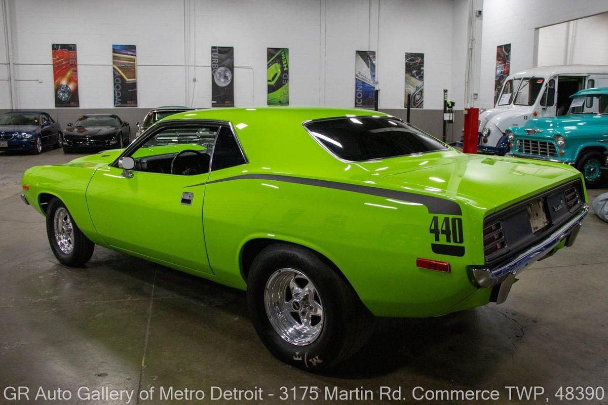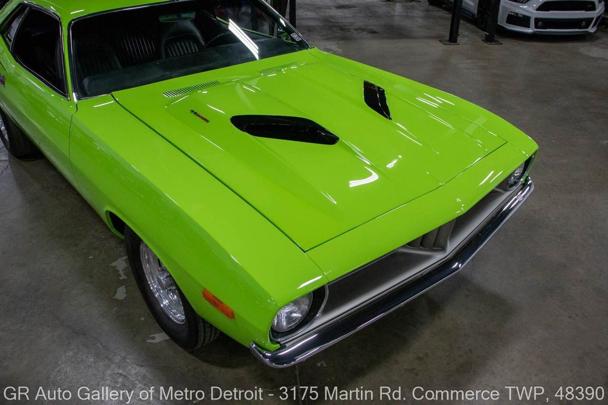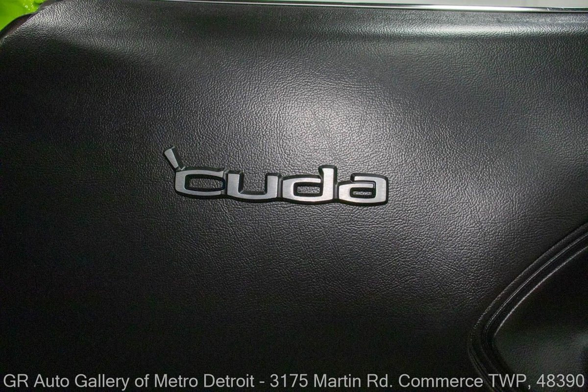 GR Auto Gallery is pleased to present this fully restored 1972 Plymouth Cuda for your consideration. With a powerful 440 cubic inch V8 engine producing 600 horsepower, paired with a 727 automatic transmission and a geared 8 3/4 posi rear end 10 over, this Cuda is a true beast on the road. The bright green exterior is complemented by a sleek black interior, showcasing the attention to detail in the rebuild completed 7 years ago. With only 5,000 miles since restoration, this Cuda is packed with features such as new front tires, Kenwood aftermarket stereo, rebuilt transmission, new front grill, new front and rear bumper, 906 headers, Holly carburetor, power front disc brakes, drum rear brakes, custom exhaust with power cut out, spin tech mufflers, air shocks in the rear, new tail panel, fresh paint in 2023, stock hood raised 4 inches and more. Drive this one out of our showroom or have us assist with shipping it to you anywhere in the United States! Don't hesitate to call us with any questions or for more information.