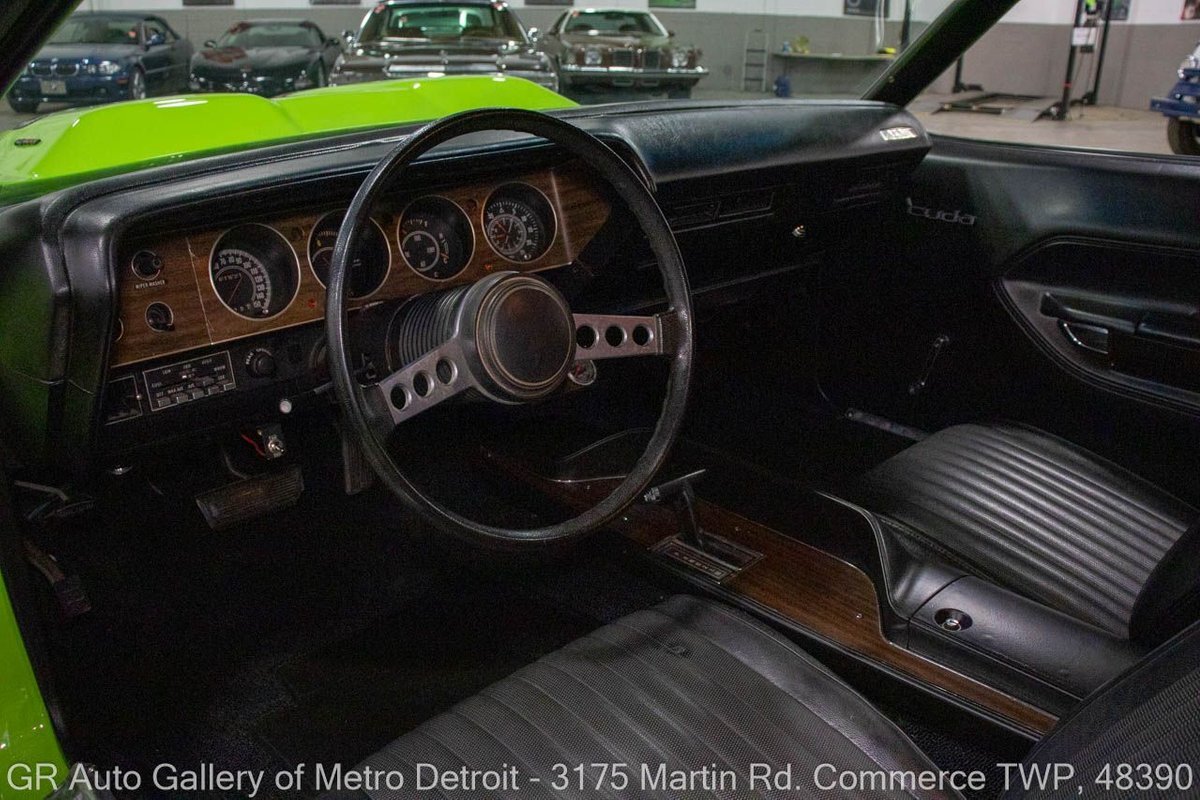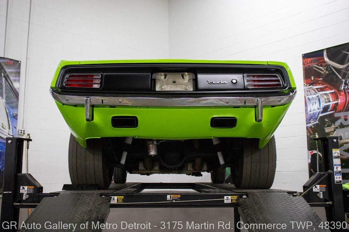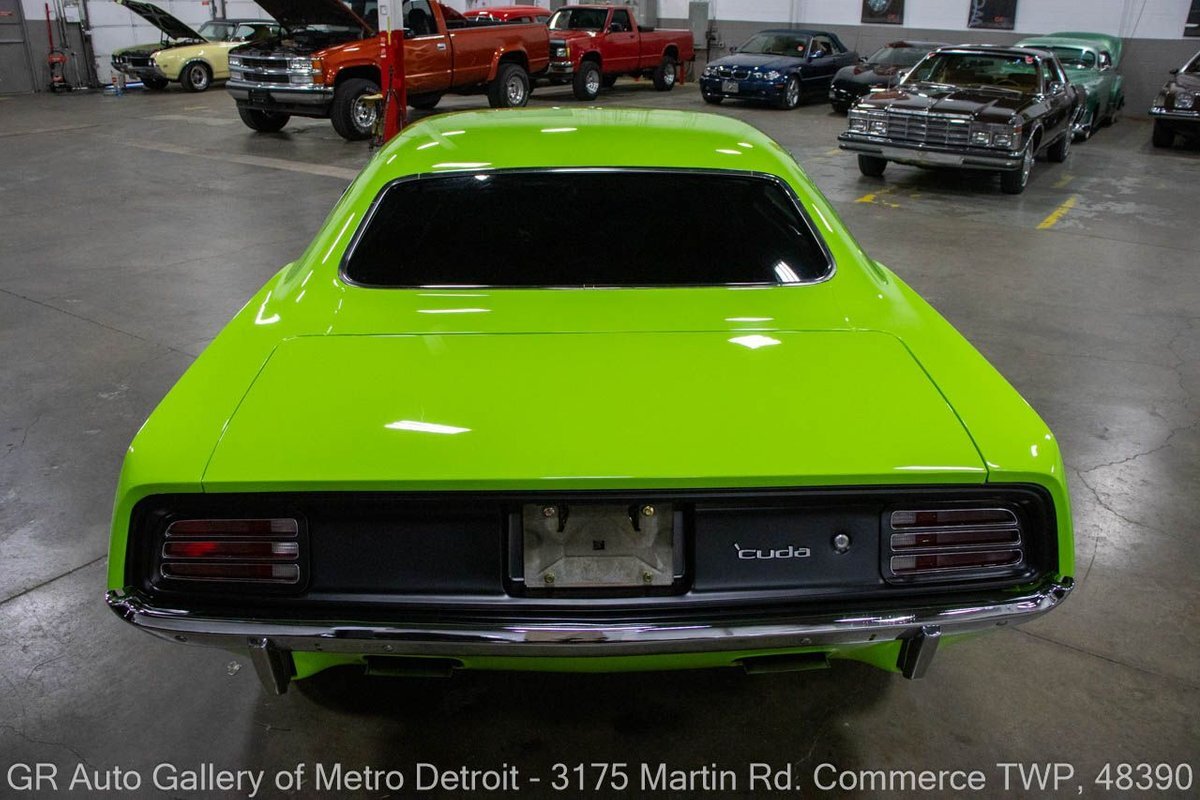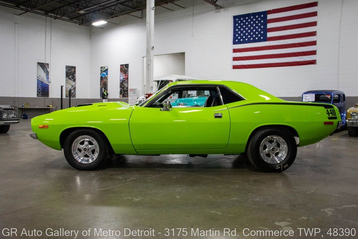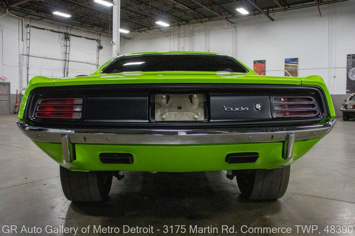 GR Auto Gallery is pleased to present this fully restored 1972 Plymouth Cuda for your consideration. With a powerful 440 cubic inch V8 engine producing 600 horsepower, paired with a 727 automatic transmission and a geared 8 3/4 posi rear end 10 over, this Cuda is a true beast on the road. The bright green exterior is complemented by a sleek black interior, showcasing the attention to detail in the rebuild completed 7 years ago. With only 5,000 miles since restoration, this Cuda is packed with features such as new front tires, Kenwood aftermarket stereo, rebuilt transmission, new front grill, new front and rear bumper, 906 headers, Holly carburetor, power front disc brakes, drum rear brakes, custom exhaust with power cut out, spin tech mufflers, air shocks in the rear, new tail panel, fresh paint in 2023, stock hood raised 4 inches and more. Drive this one out of our showroom or have us assist with shipping it to you anywhere in the United States! Don't hesitate to call us with any questions or for more information.