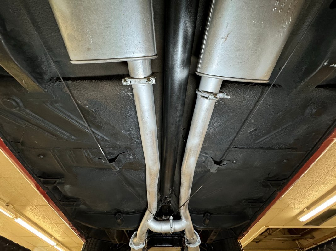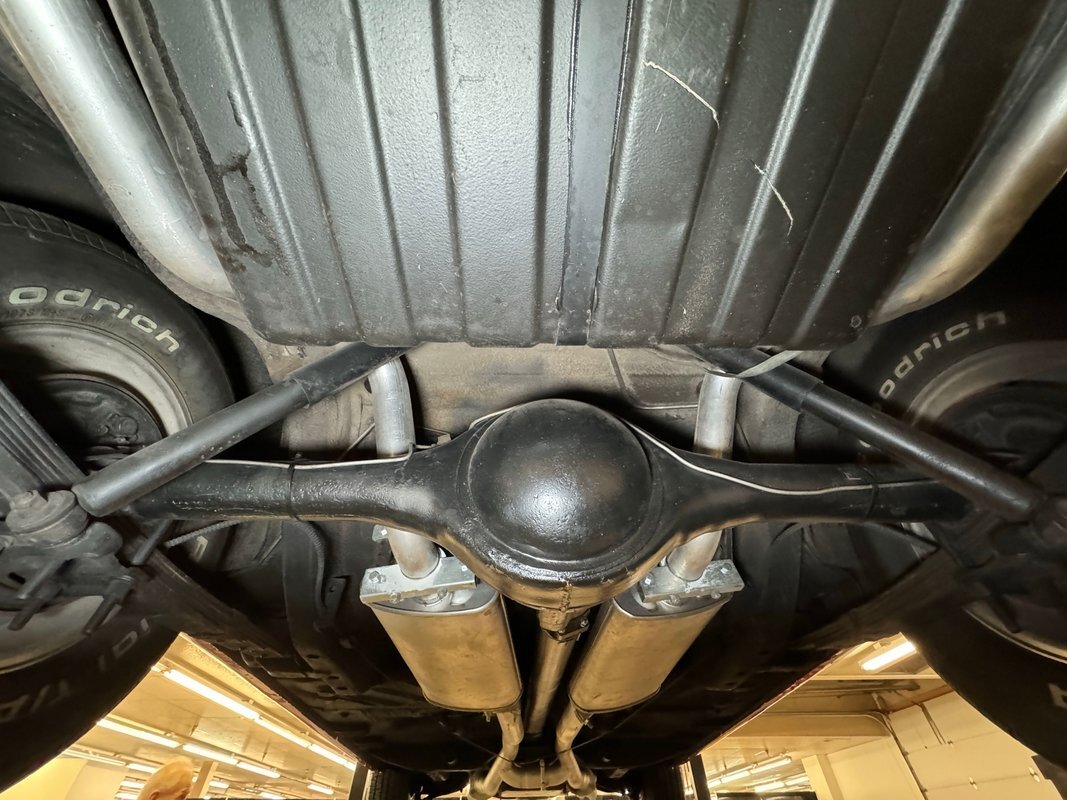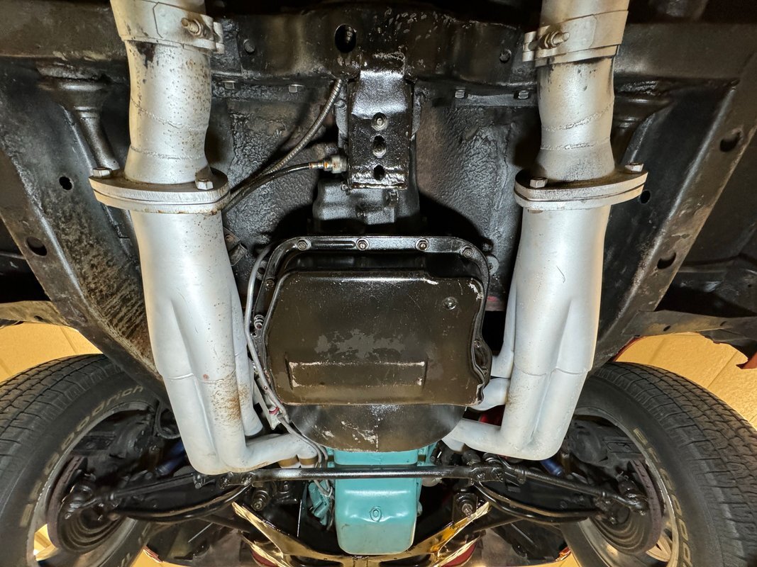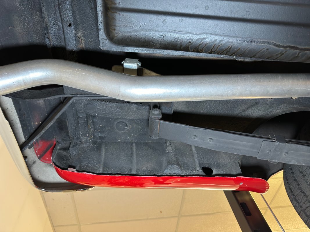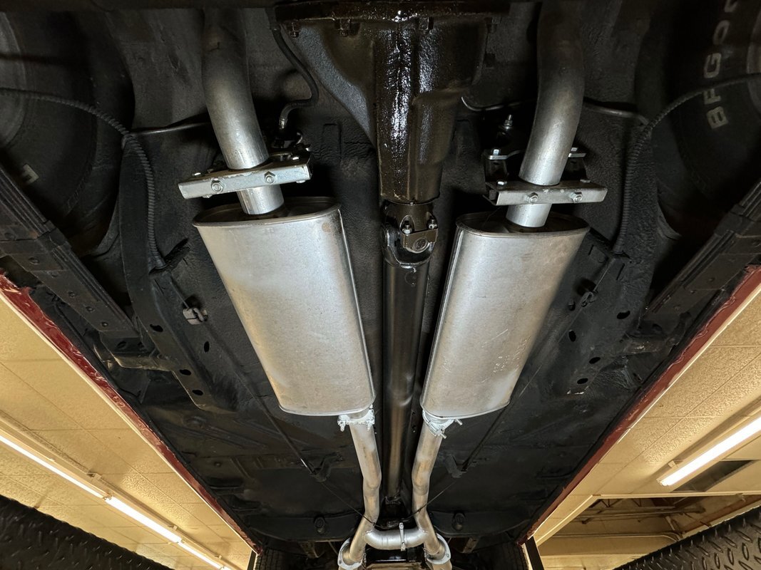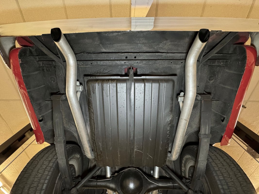 Spectacularly clean underneath with barely any surface rust and just a touch of residual fluid on the transmission pan. Beyond that, clean, flat black paint and solid dual exhaust through stock style mufflers and exiting out the back with downward facing pipes. New tie rods and shocks accompany the torsion bar suspension in front and leaf springs in the rear.