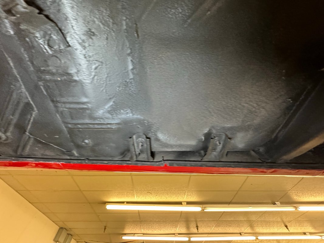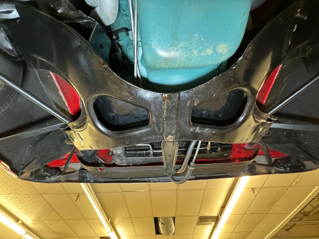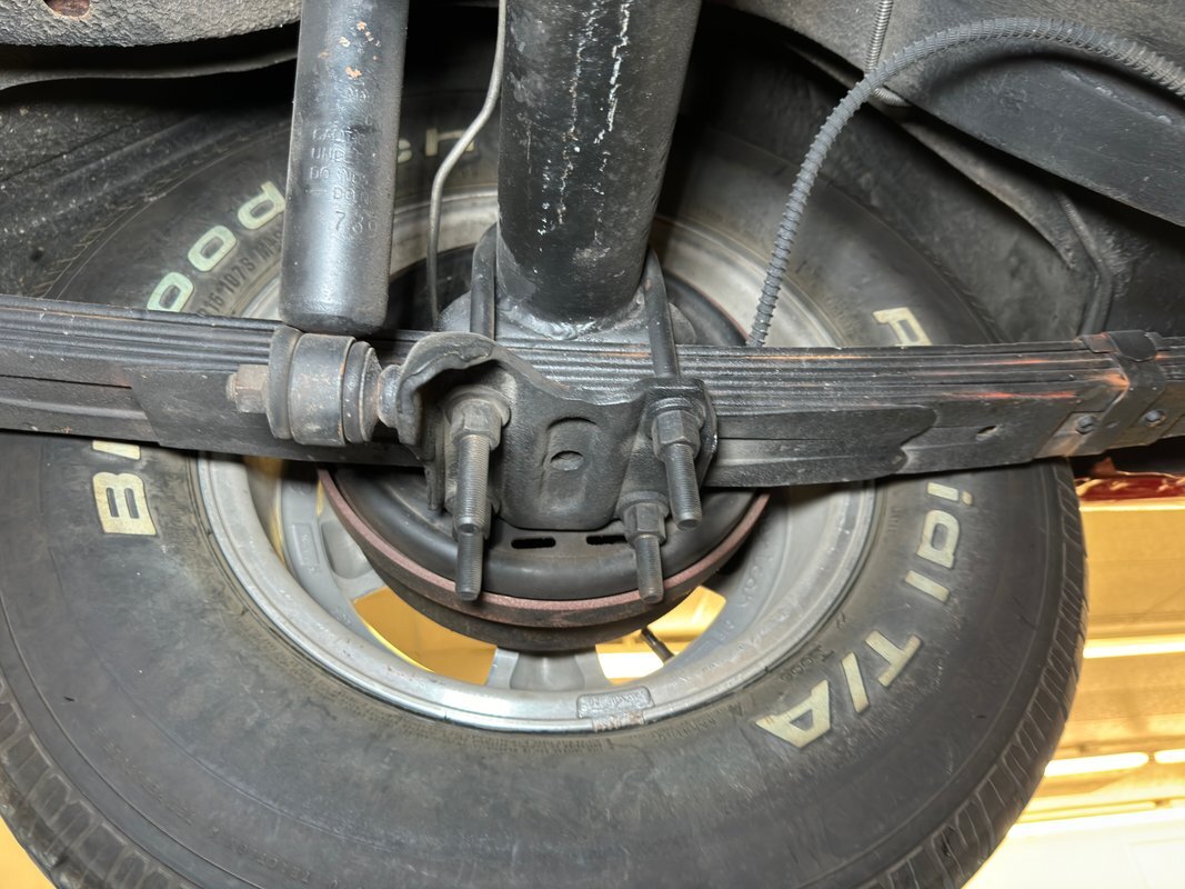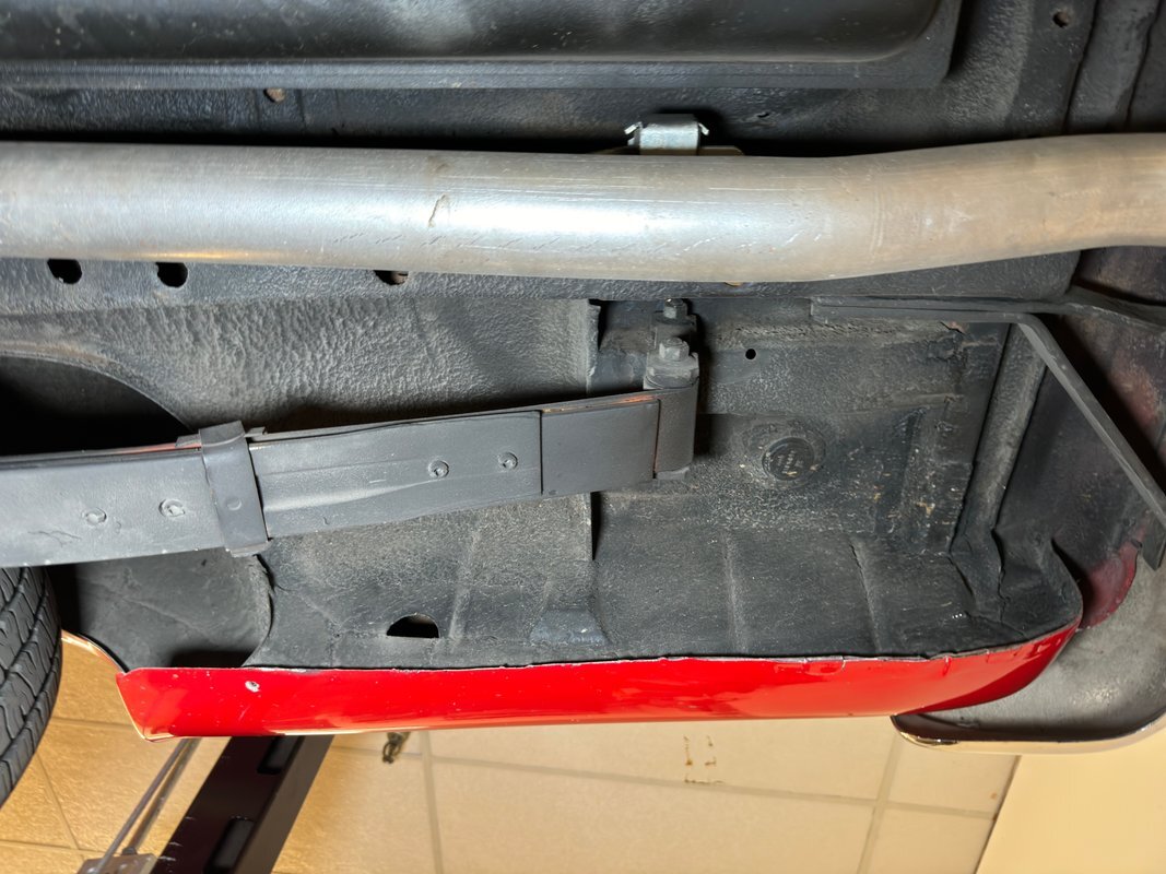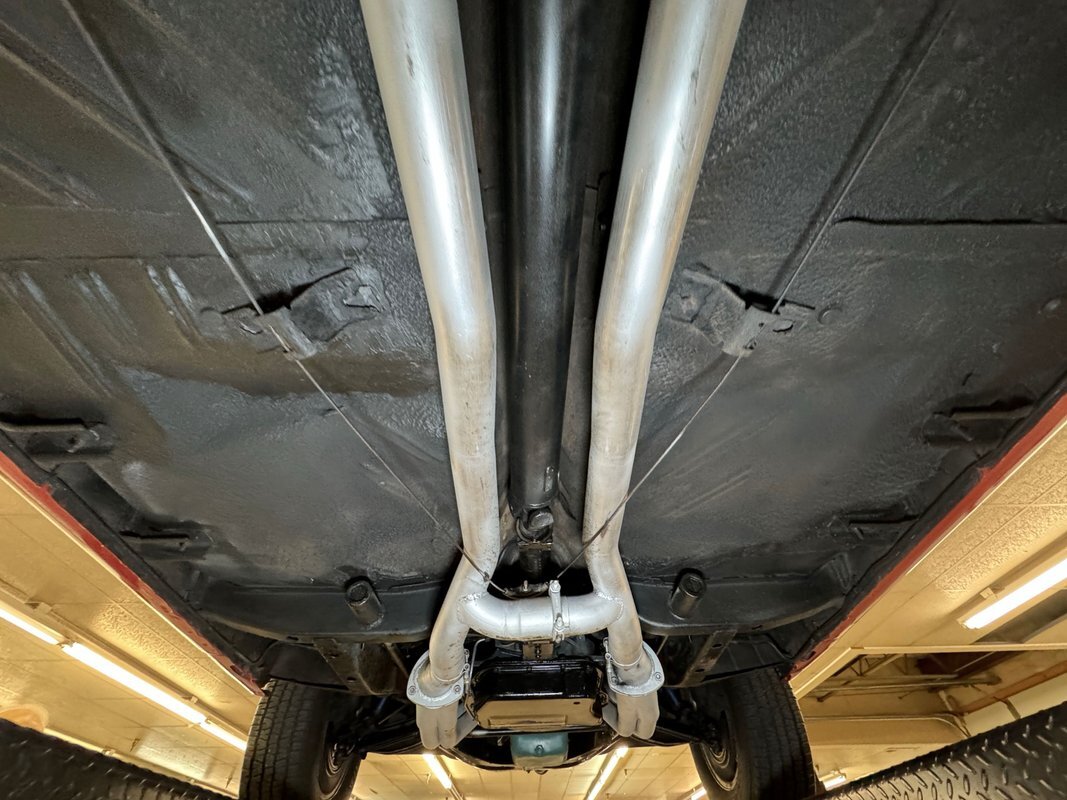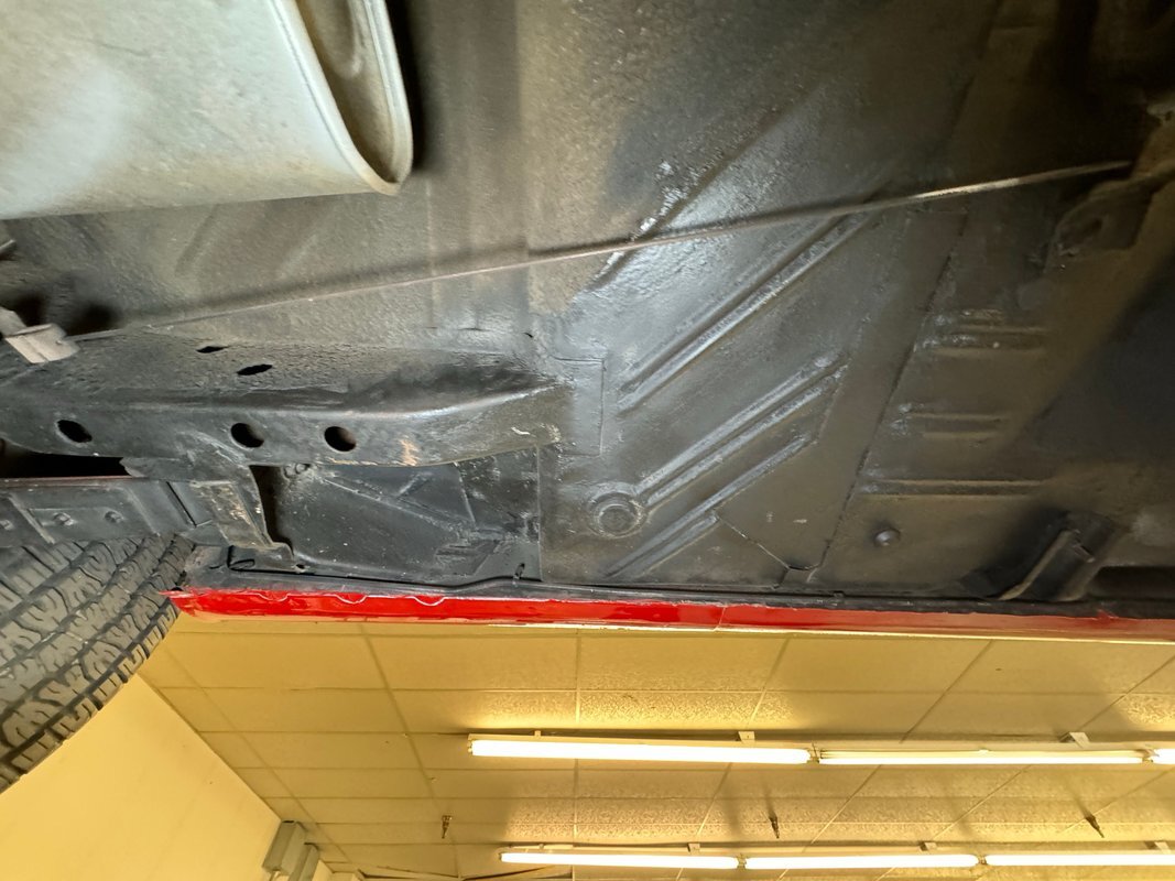 Spectacularly clean underneath with barely any surface rust and just a touch of residual fluid on the transmission pan. Beyond that, clean, flat black paint and solid dual exhaust through stock style mufflers and exiting out the back with downward facing pipes. New tie rods and shocks accompany the torsion bar suspension in front and leaf springs in the rear.
