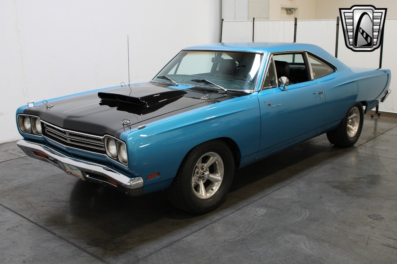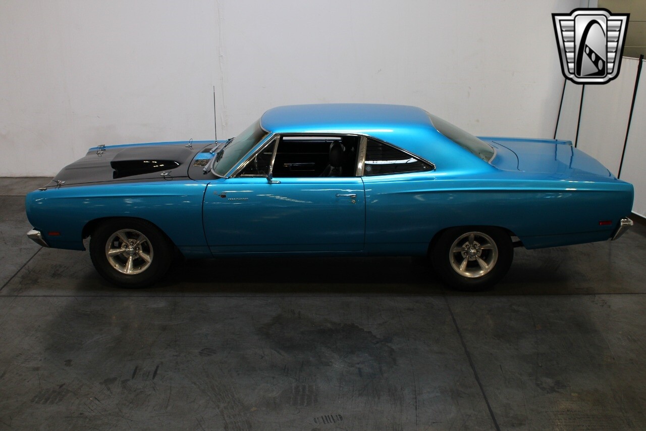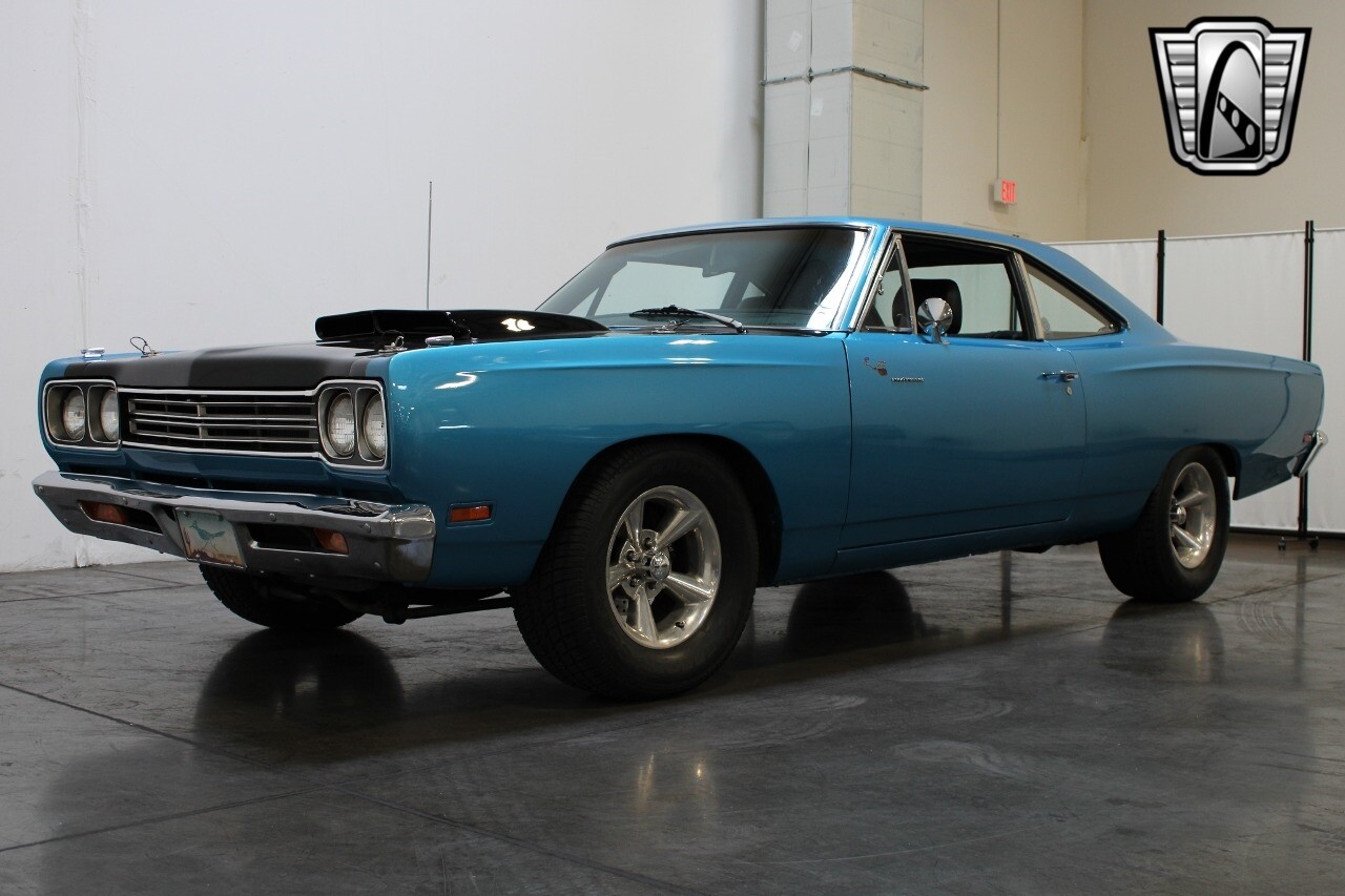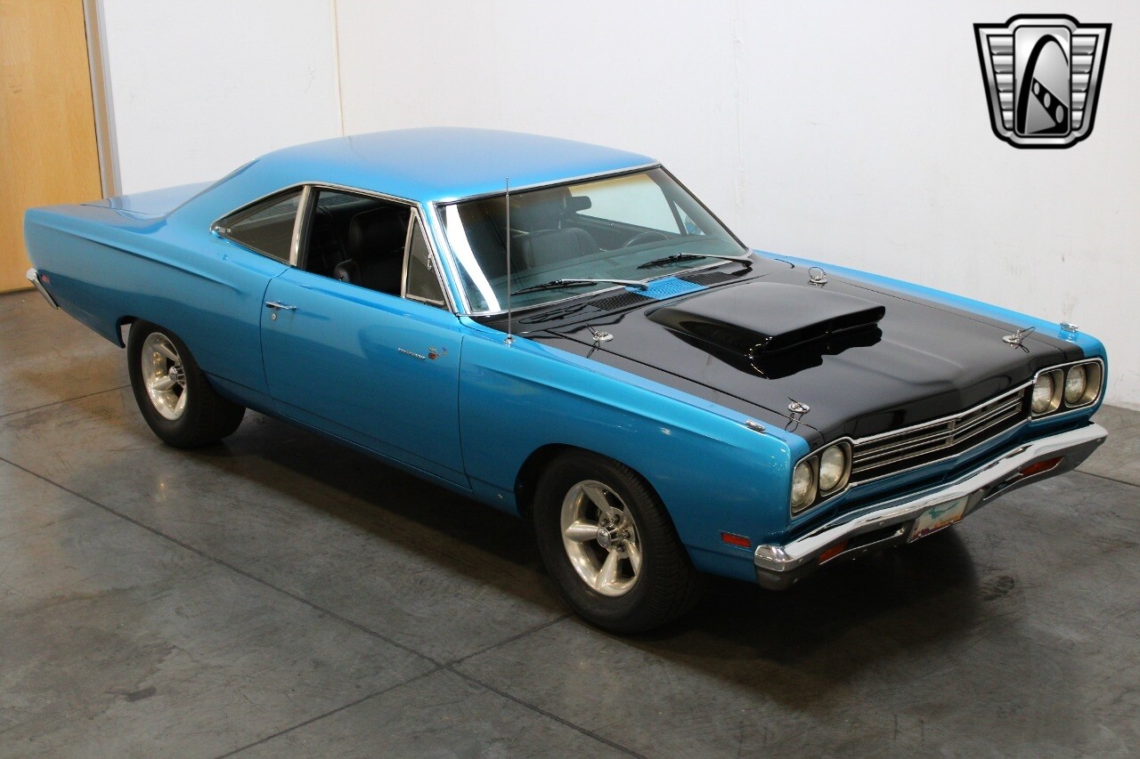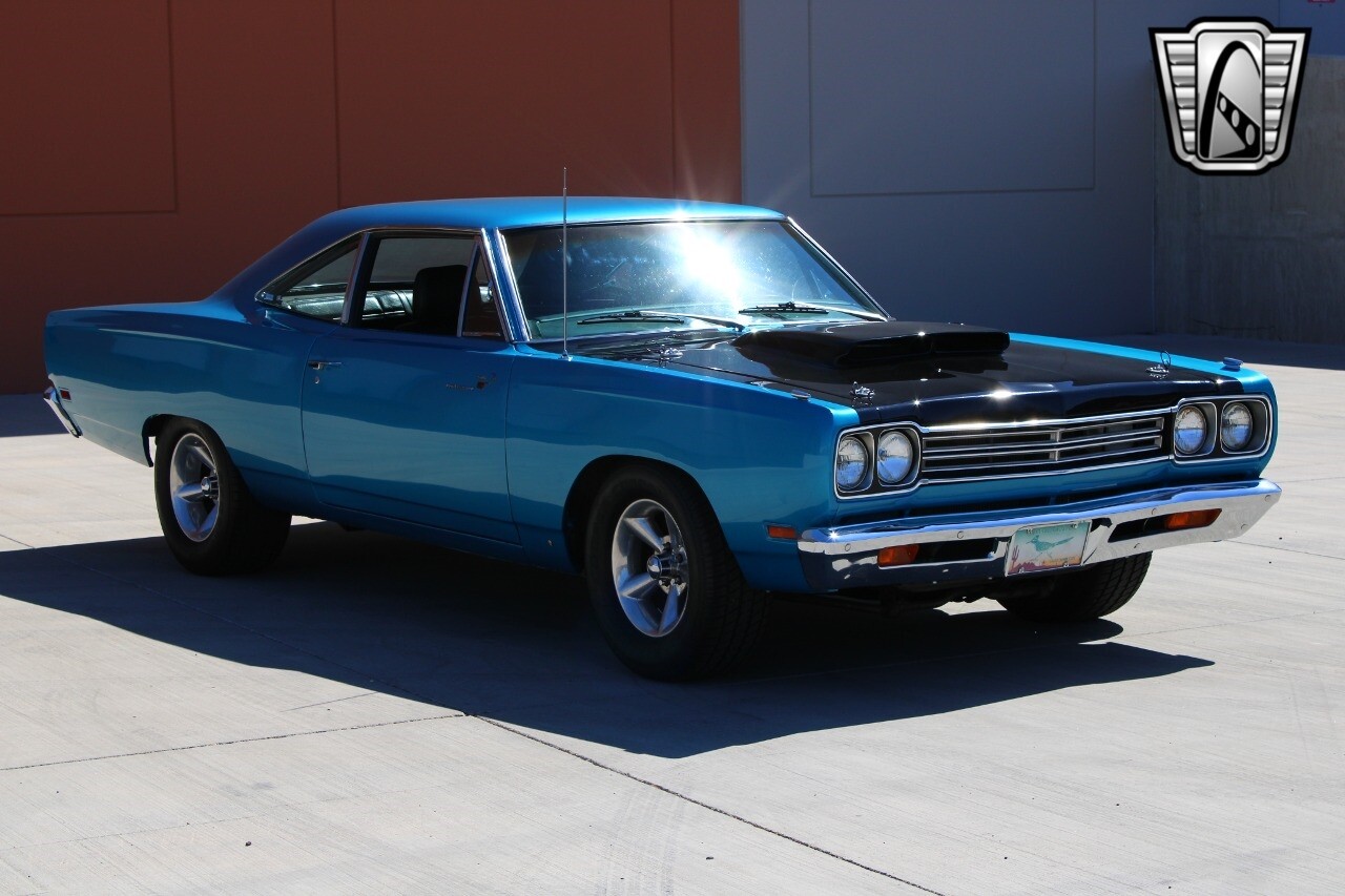 Step into the world of classic American muscle with this striking 1969 Plymouth Road Runner. Owned for the last 12 years by the same owner, the Roadrunner is in very good condition per the seller and is fun to drive. The Roadrunner was purchased with a 440 CI engine ( stamped HE block ) and a 4 speed. 3.91 sure grip rear end. Engine components include Filtercharger air cleaner, Edelbrock 750cfm carb. Edelbrock RPM 440 intake, 440 Source aluminum head, Comp cam, 5.13 cam. Mopar electronic ignition. Flex-a-Lite radiator. Dual electric radiator cooling fans. Hooker Comp Headers. 2 1/2" exhaust system. Flowmaster mufflers. VDO 8000rpm tach with shift light, Upgrades to suspension include: 1 1/8" front sway bar, upsized torsion bars, PST poly graphite front end rebuild. KYB gas-a-just shocks. Mopar heavy duty leaf springs. Wilwood ( 4 Wheel ) disc brakes, 8" power brake booster, dual reservoir master cylinder. Pistol Grip shifter, This Roadrunner has a Year One six-pac fiberglass hood. Front seats are leather and fully adjustable. All glass/windshield are in good condition. The car's body, chrome, and grill show general wear!