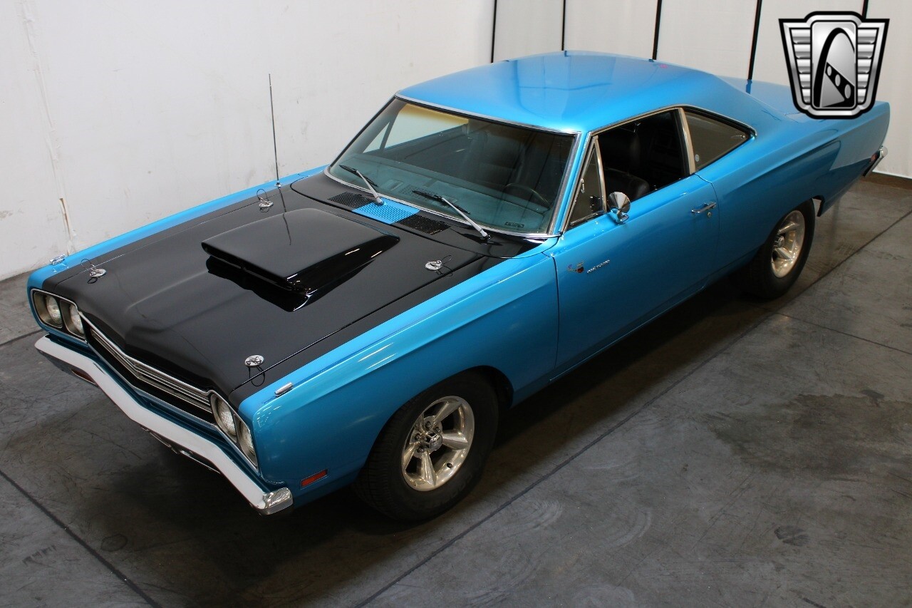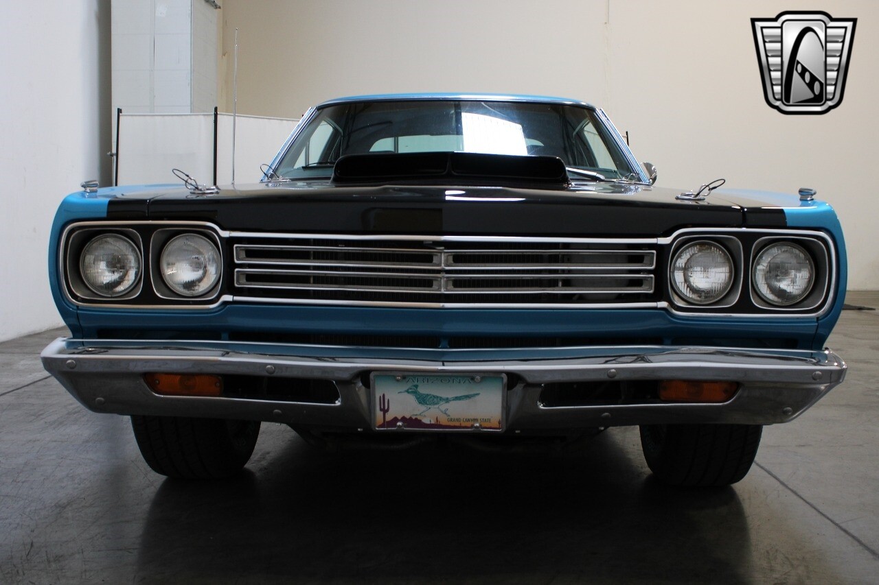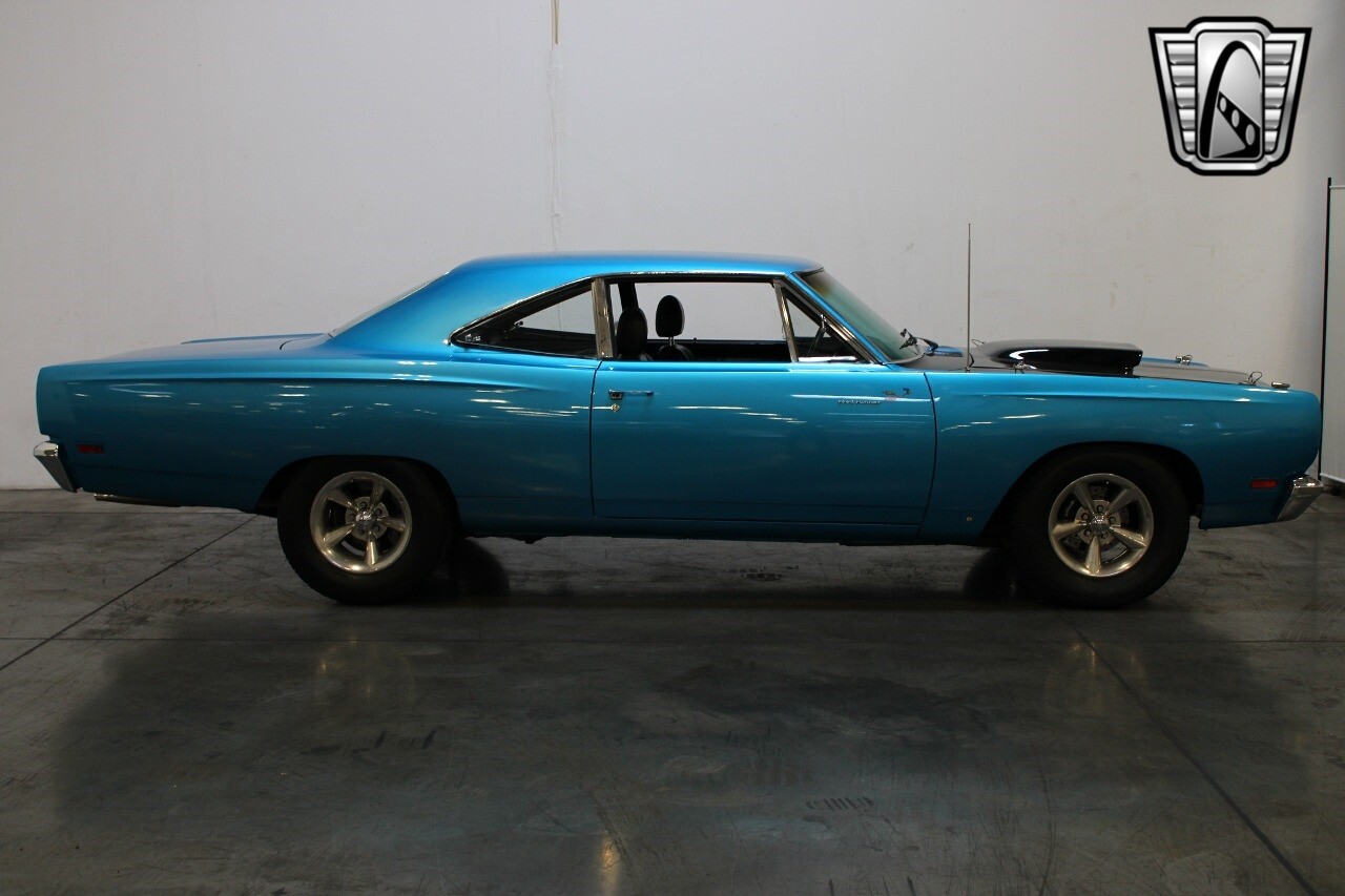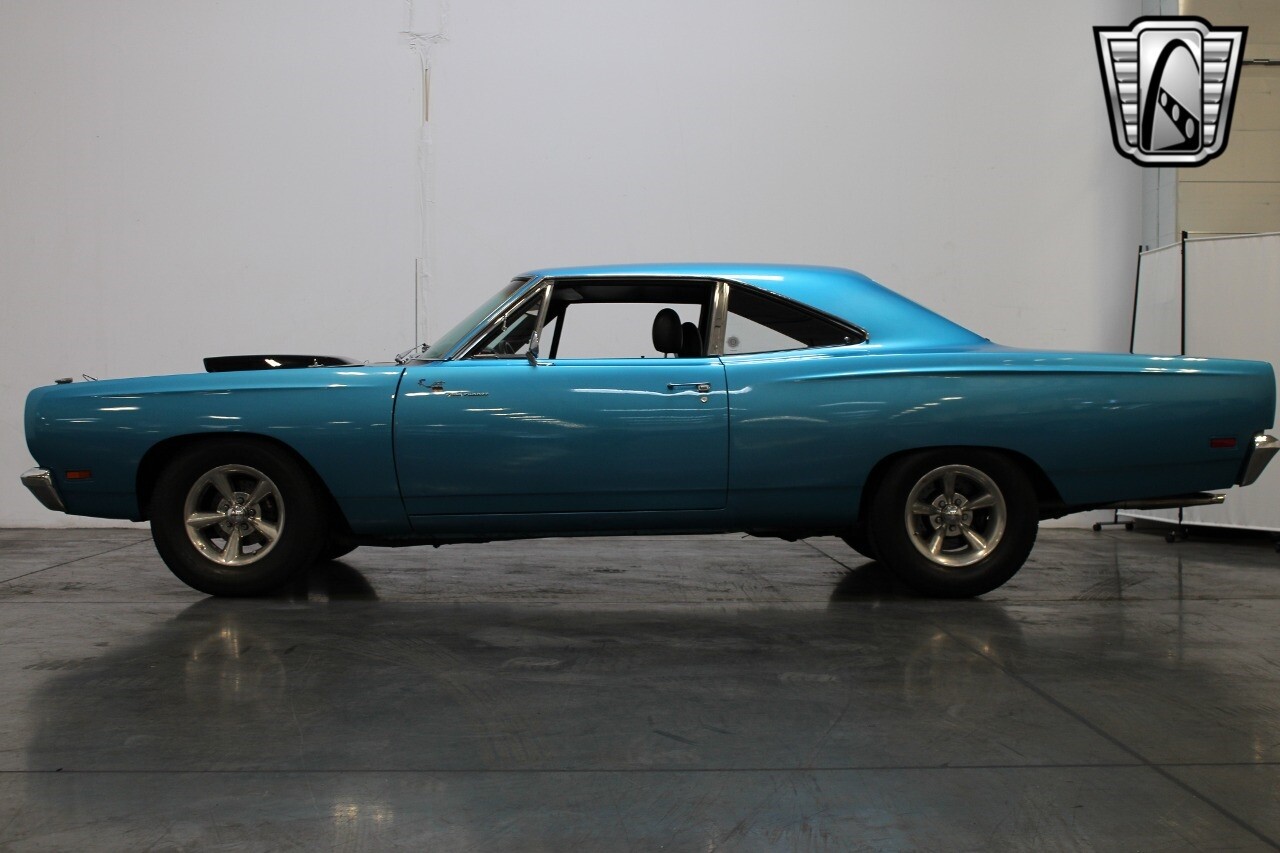 Step into the world of classic American muscle with this striking 1969 Plymouth Road Runner. Owned for the last 12 years by the same owner, the Roadrunner is in very good condition per the seller and is fun to drive. The Roadrunner was purchased with a 440 CI engine ( stamped HE block ) and a 4 speed. 3.91 sure grip rear end. Engine components include Filtercharger air cleaner, Edelbrock 750cfm carb. Edelbrock RPM 440 intake, 440 Source aluminum head, Comp cam, 5.13 cam. Mopar electronic ignition. Flex-a-Lite radiator. Dual electric radiator cooling fans. Hooker Comp Headers. 2 1/2" exhaust system. Flowmaster mufflers. VDO 8000rpm tach with shift light, Upgrades to suspension include: 1 1/8" front sway bar, upsized torsion bars, PST poly graphite front end rebuild. KYB gas-a-just shocks. Mopar heavy duty leaf springs. Wilwood ( 4 Wheel ) disc brakes, 8" power brake booster, dual reservoir master cylinder. Pistol Grip shifter, This Roadrunner has a Year One six-pac fiberglass hood. Front seats are leather and fully adjustable. All glass/windshield are in good condition. The car's body, chrome, and grill show general wear!