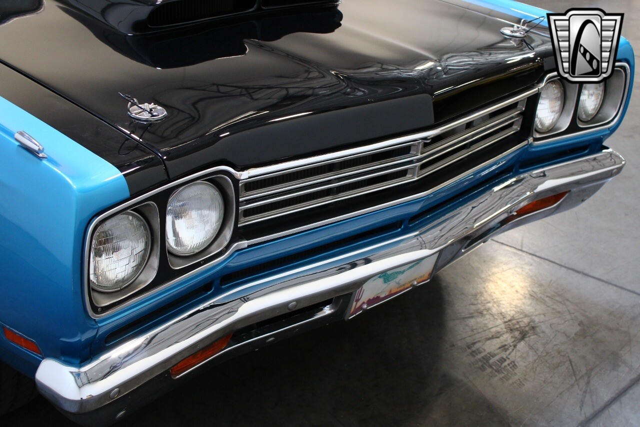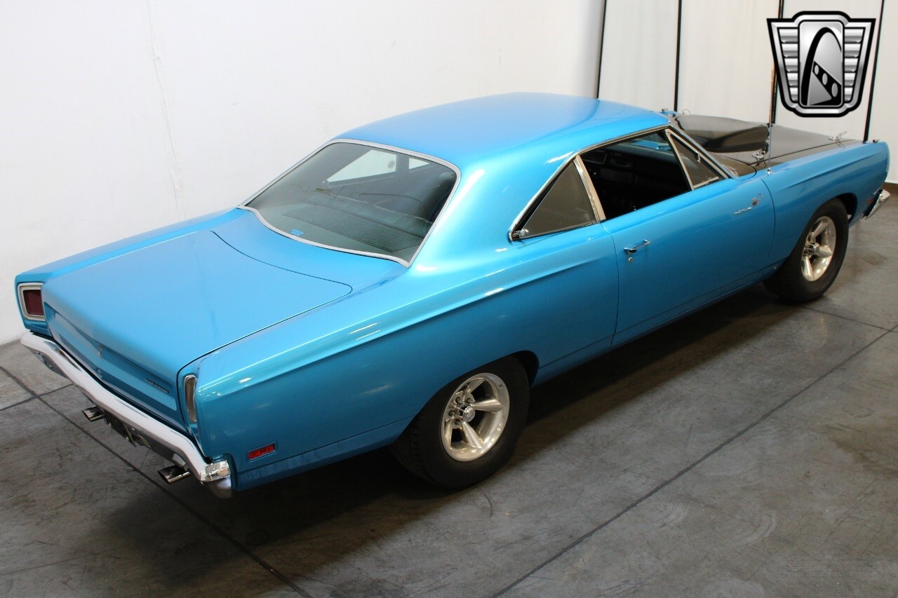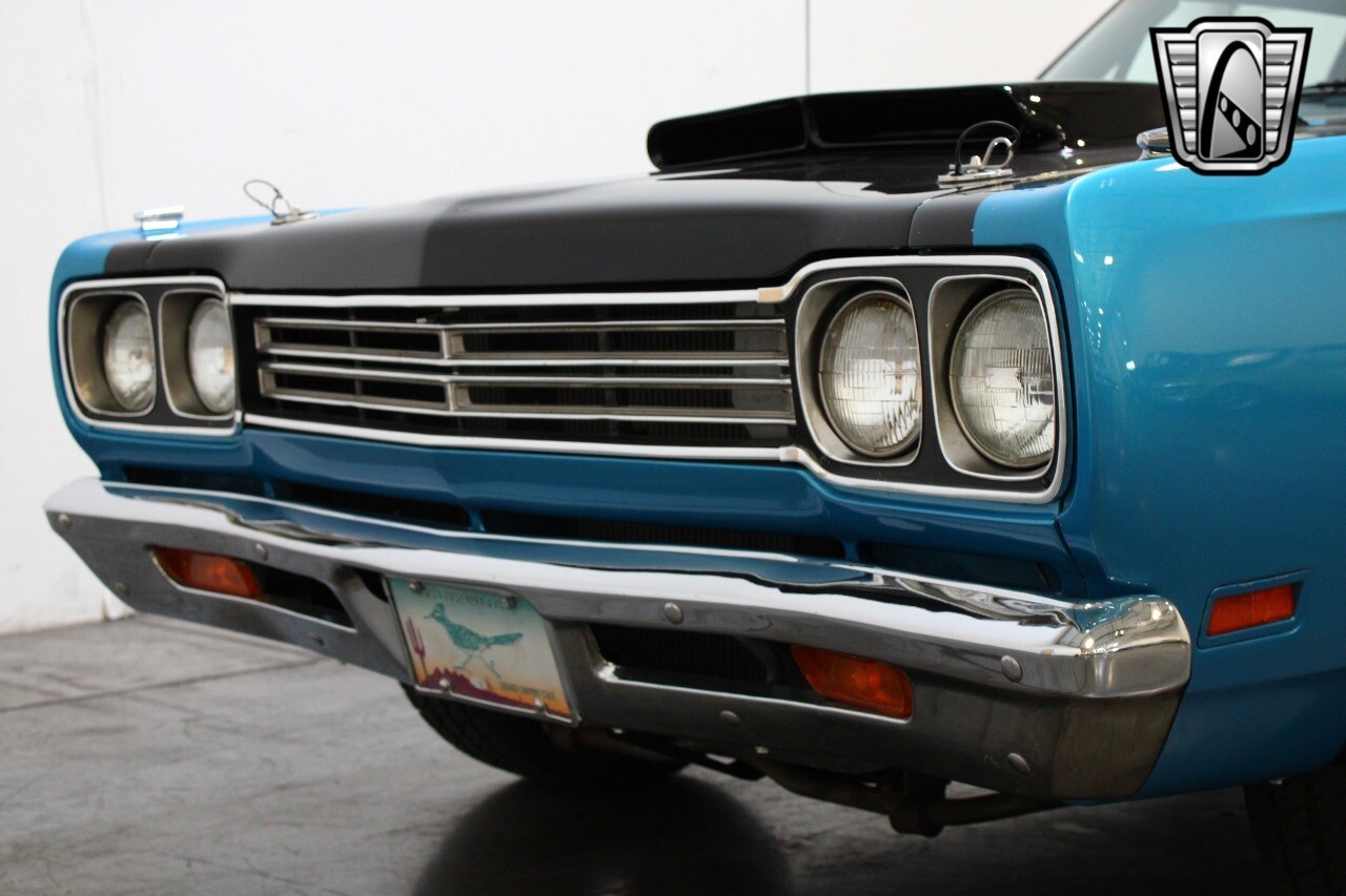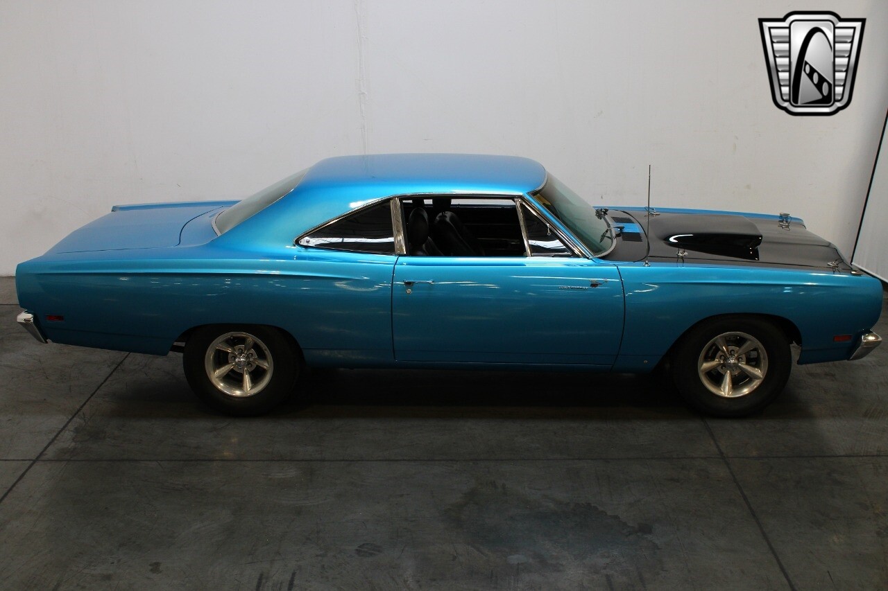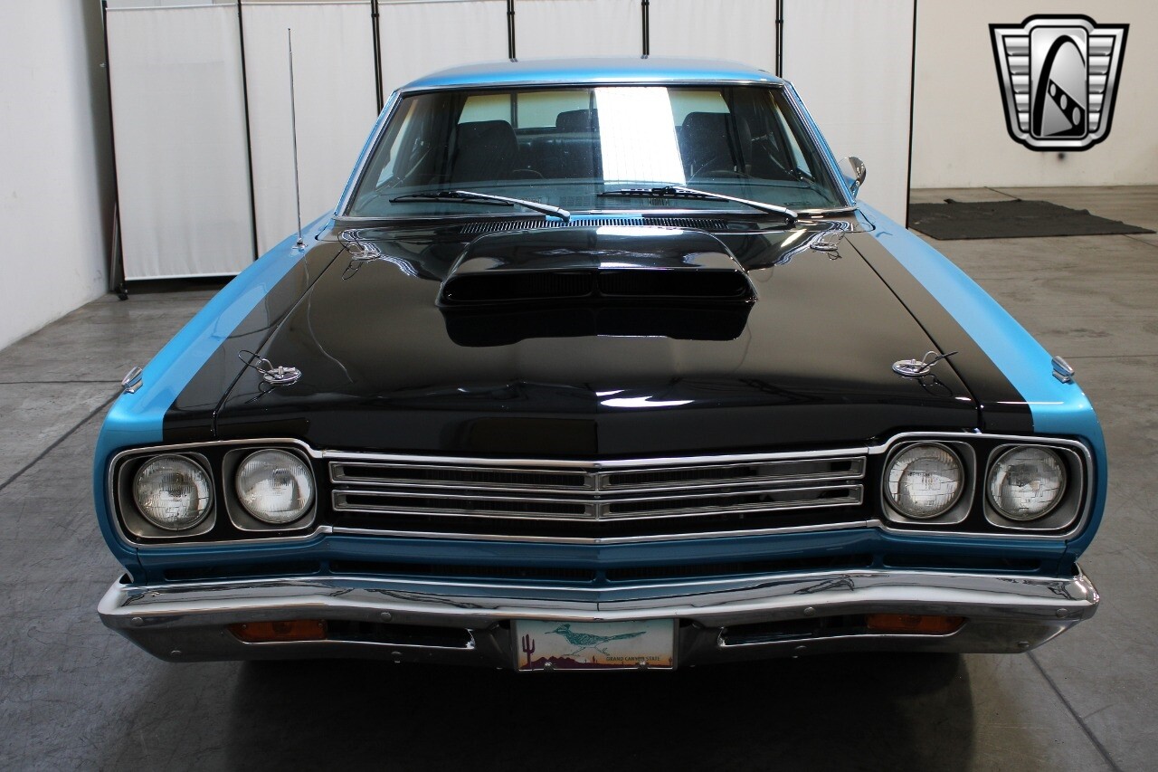 Step into the world of classic American muscle with this striking 1969 Plymouth Road Runner. Owned for the last 12 years by the same owner, the Roadrunner is in very good condition per the seller and is fun to drive. The Roadrunner was purchased with a 440 CI engine ( stamped HE block ) and a 4 speed. 3.91 sure grip rear end. Engine components include Filtercharger air cleaner, Edelbrock 750cfm carb. Edelbrock RPM 440 intake, 440 Source aluminum head, Comp cam, 5.13 cam. Mopar electronic ignition. Flex-a-Lite radiator. Dual electric radiator cooling fans. Hooker Comp Headers. 2 1/2" exhaust system. Flowmaster mufflers. VDO 8000rpm tach with shift light, Upgrades to suspension include: 1 1/8" front sway bar, upsized torsion bars, PST poly graphite front end rebuild. KYB gas-a-just shocks. Mopar heavy duty leaf springs. Wilwood ( 4 Wheel ) disc brakes, 8" power brake booster, dual reservoir master cylinder. Pistol Grip shifter, This Roadrunner has a Year One six-pac fiberglass hood. Front seats are leather and fully adjustable. All glass/windshield are in good condition. The car's body, chrome, and grill show general wear!