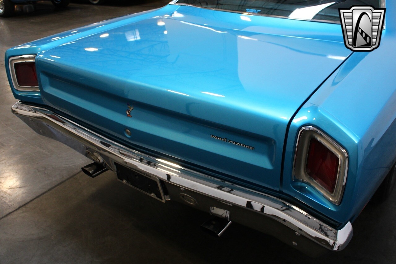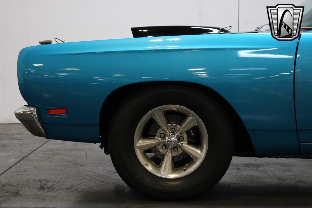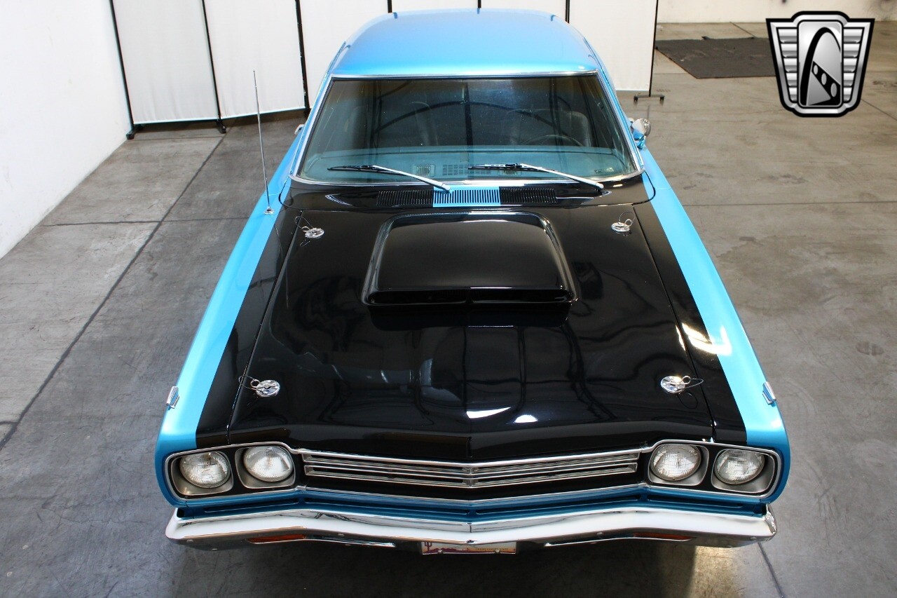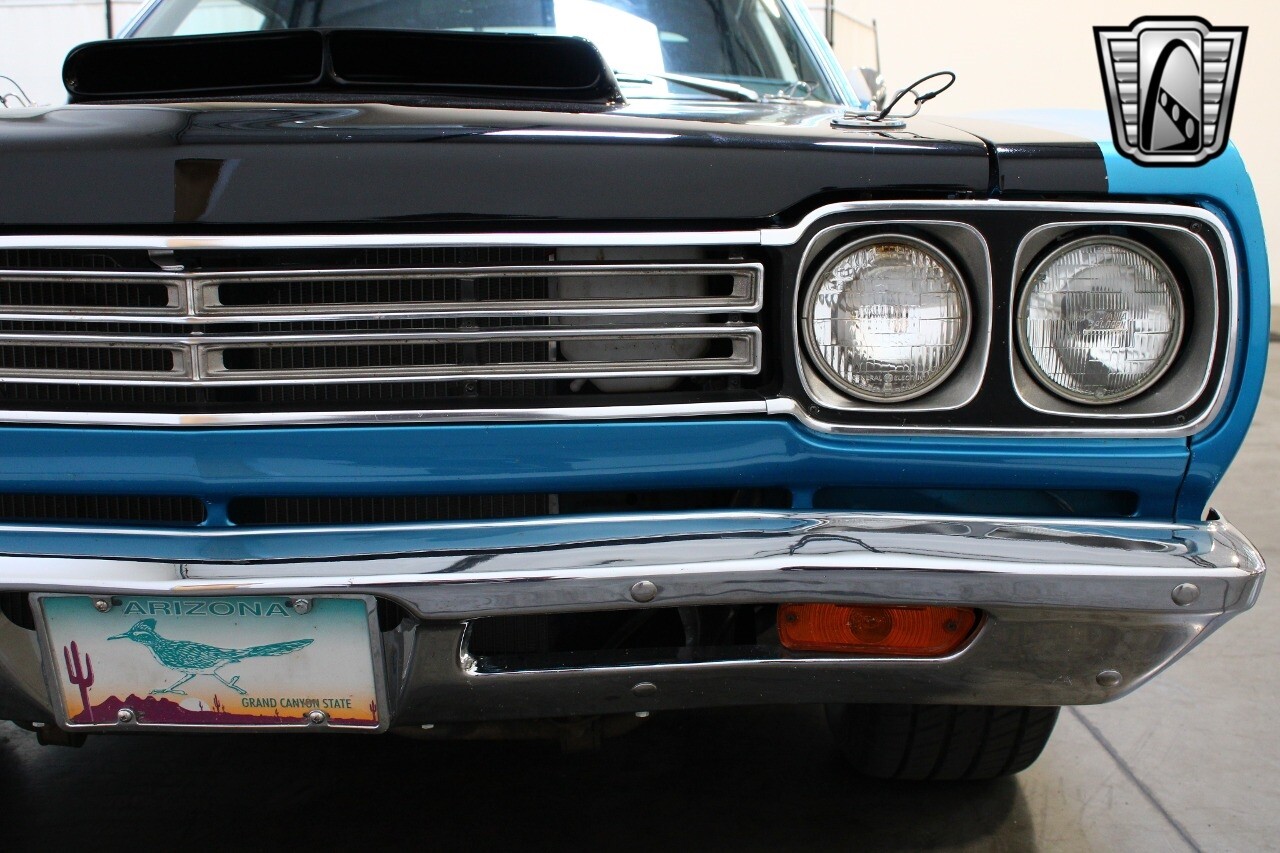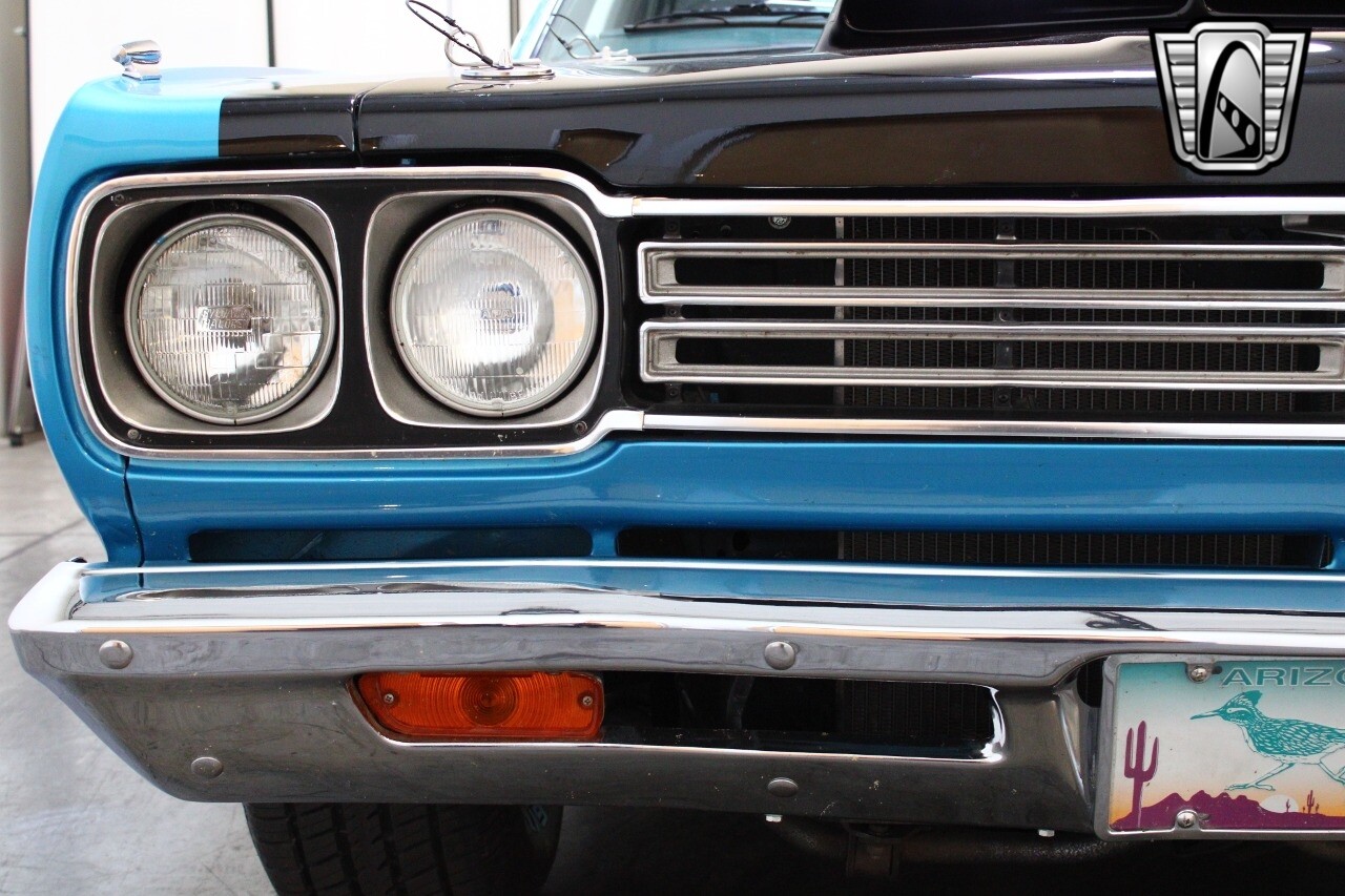 Step into the world of classic American muscle with this striking 1969 Plymouth Road Runner. Owned for the last 12 years by the same owner, the Roadrunner is in very good condition per the seller and is fun to drive. The Roadrunner was purchased with a 440 CI engine ( stamped HE block ) and a 4 speed. 3.91 sure grip rear end. Engine components include Filtercharger air cleaner, Edelbrock 750cfm carb. Edelbrock RPM 440 intake, 440 Source aluminum head, Comp cam, 5.13 cam. Mopar electronic ignition. Flex-a-Lite radiator. Dual electric radiator cooling fans. Hooker Comp Headers. 2 1/2" exhaust system. Flowmaster mufflers. VDO 8000rpm tach with shift light, Upgrades to suspension include: 1 1/8" front sway bar, upsized torsion bars, PST poly graphite front end rebuild. KYB gas-a-just shocks. Mopar heavy duty leaf springs. Wilwood ( 4 Wheel ) disc brakes, 8" power brake booster, dual reservoir master cylinder. Pistol Grip shifter, This Roadrunner has a Year One six-pac fiberglass hood. Front seats are leather and fully adjustable. All glass/windshield are in good condition. The car's body, chrome, and grill show general wear!