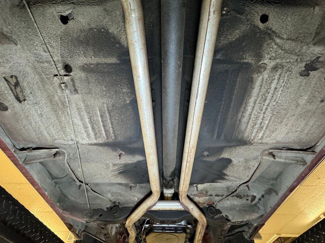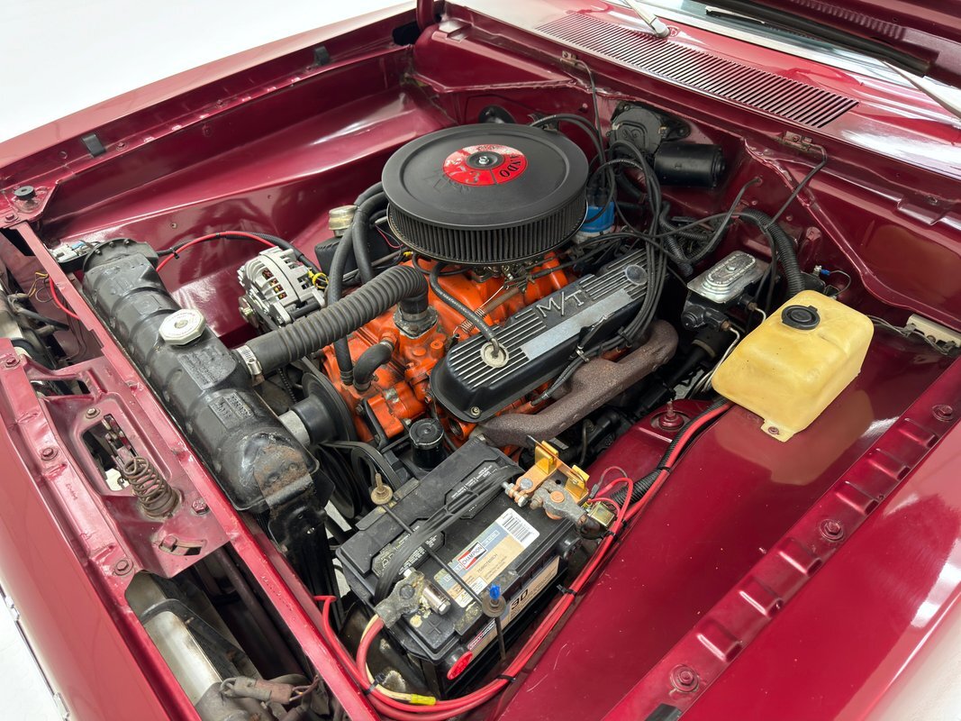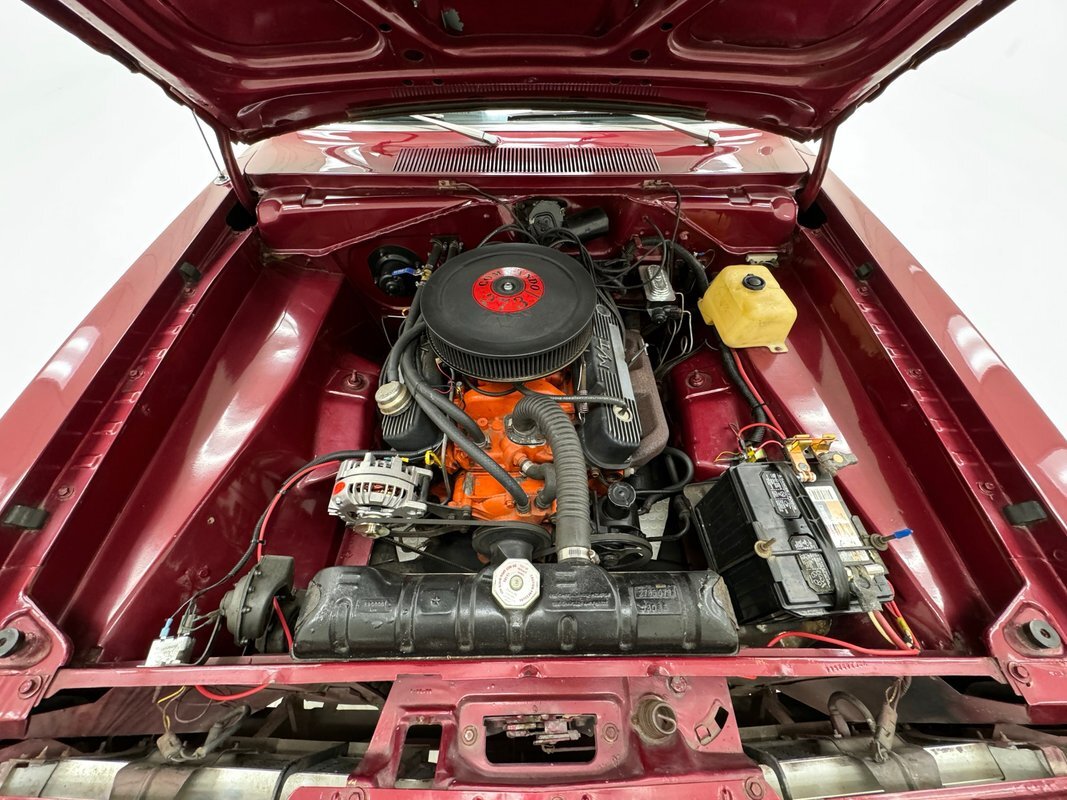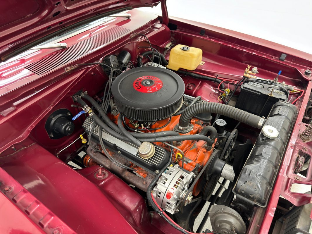Under the hood is a clean driver condition and rebuilt 273ci V8 rated at 235 horsepower. It's fed by a new Edelbrock 4-barrel carburetor and moved to action by an A904 3-speed automatic transmission. Power heads to the 8 3/4" rear and 3.91 gears with Sure-Grip. Drum brakes are at each of the four wheels.