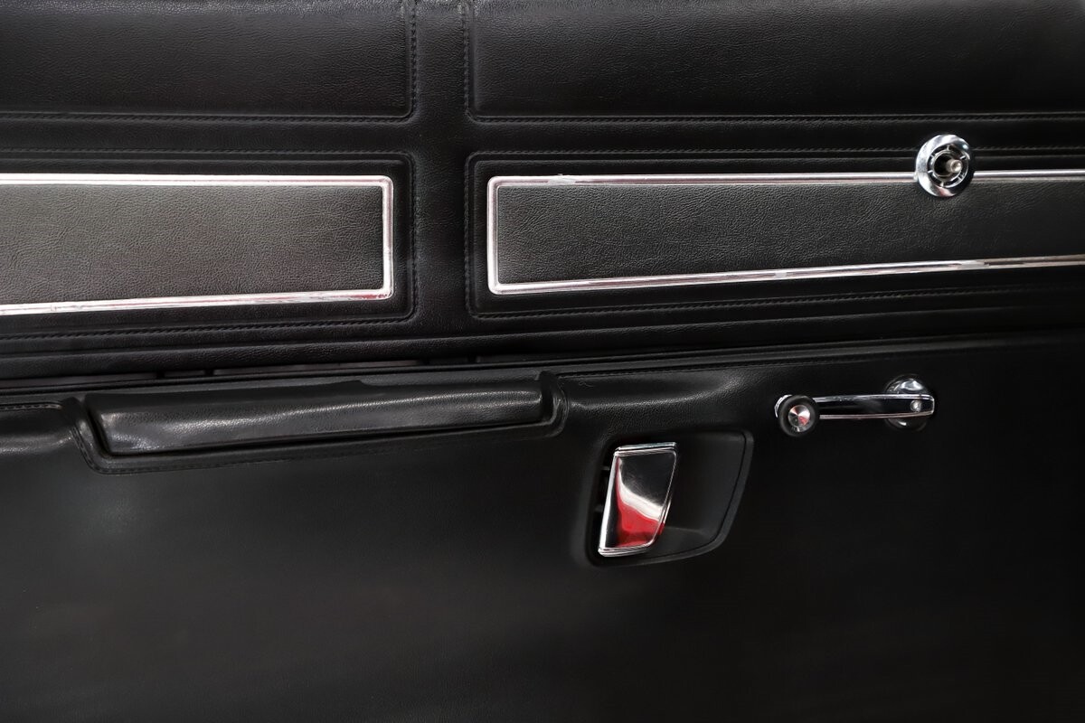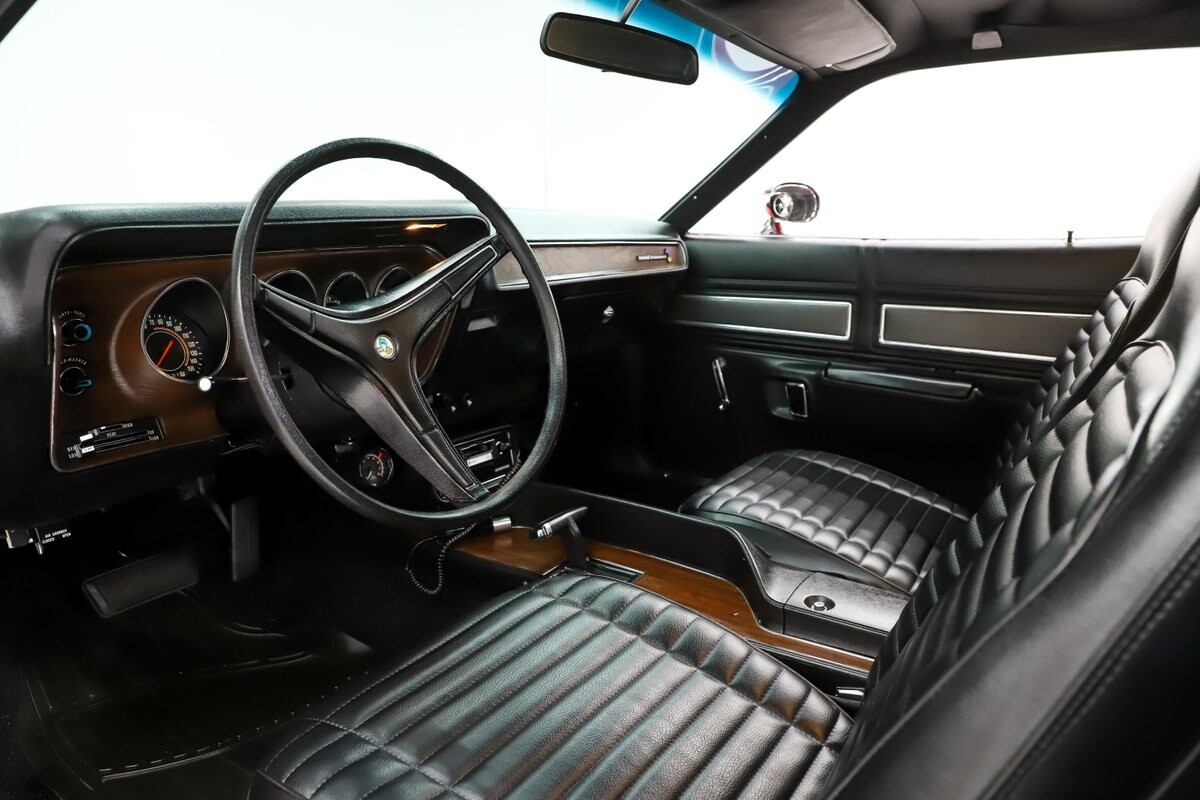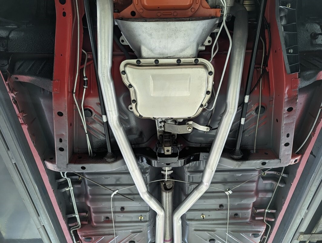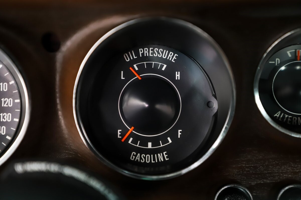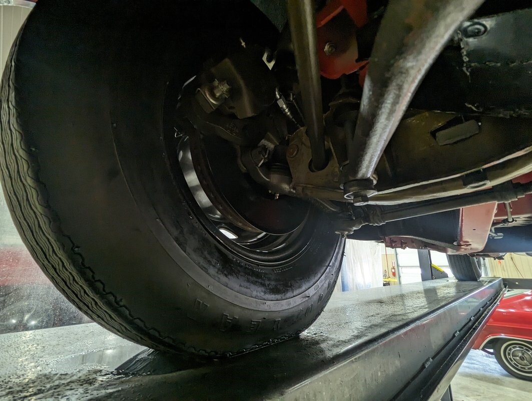 UNDERSIDE: It was flipped on a rotisserie and concourse restored down to assembly line markings. Pristine metal is painted correctly in gray primer with the proper red overspray from the body. Every single item is restored and detailed. Rebuilt suspension and steering. Restored brake system with disc in front. Fuel system was restored. Correct dual exhaust system with optional tips that look like they are off a gun barrel. Looking up at the motor it looks like new. The matching #s are stamped on the pad above the oil pan, casting codes and dates are correct. VIN # matching 727 Torqueflite automatic. Correct 8 3/4 rear end with 3.23 gears.