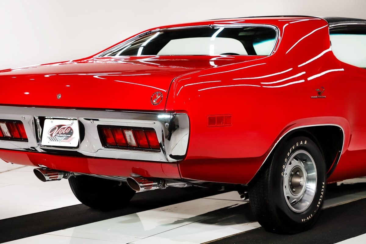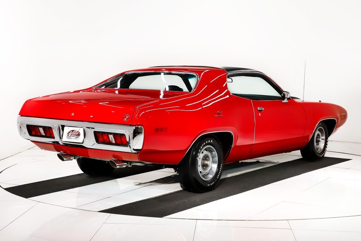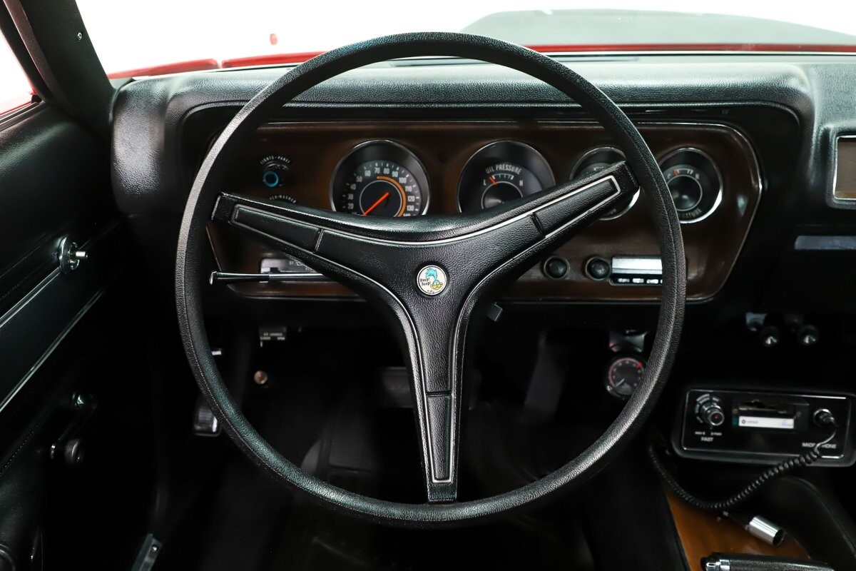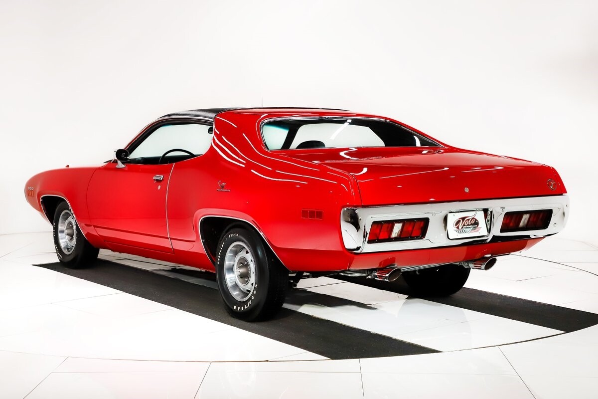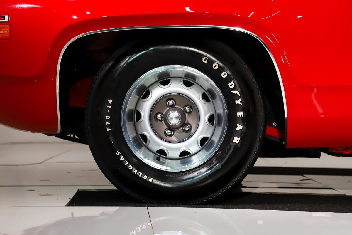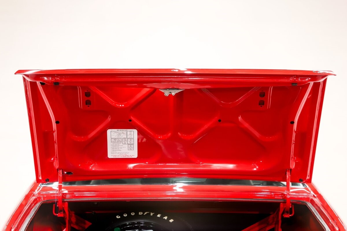 TRUNK COMPARTMENT: You will go straight back to 1971 when you open this trunk. All the metal is spotless and painted a gloss red. It has new weatherstrip, mat, decal etc. Complete jack and spare assembly. It has a matching reproduction polyglass tire on a restored rim, the jack is like new.