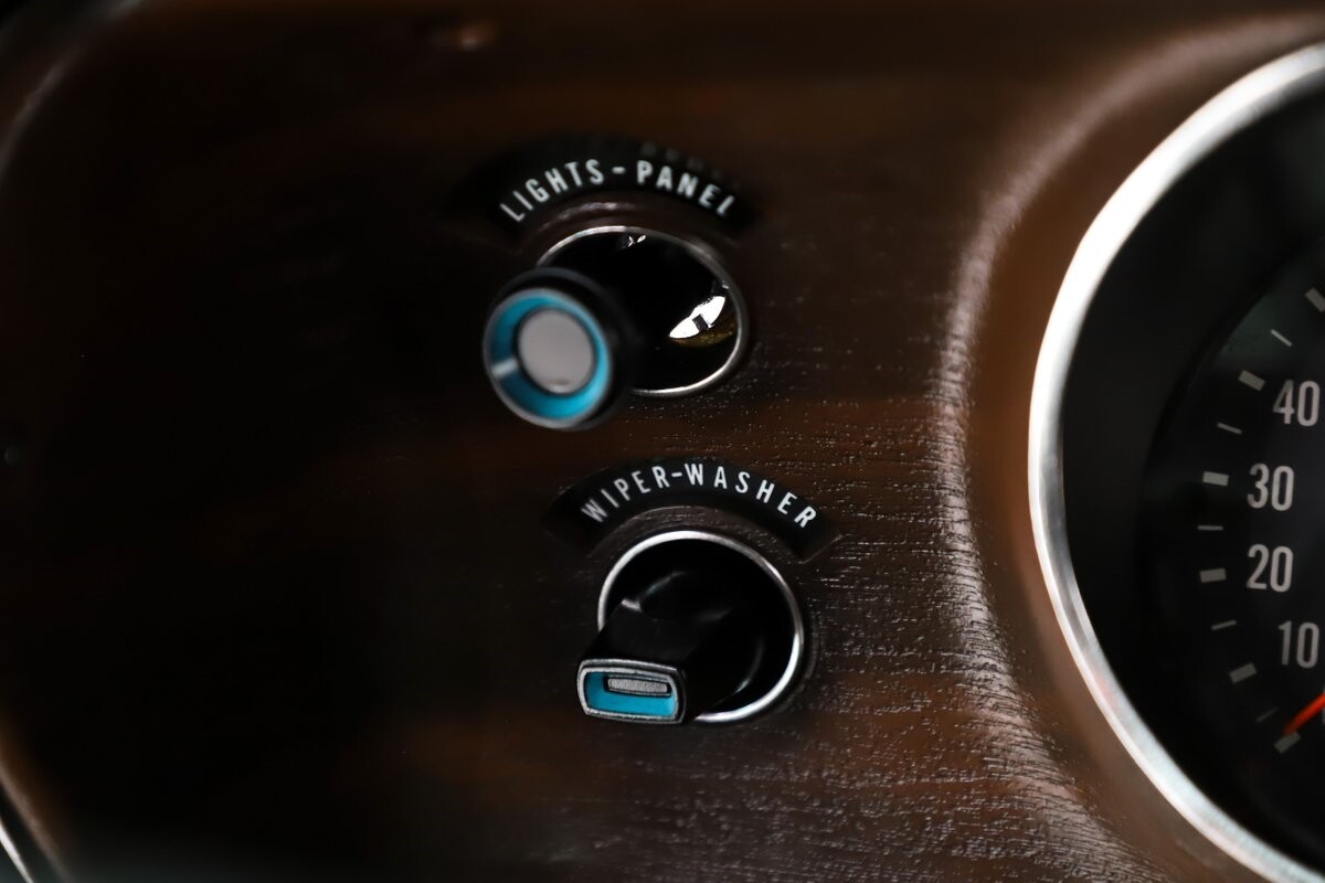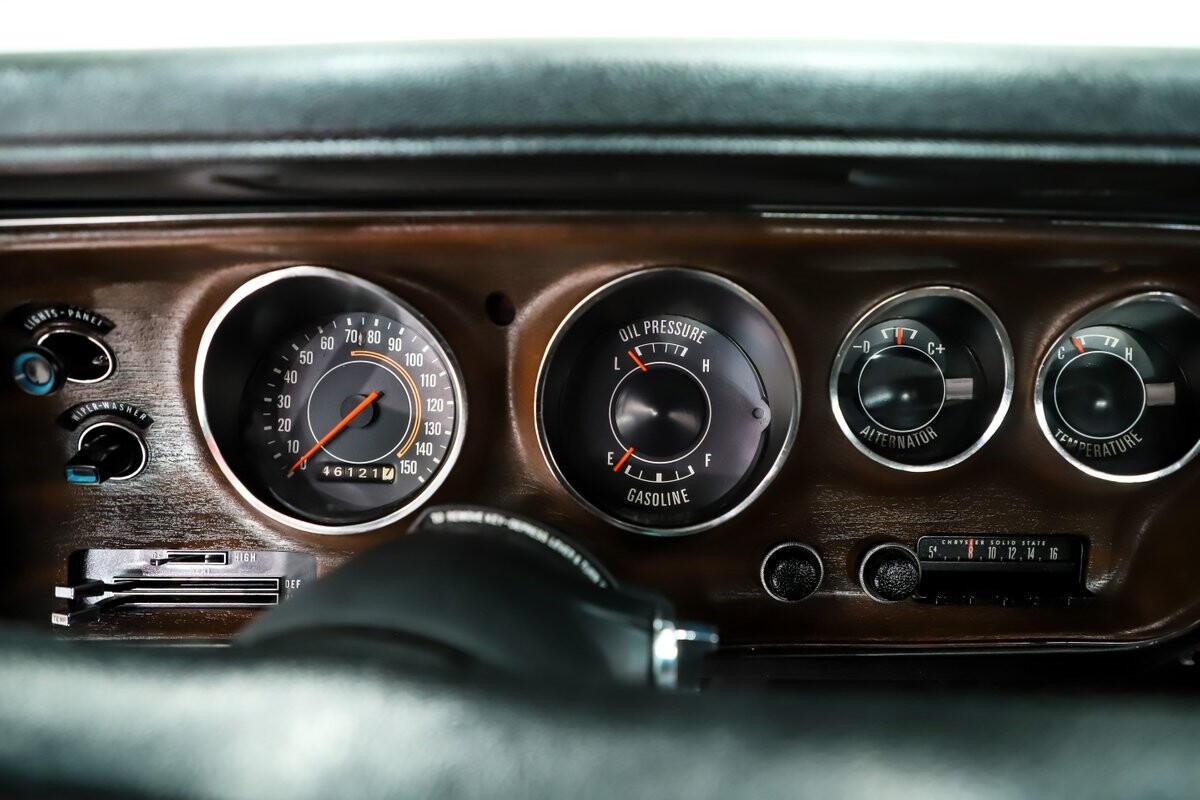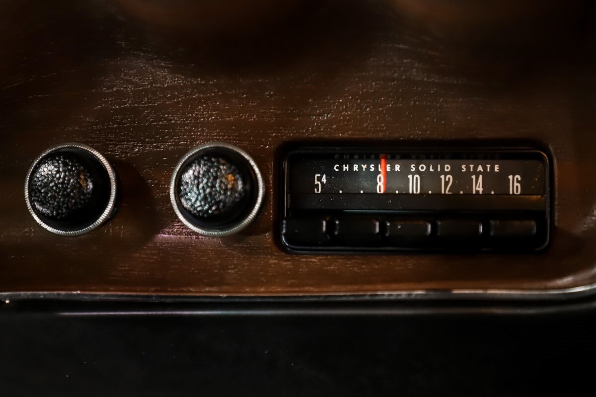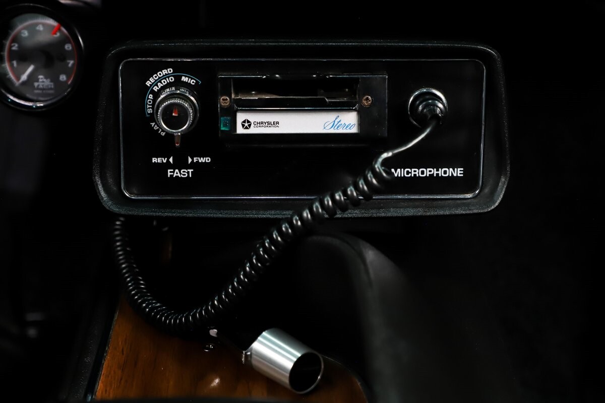 INTERIOR: Pristine from carpet to headliner. All the finishes are like new, and the fit is excellent. No wrinkles, the dash area is mint from the knobs to the dash pad. Steering wheel, seatbelts, console are all mint. Original radio is in the dash, and it has an original Dictaphone cassette player/recorder below the dash. It even includes a microphone for recording notes. This is a factory Chrysler option that is on the fender tag.