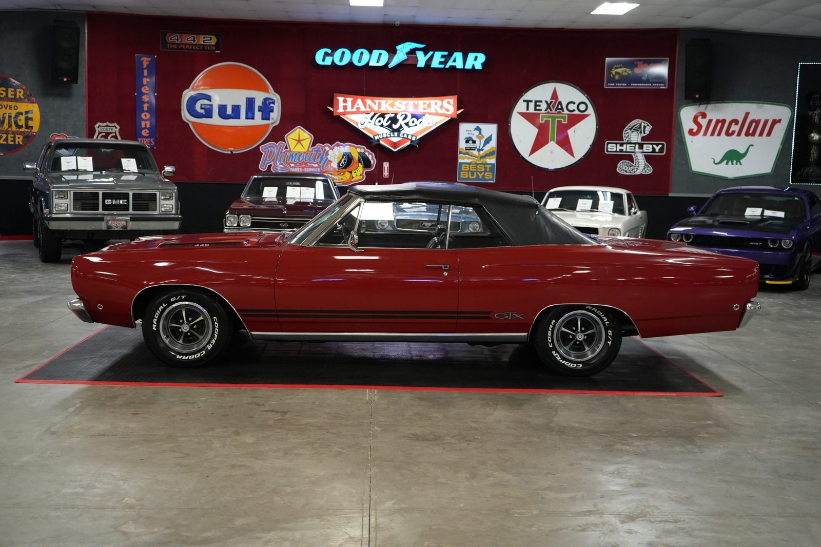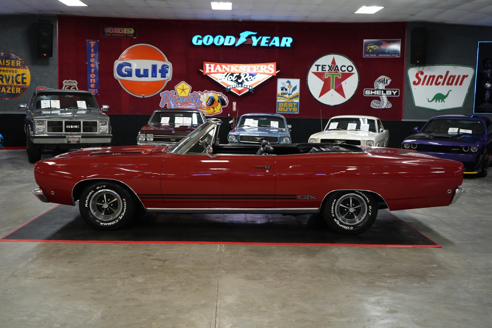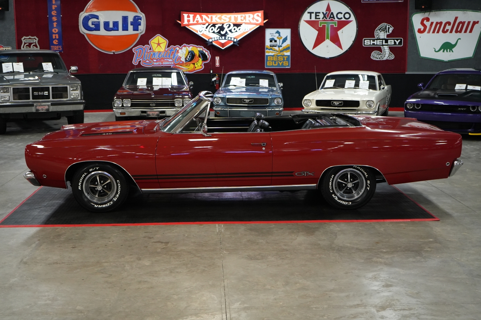 CLICK DIRECTLY ABOVE FOR MORE PHOTOS AND A VIDEO OF THIS VEHICLE !!THIS VEHICLE IS LOCATED IN OUR FLORIDA SHOWROOM, FREE SHIPPING AND WARRANTY !!!!!Chrysler 440 v8, 727 torqueflite automatic transmission, 3.55 rear gear ratio, Posi rear end, 4 wheel drum brakes, Power steering, Brawler 650 cfm carburetor, Oem intake, 14x7 chrysler magnum 500 wheels, 225-70-14 cooper cobra radial g/t tires, Oem radiator, Points ignition, Mechanical fuel pump, Oem coil, Oem distributor, black convertible top, Clutch cooling fan, Black vinyl interior, Red exterior color. Visit Hanksters online at to see more pictures of this vehicle or call us at 1724-800-0326 to schedule your visit today. Note: WE'RE THE ONLY CLASSIC CAR DEALER IN THE COUNTRY THAT OFFERS A SATISFACTION GUARANTEE CLASSIC CAR WARRANTY AND FREE SHIPPING. FREE SHIPPING AND WARRANTY IS ONLY AVAILABLE ON SELECT VEHICLES AT THE FULL RETAIL PRICE FREE SHIPPING IS ONLY IN THE CONTIGUOUS US ..