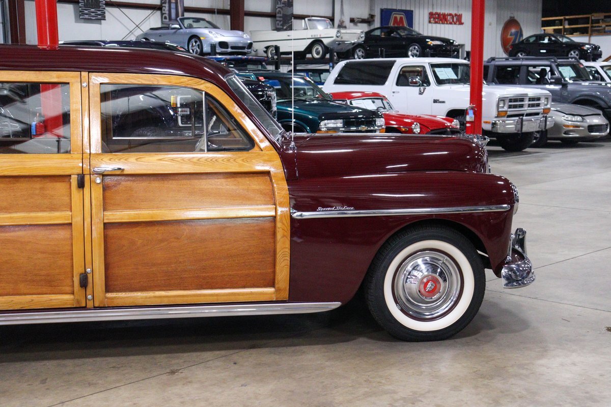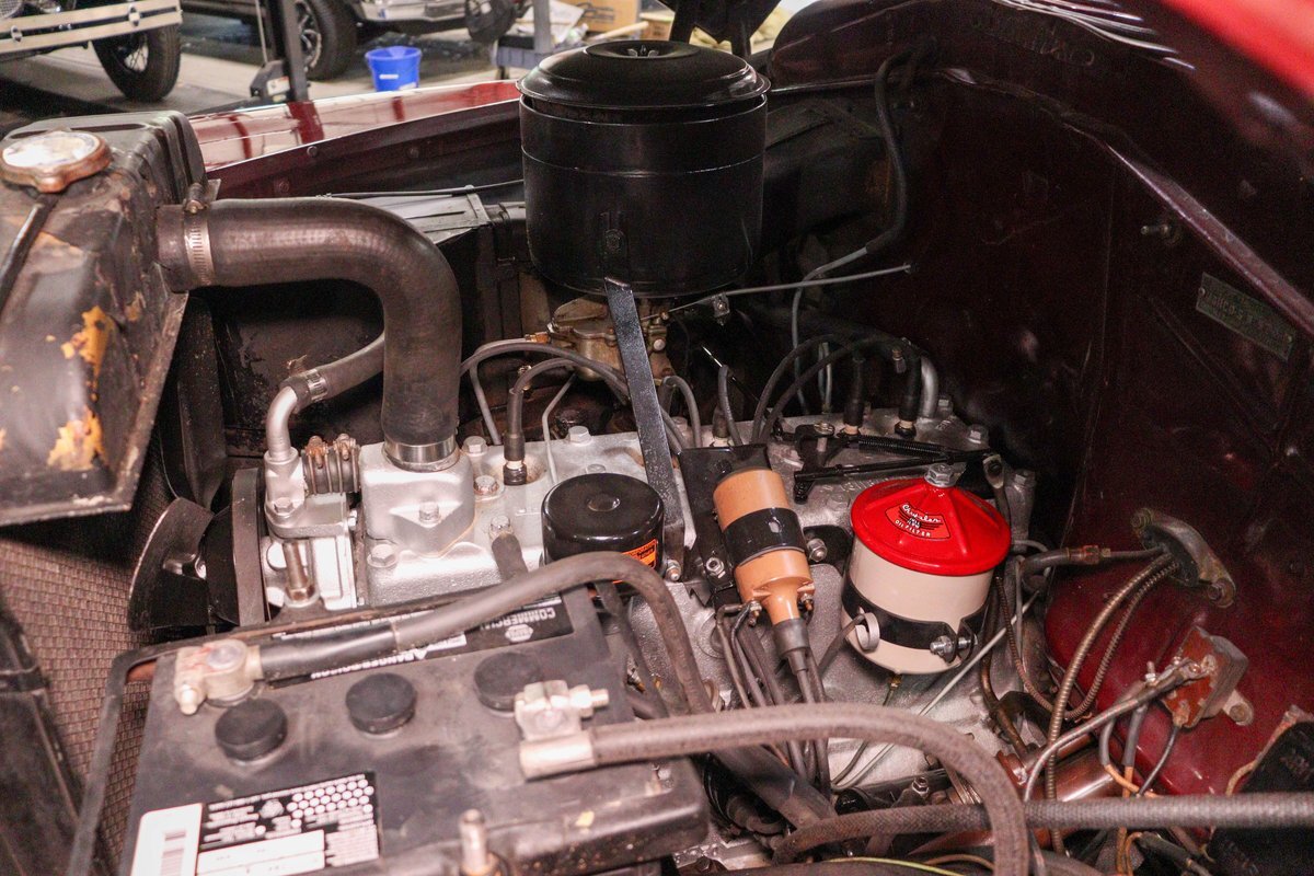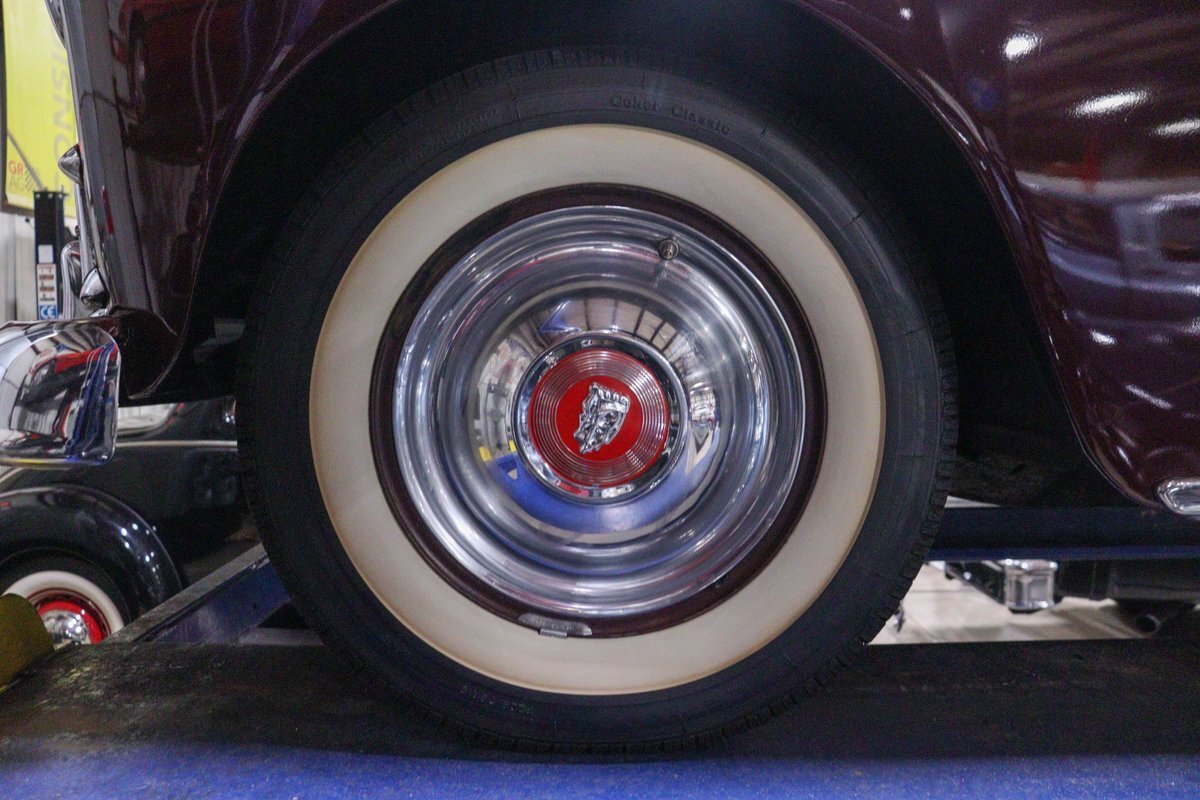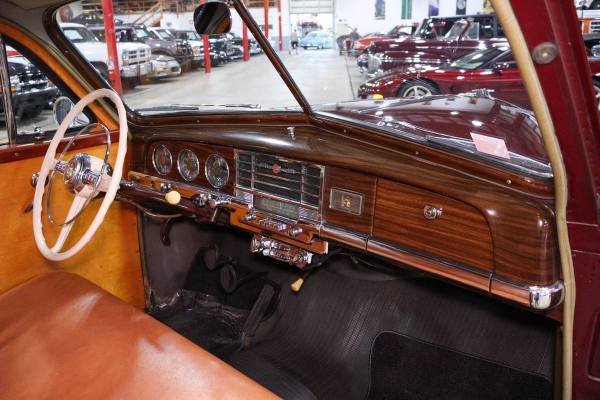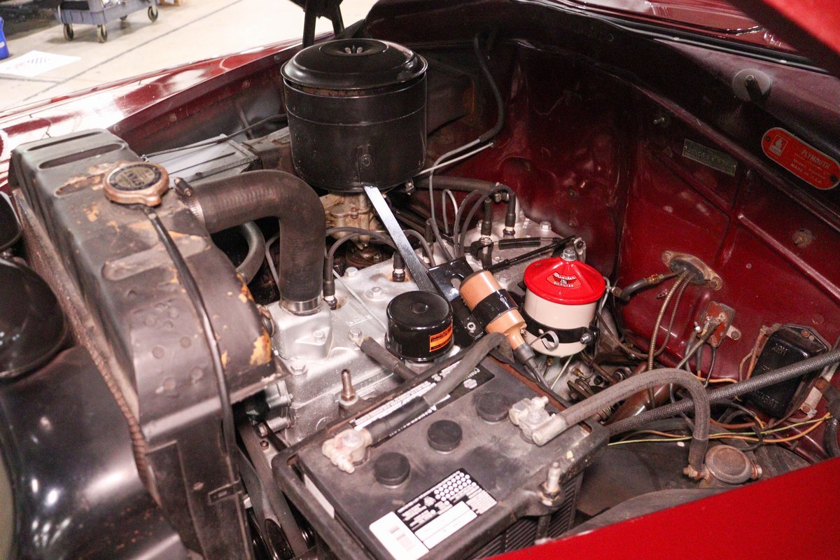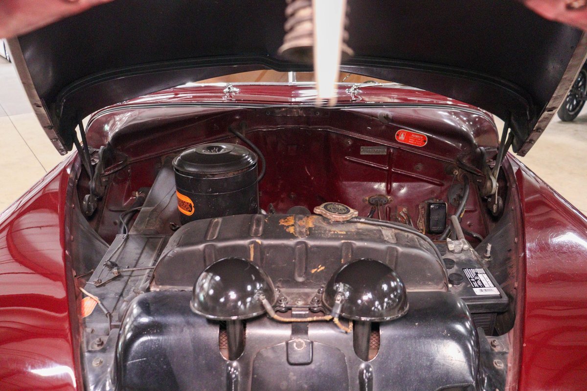 Few vehicles on the road today can capture attention like this Rio Maroon Woody Station Wagon. The deep, lustrous Rio Maroon paint is complemented by exceptional brightwork that gleams from the front bumper and grille to the rear of the vehicle. The wood paneling, a hallmark of the Woody Wagon, remains in excellent condition, with doors that open and close effortlessly without rubbing. The well-preserved wood accents, along with newer Coker white wall tires, contribute to the vehicle's striking and authentic exterior presentation.