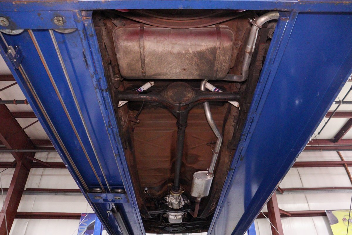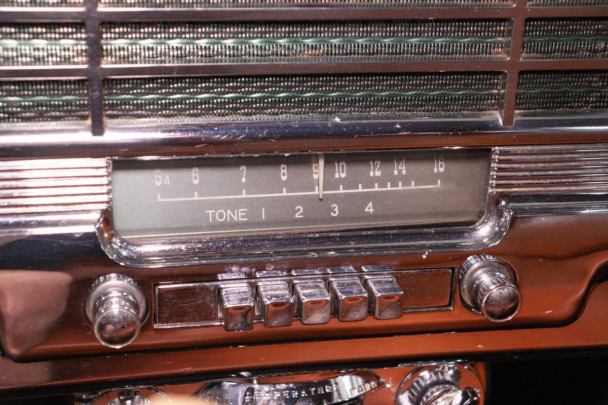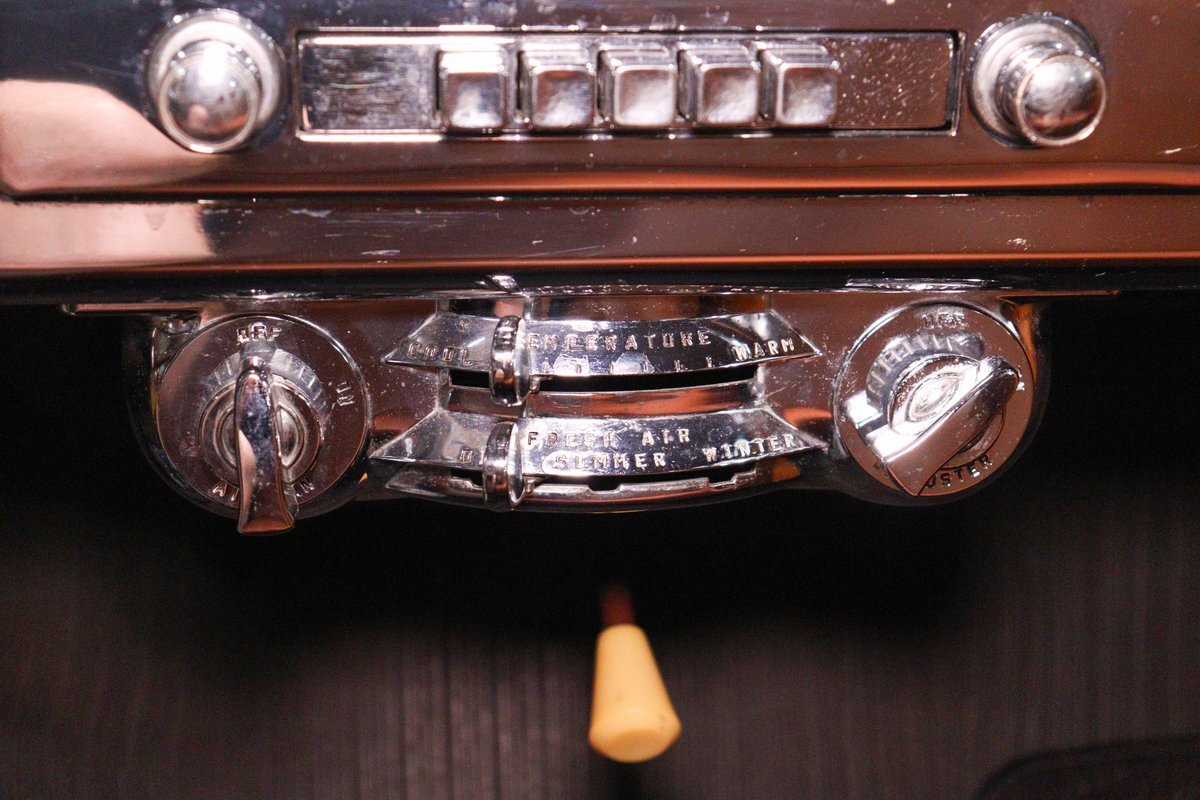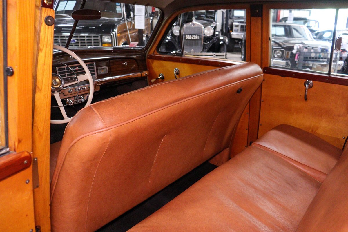 Inside, this Woody Wagon offers a spacious three-row seating arrangement, perfect for family outings or cruising with friends. Unique period-correct features are present, including a functional original AM radio, factory heater, and a heavy-duty air cleaner, enhancing the vehicle's nostalgic charm. The interior layout provides ample space and comfort, ensuring a pleasurable ride for all occupants.