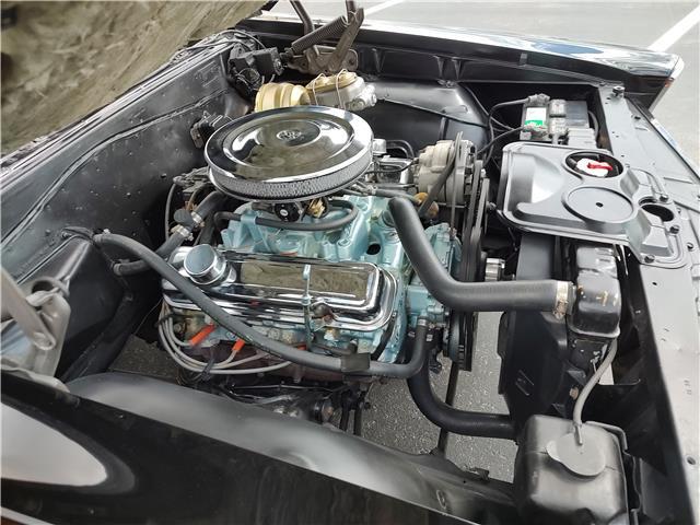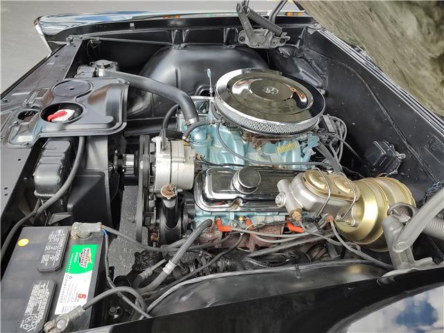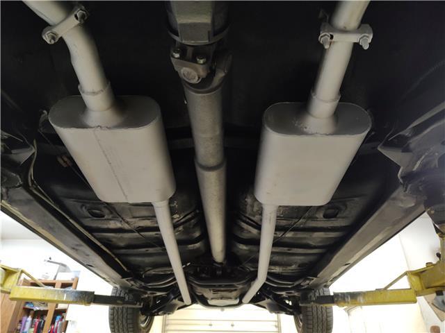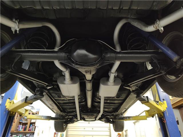Under the hood the original 326 has been replaced with a 1965 389 4 barrel, updated cylinder heads, Edelbrock aluminum intake, factory quadrajet 4 barrel with electric choke, chrome valve covers and breather, heavy duty radiator with correct shroud and 6 blade clutch fan, power steering, nicely updated with power front disc brakes, factory exhaust manifolds into 2 1/4 dual exhaust, Flowmaster mufflers out the back in stock location, this strong running 389 is backed up with a Saginaw 4 speed trans, Hurst Competition Plus shifter, 10 bolt limited slit rear with 331 gear.