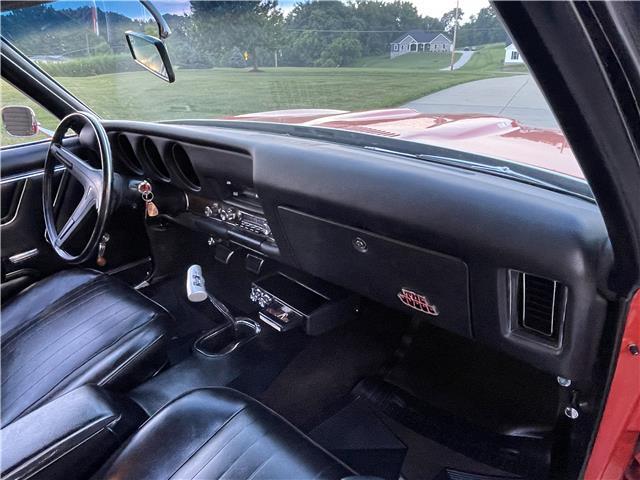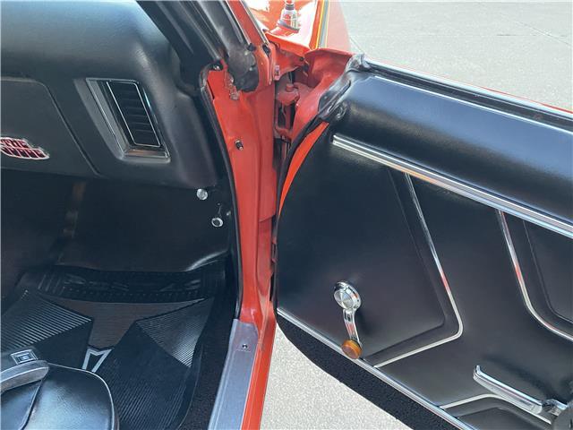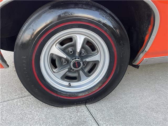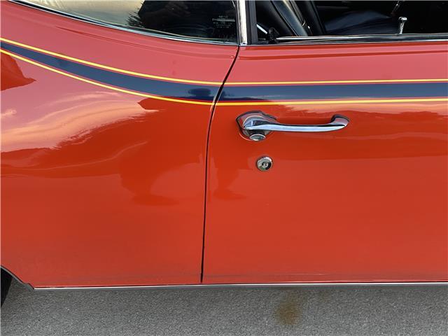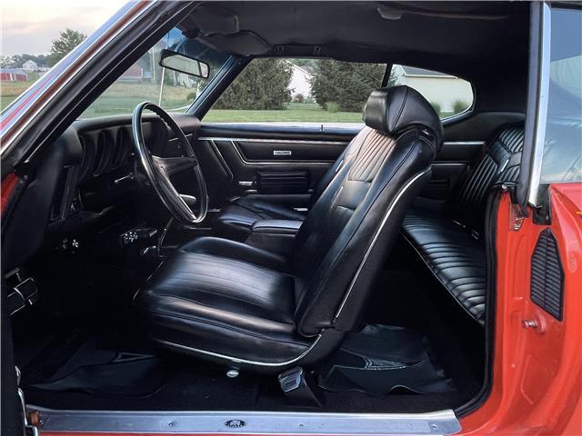 The interior is in good shape. The door panels, seat upholstery and cushions, and carpet have been replaced. The instrument panel is not cut or broken. It has a factory AM radio and an 8-track player that works! It has factory Rally gauges and tach in the dash, original steering wheel, front and rear seat belts.