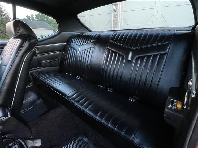 The engine compartment is detailed with its correct WS code 400 ci motor. It has its factory Ram Air air cleaner, chrome valve covers, factory Ram Air manifolds, new cadmium plated power brake booster and dual master cylinder, 4-core radiator with correct fan shroud and fan and spring type battery cables, GM hoses and correct tower clamps finished in a black satin finish.