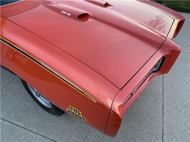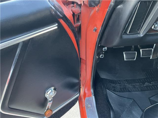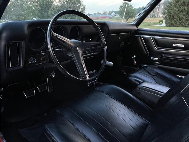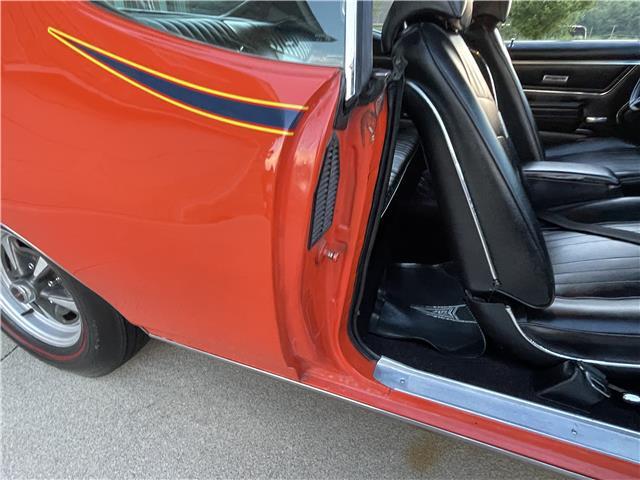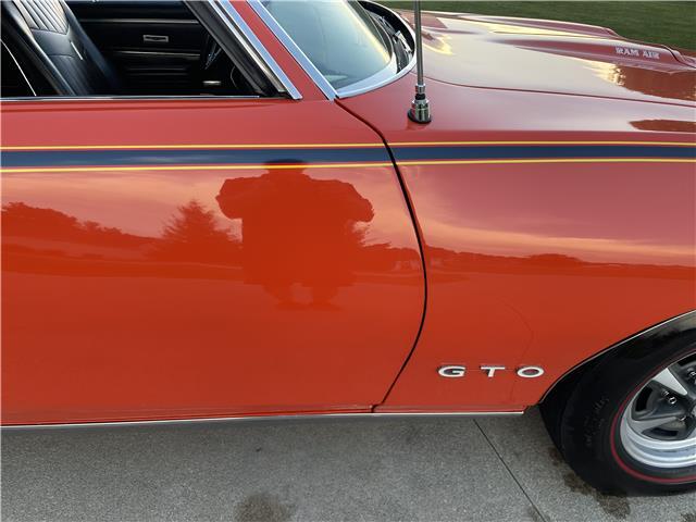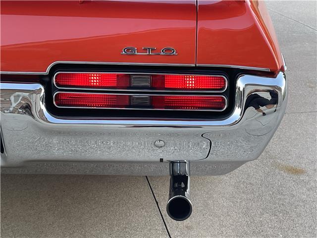 This 1969 GTO is sharp in its original factory color code 72, Carousel Red. The paint is polished smooth and glossy. Appears to have all original sheet metal! The front Endura bumper is in great shape. The optional hideaway headlights work as they should. The door handles, rocker moldings, window moldings and all trim has been polished or replaced with new. The back bumper has been rechromed and is in excellent condition. The taillight bezels look new as well. The weather stripping around the doors and the window seals have been replaced. The front windshield has been replaced. All the glass is in good shape. It sports its original functional Ram Air hood. It sits on a set of original 14x6 JA Pontiac Rally II wheels with PMD center caps and correct style lug nuts wrapped with a new set of Firestone Wide Oval redline tires for that original look.