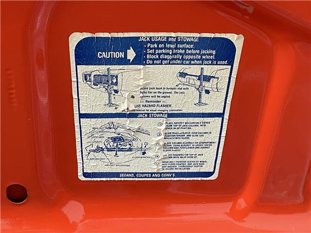 The trunk is rock solid and detailed with splatter paint. It comes with a trunk mat, spare tire and jack assembly including lug wrench. It also has new weather stripping.