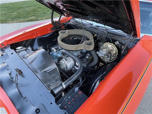 The undercarriage is all clean original metal. The front end has been gone through. The bottom of the motor is spotless. The Muncie 4-speed transmission is clean as well. There are disc brakes up front. The floors are all clean metal and finished in the correct satin finish. All E-brake cables are complete and working. It has a newer gas tank and straps. There is a dual exhaust system with correct exhaust tips running out the rear of the car. It also features a Safe-T-Track rear end and power steering.