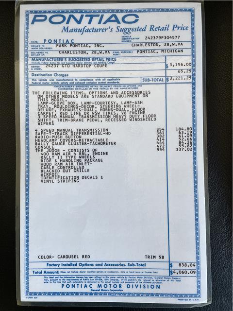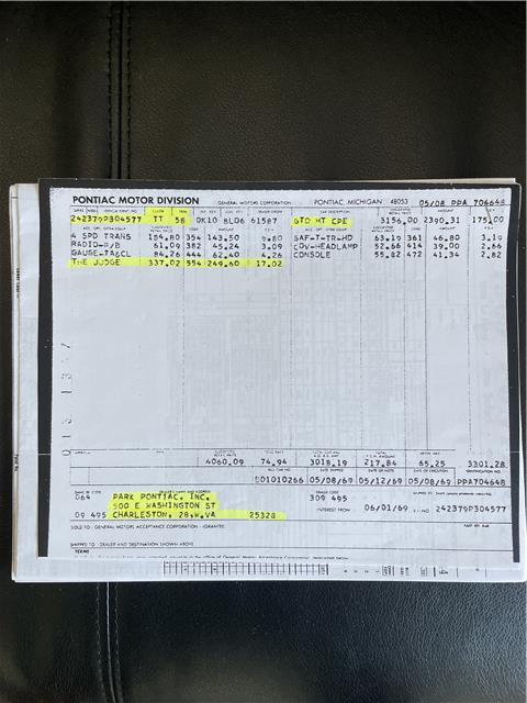 1969 PONTIAC GTO JUDGE- PHS DOCUMENTED!